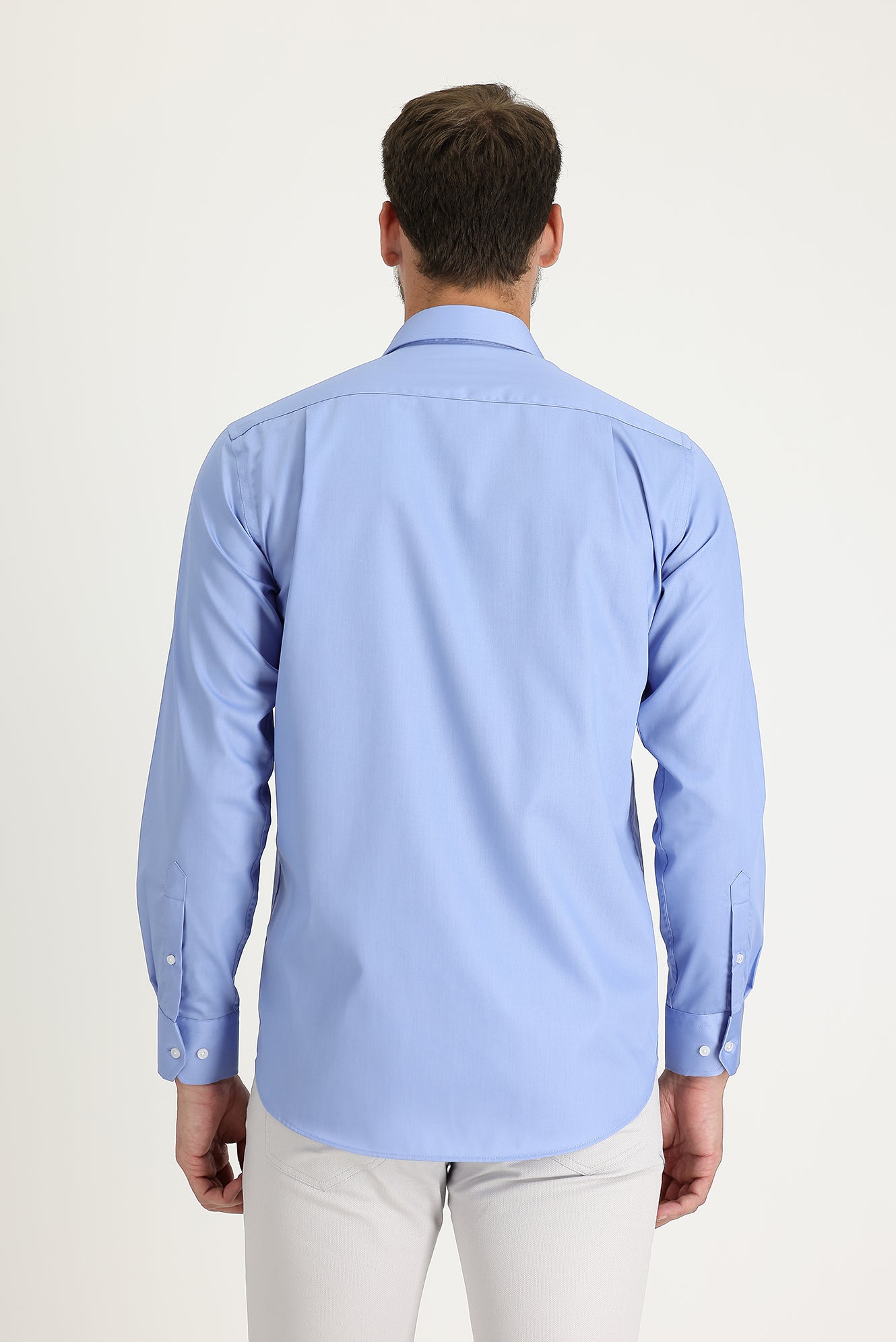 Açık Mavi Uzun Kol Non Iron Saten Klasik Pamuklu Gömlek