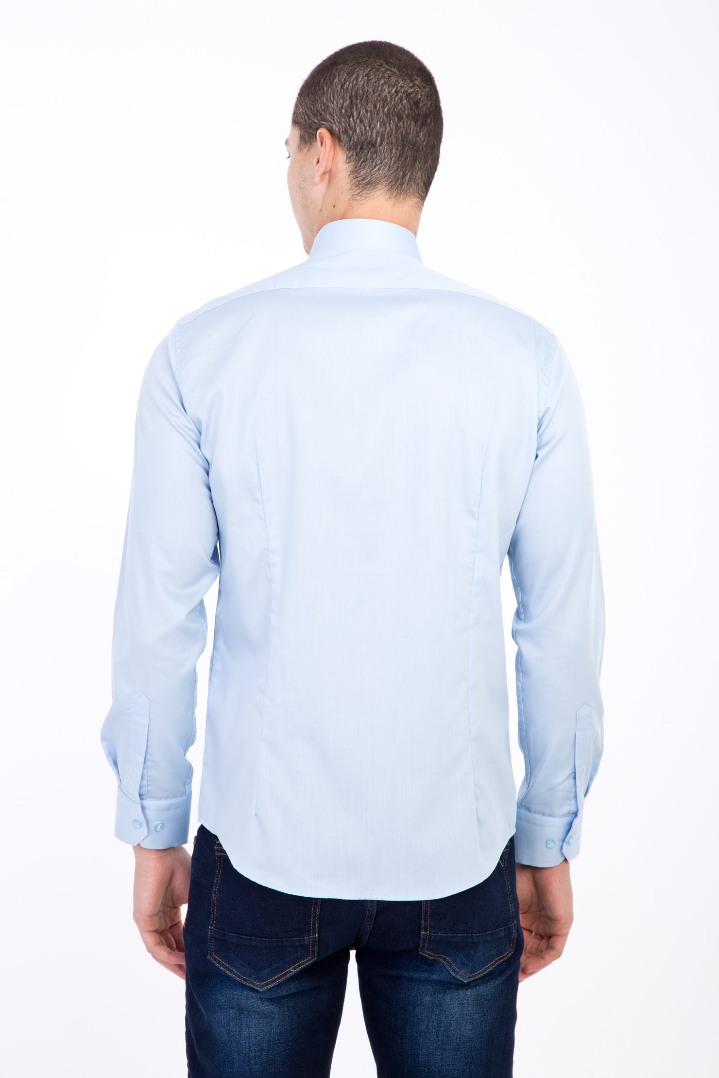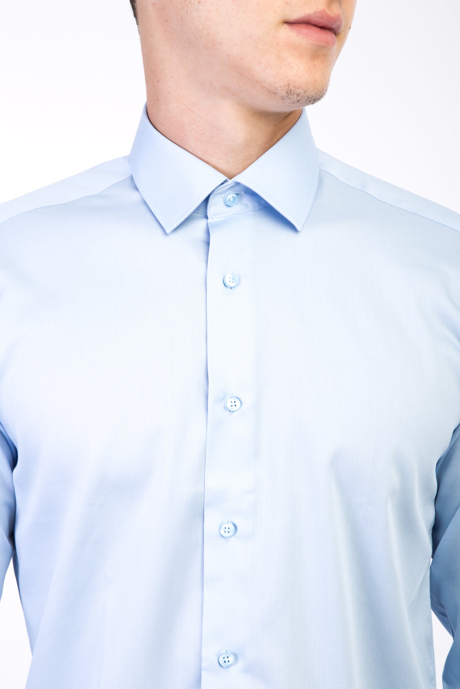 Açık Mavi Uzun Kol Non Iron Saten Slim Fit Dar Kesim Gömlek