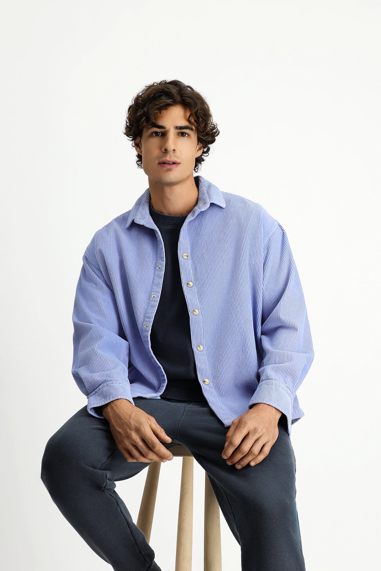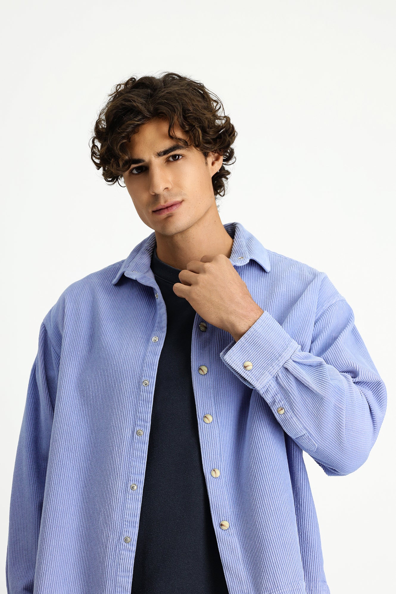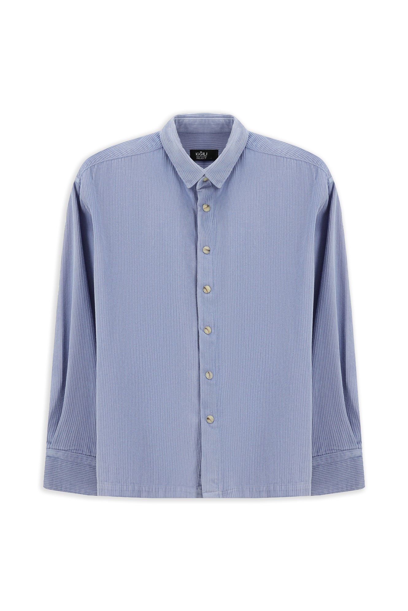 Açık Mavi Uzun Kol Oversize Ekstra Rahat Kesim Pamuk Spor Kadife Gömlek