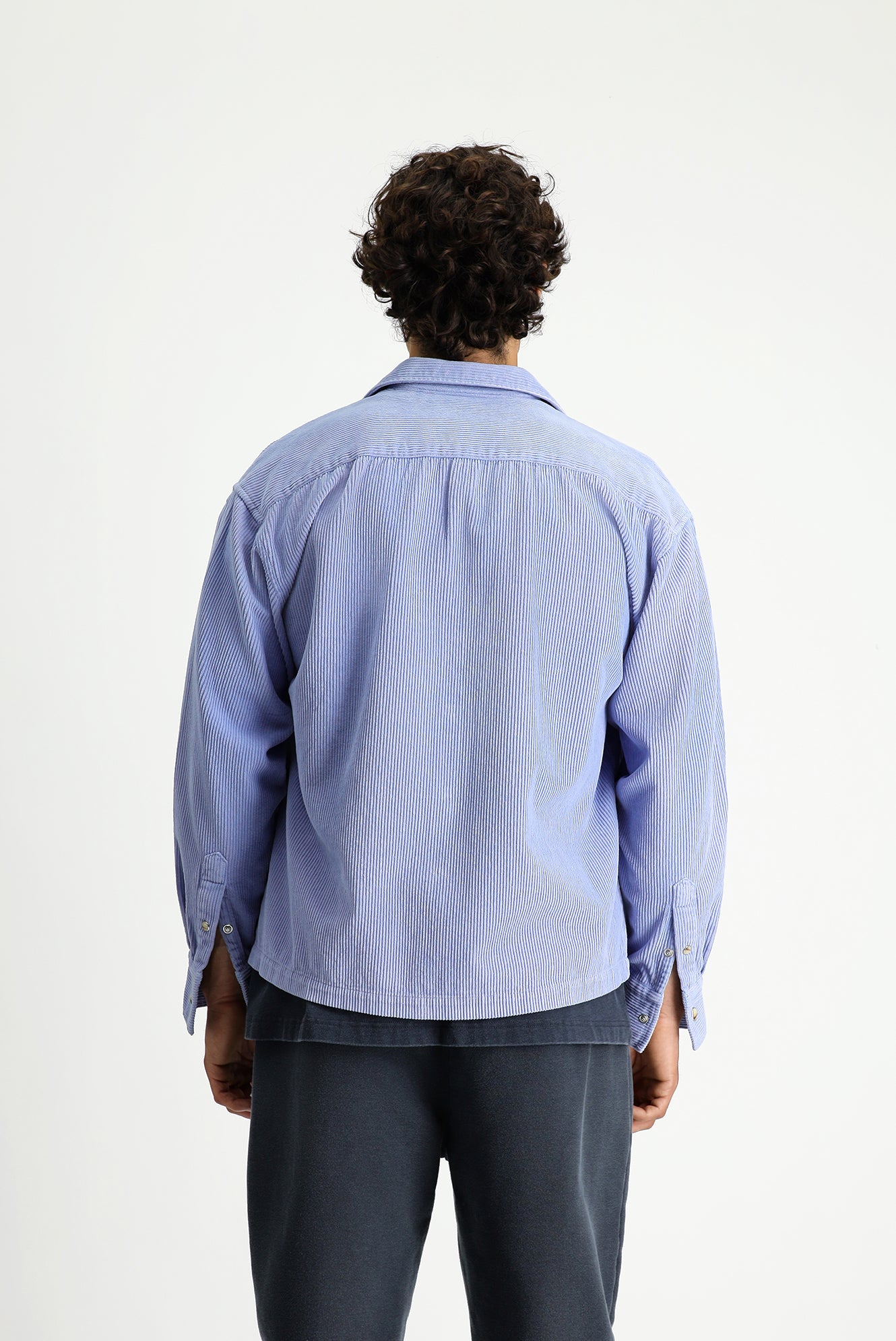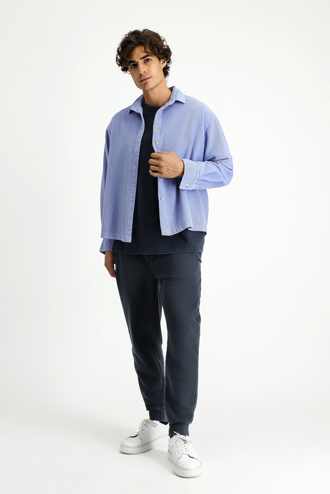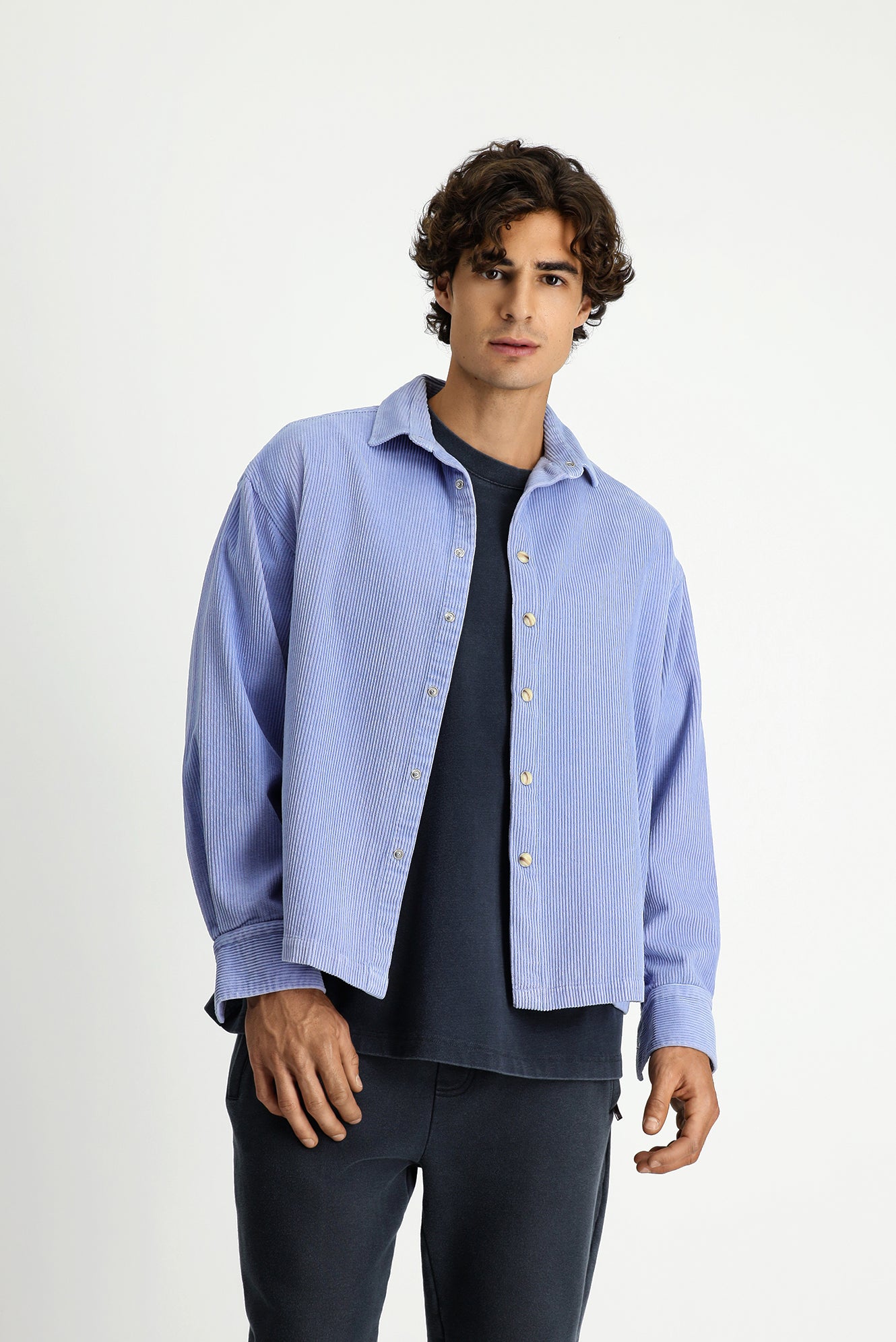 Açık Mavi Uzun Kol Oversize Ekstra Rahat Kesim Pamuk Spor Kadife Gömlek