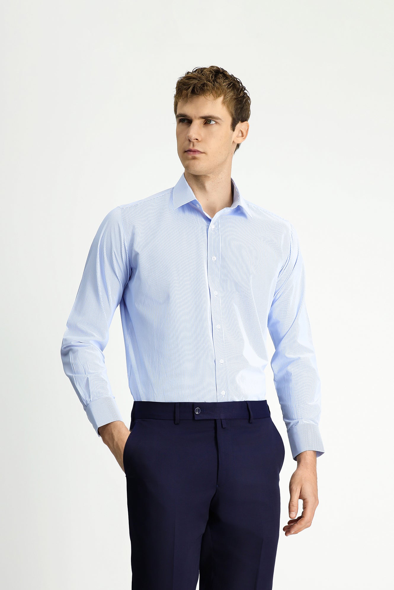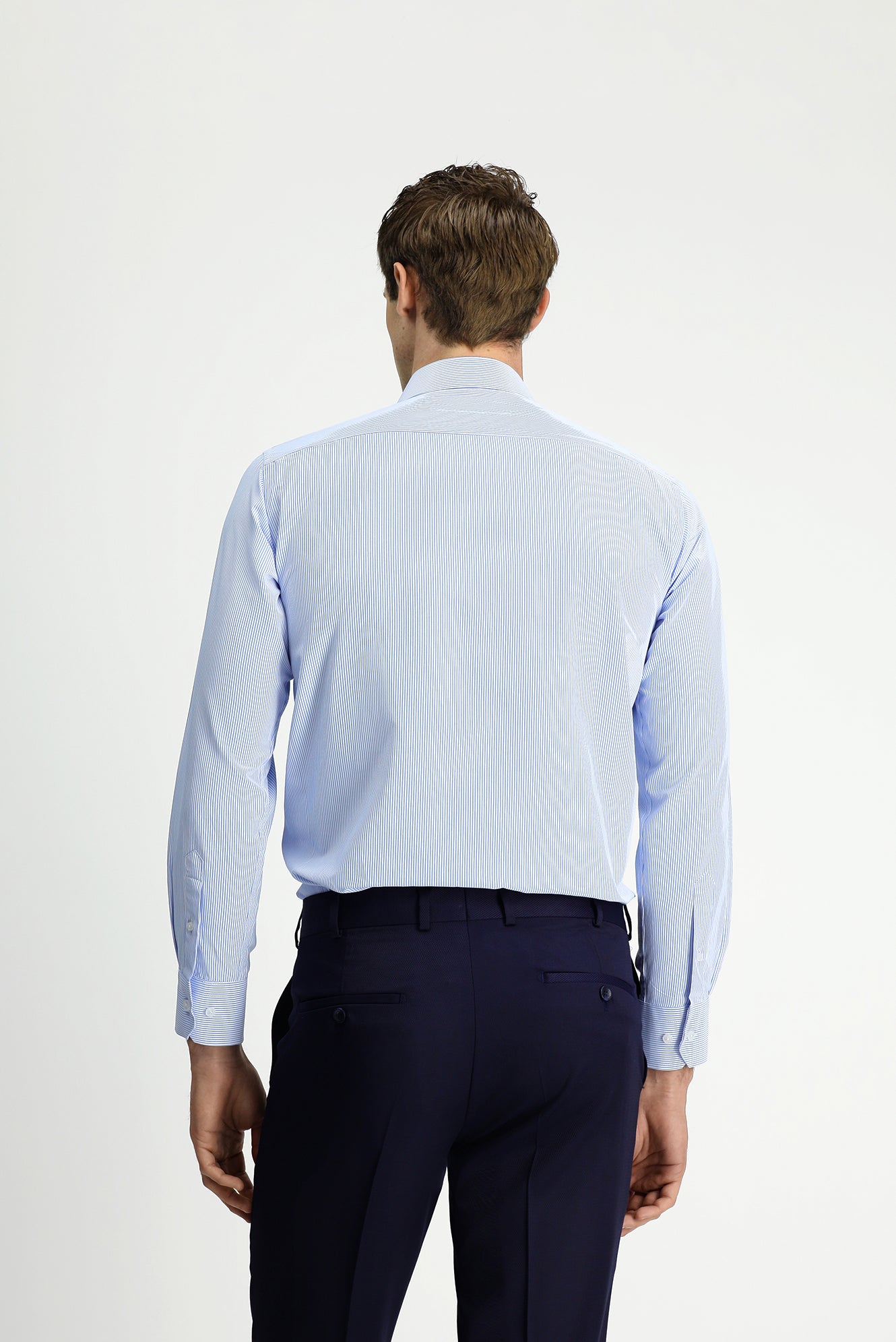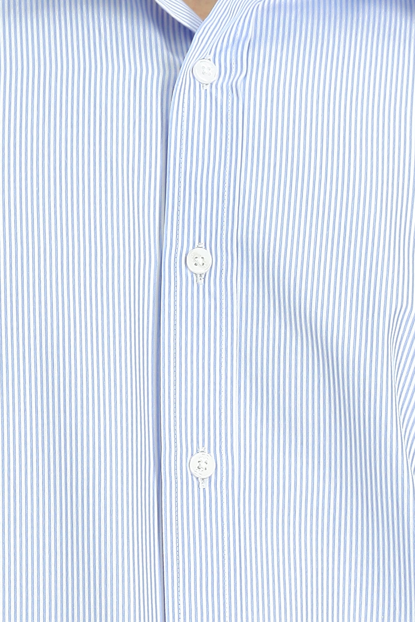 Açık Mavi Uzun Kol Klasik Çizgili Pamuklu Kolay Ütülenebilir Gömlek