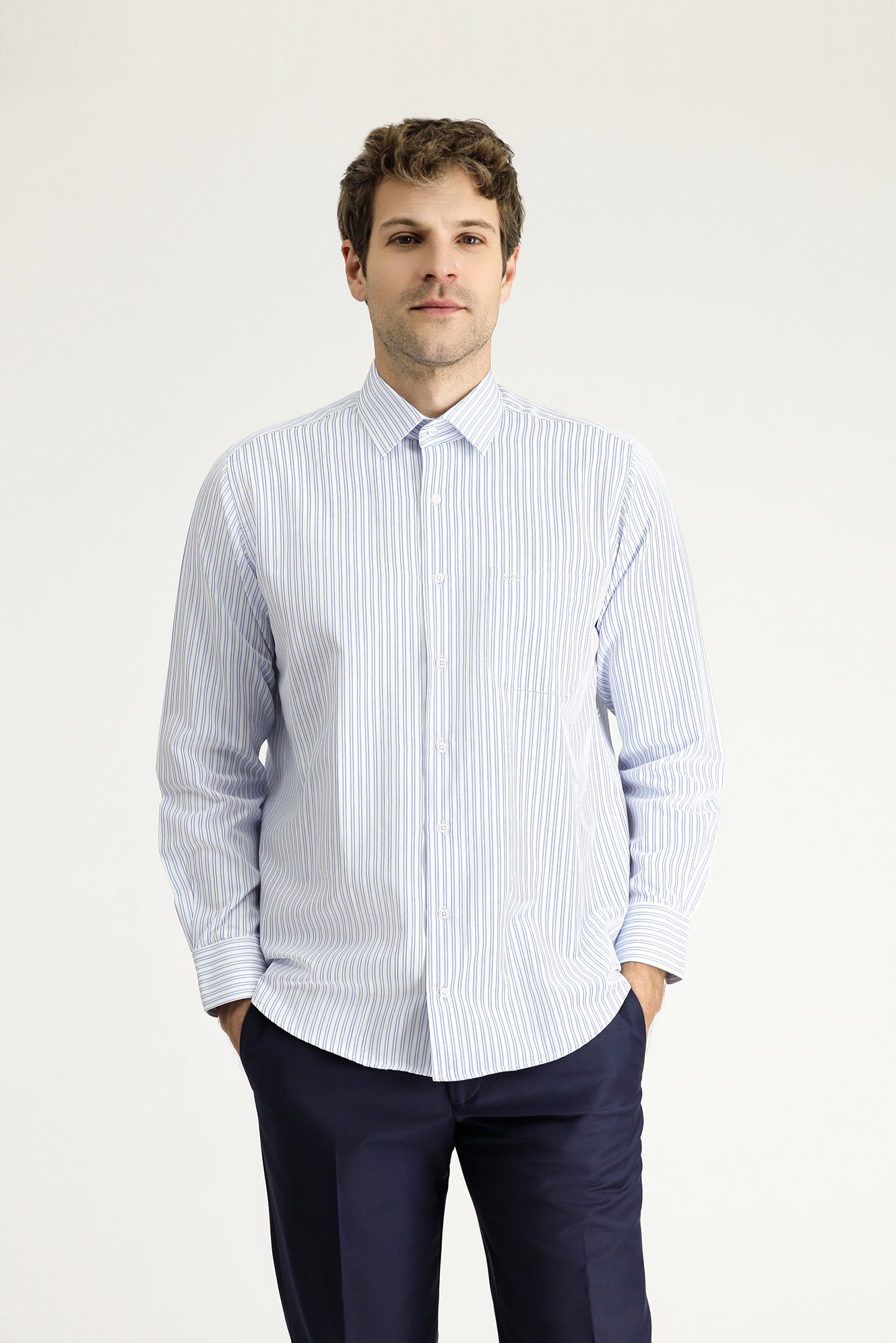 Açık Mavi Uzun Kol Regular Fit Çizgili Pamuklu Gömlek