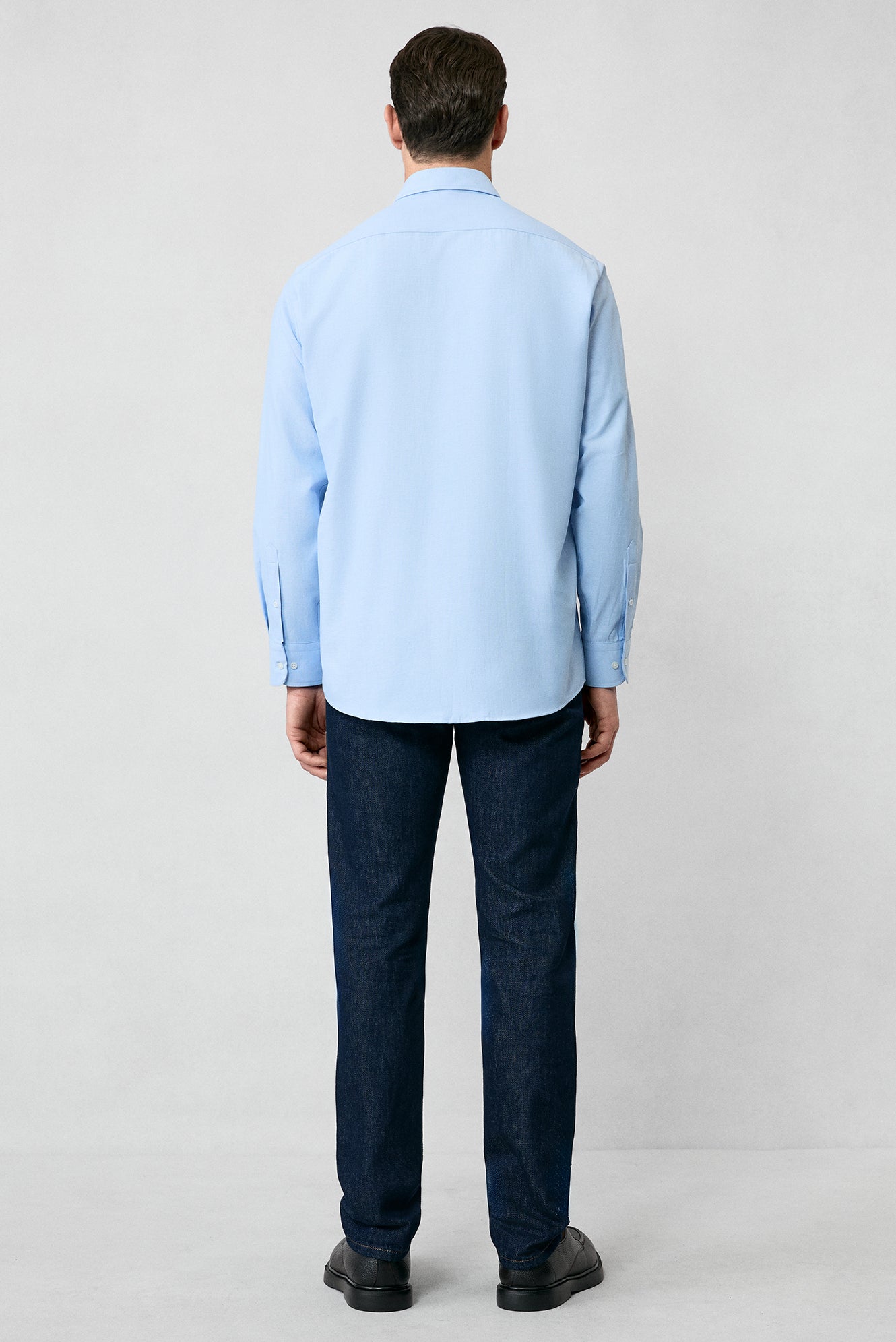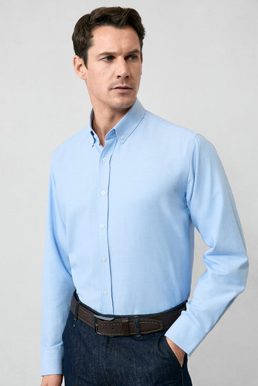 Açık Mavi Uzun Kol Regular Fit Düğmeli Yaka Pamuklu Kolay Ütülenebilir Oxford 4 Mevsim Gömlek
