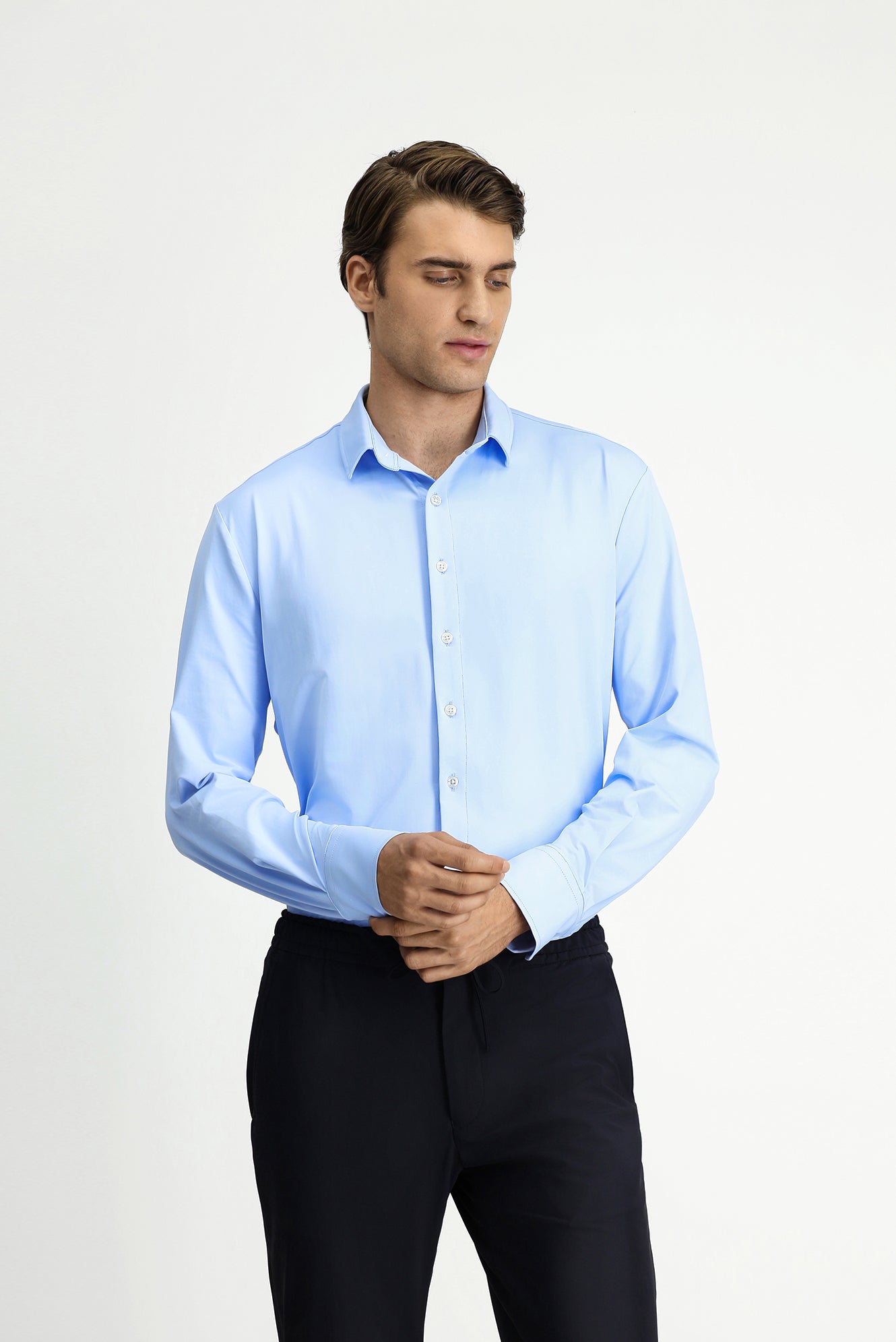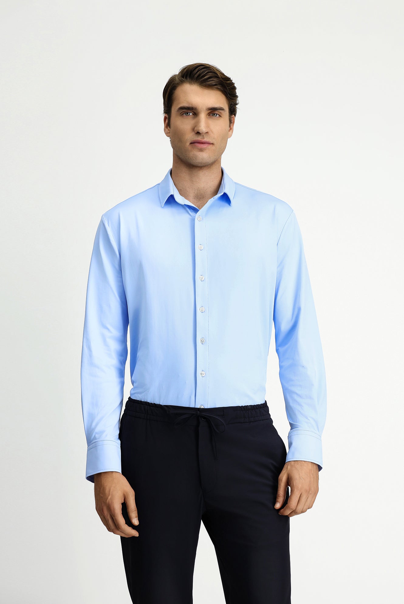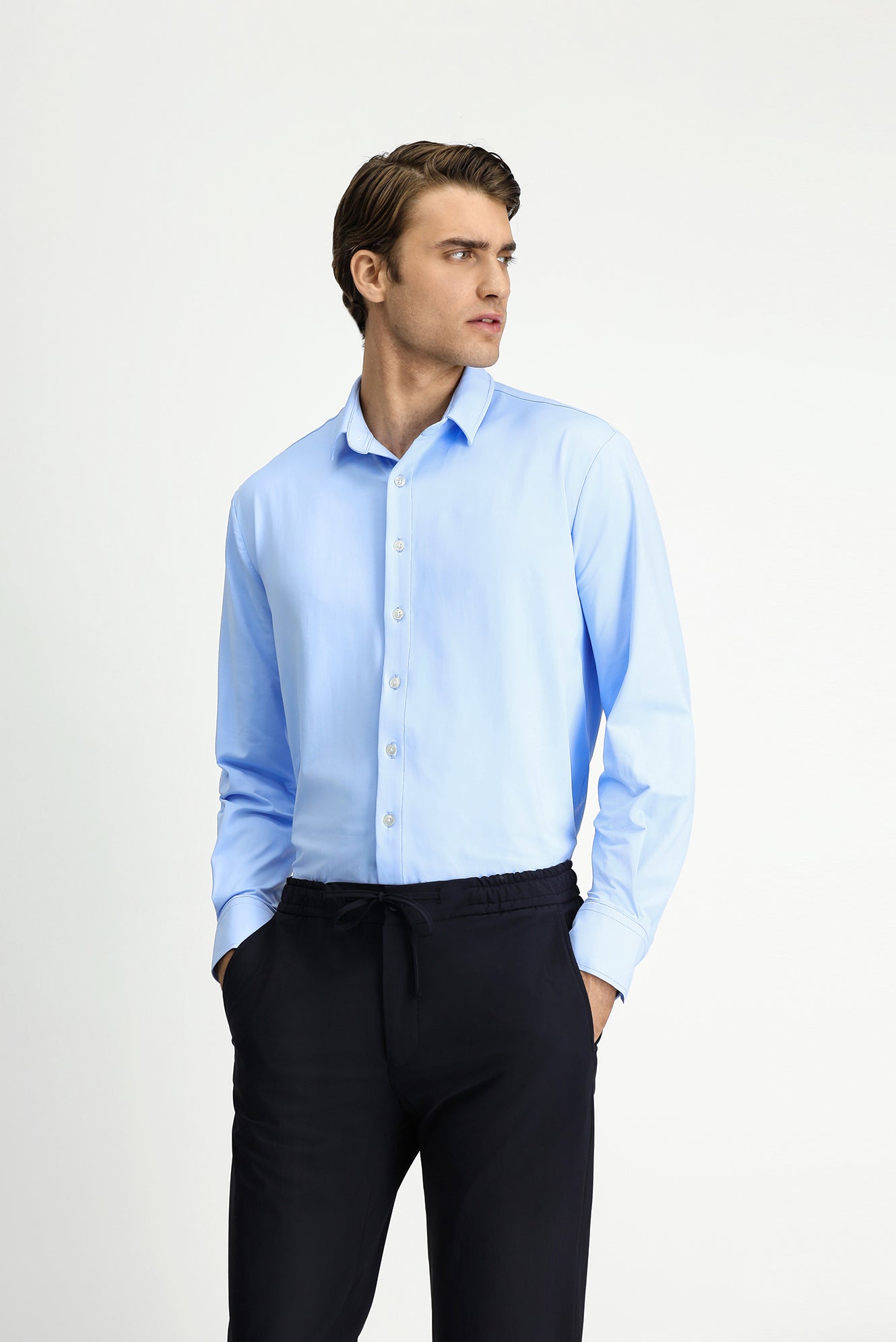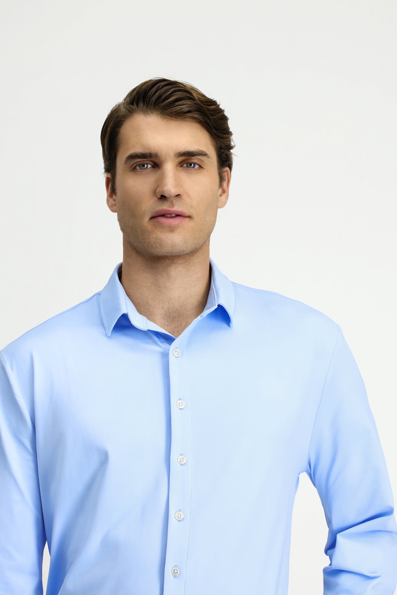 Açık Mavi Techno-Line Uzun Kol Regular Fit Likralı Gömlek
