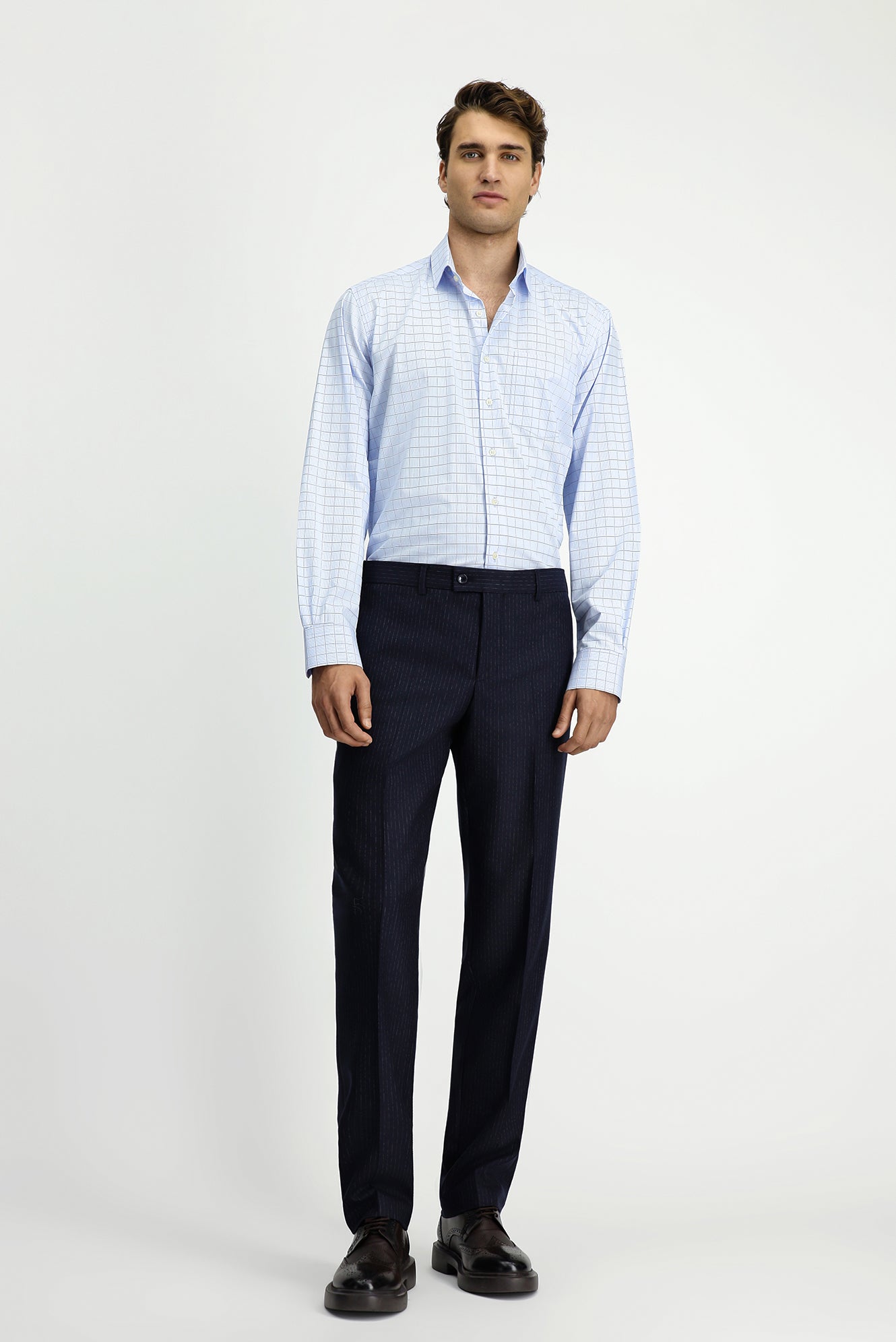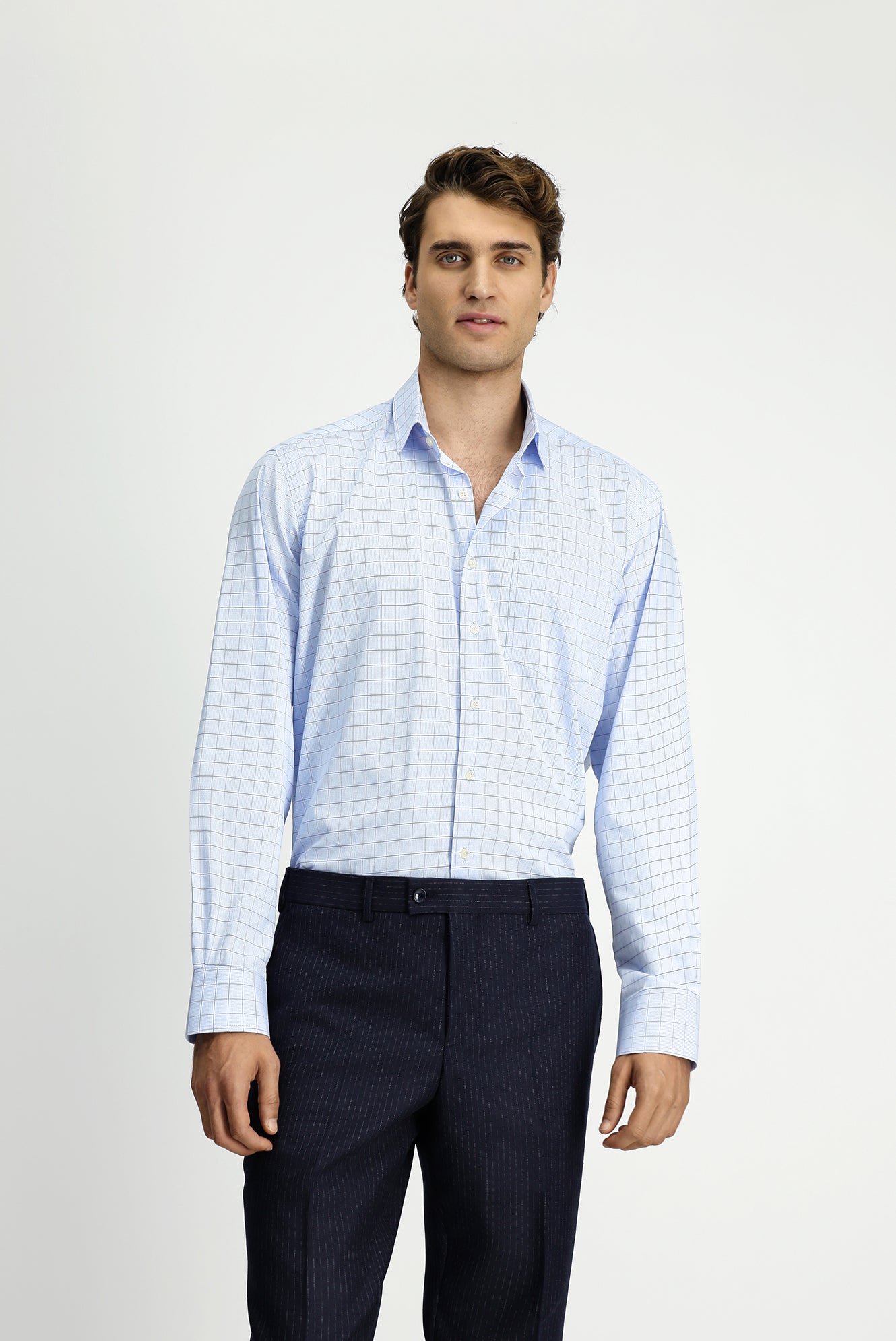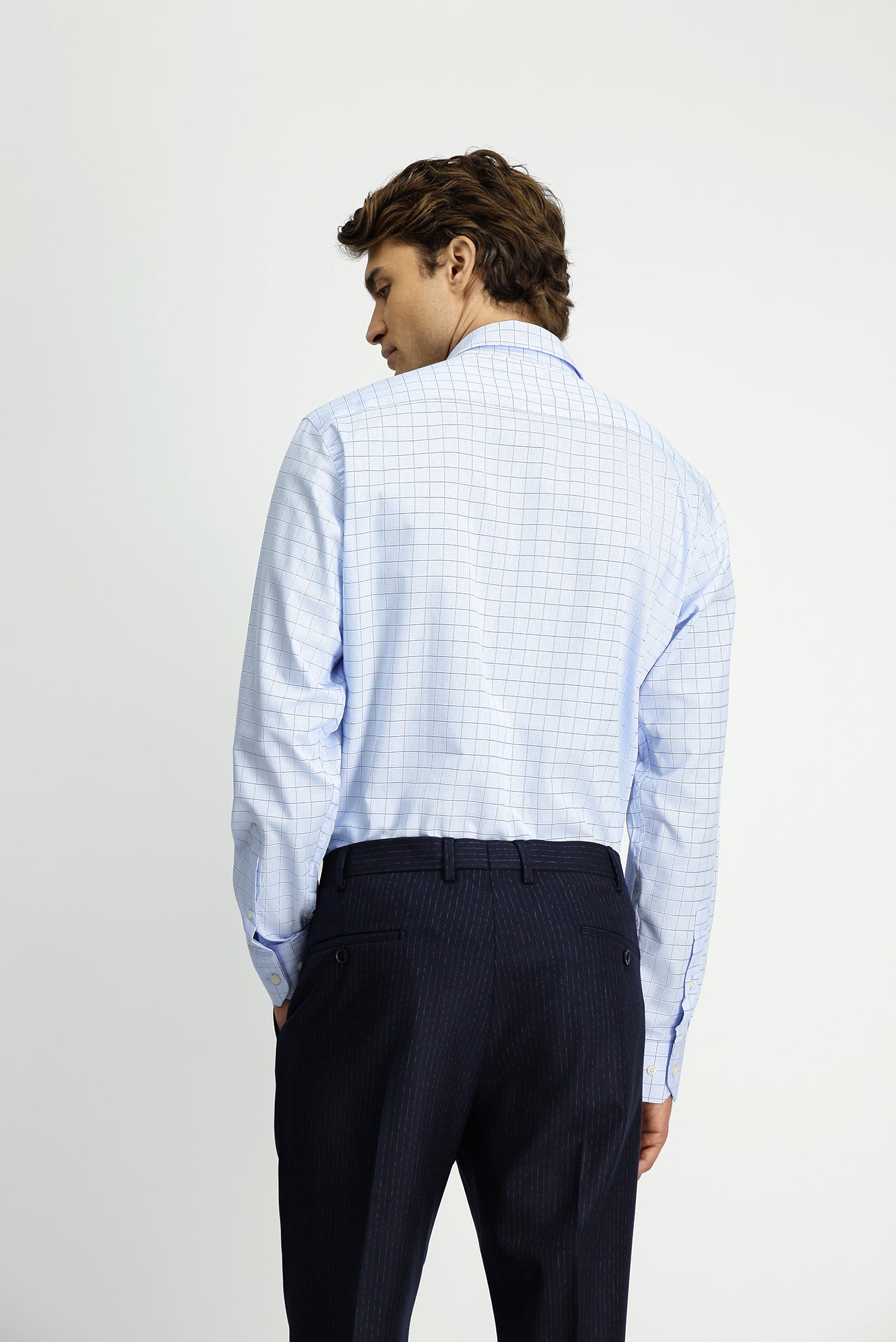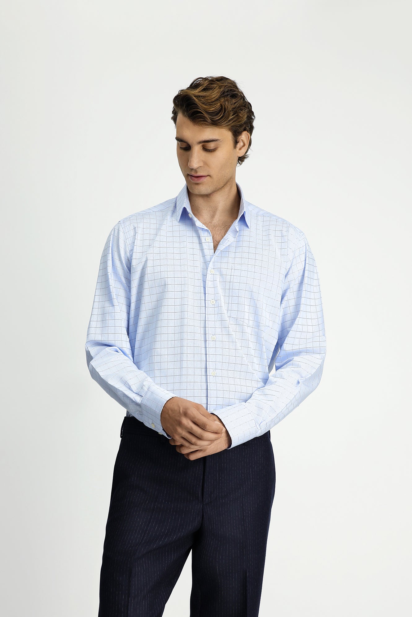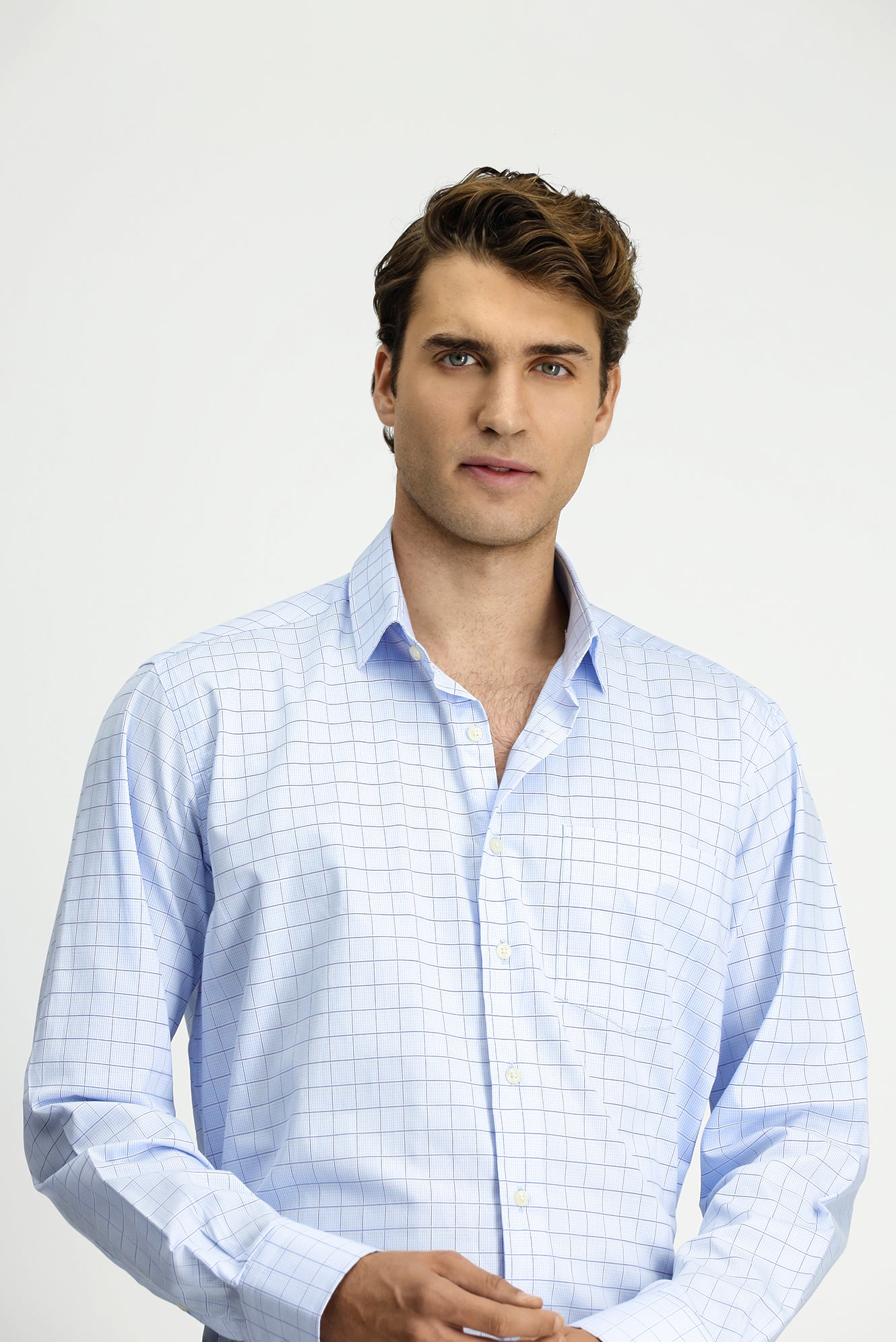 Açık Mavi Uzun Kol Klasik Cepli Ekose Pamuk Gömlek