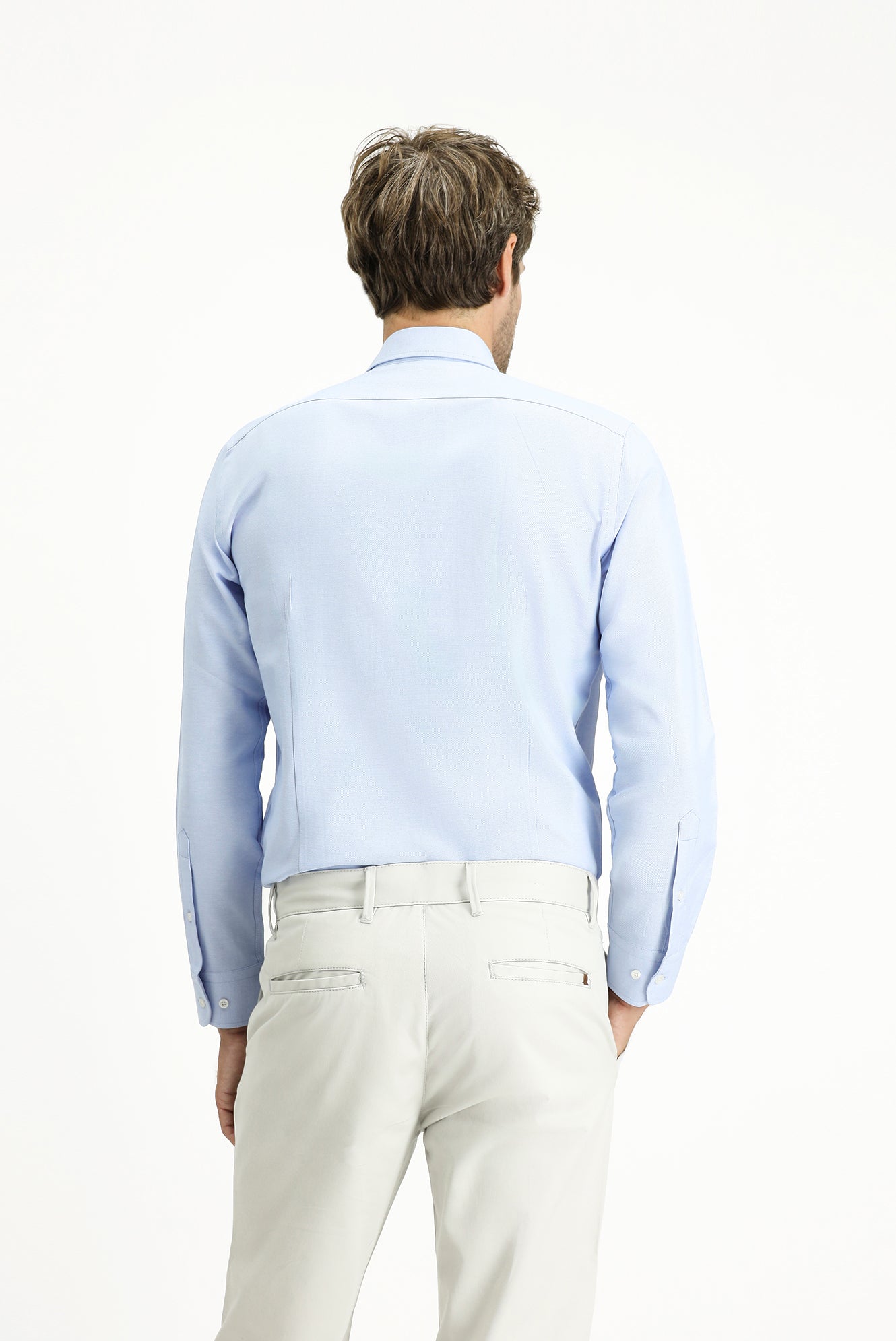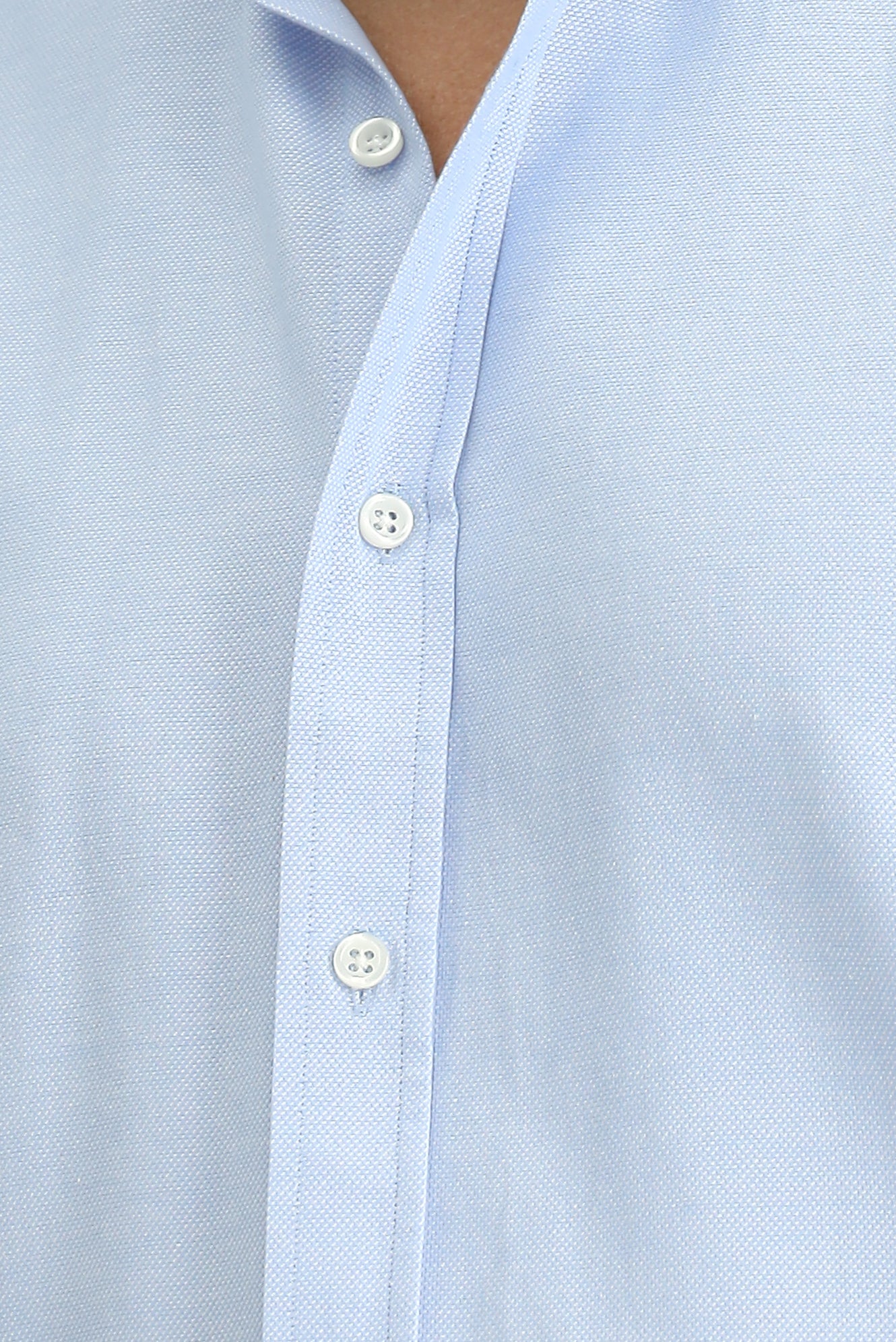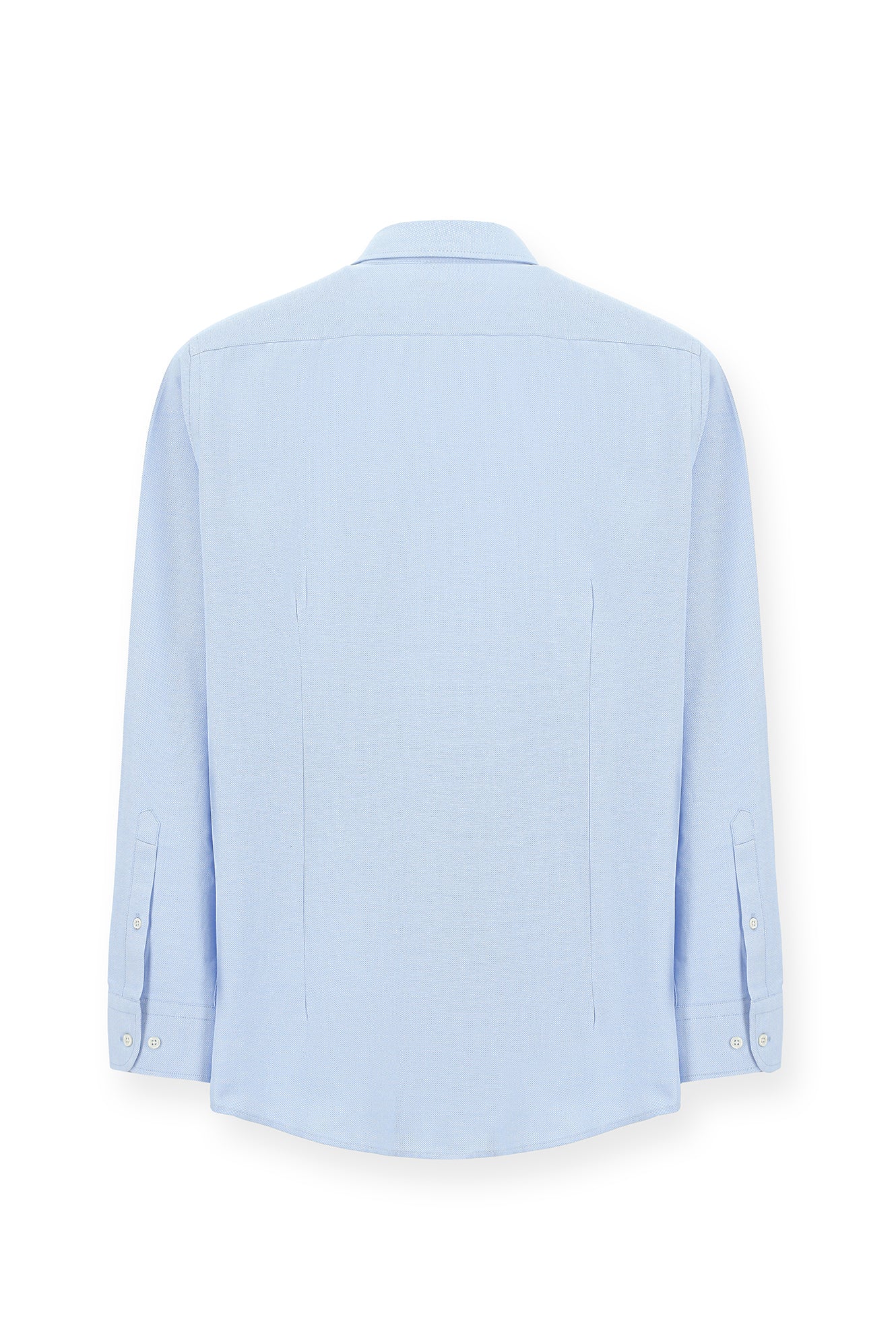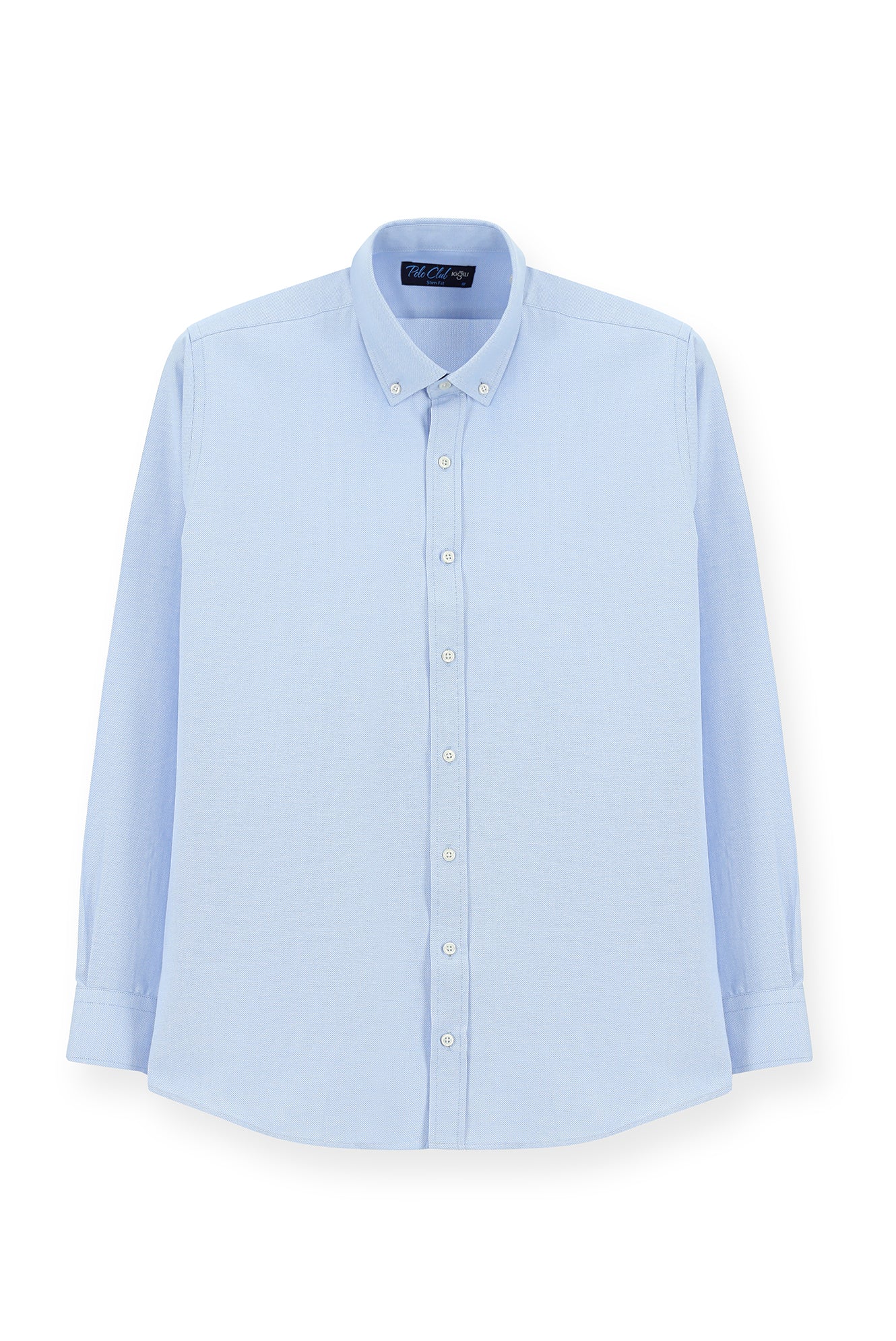 Açık Mavi Uzun Kol Slim Fit Düğmeli Yaka Oxford Pamuklu Kolay Ütülenebilir Gömlek