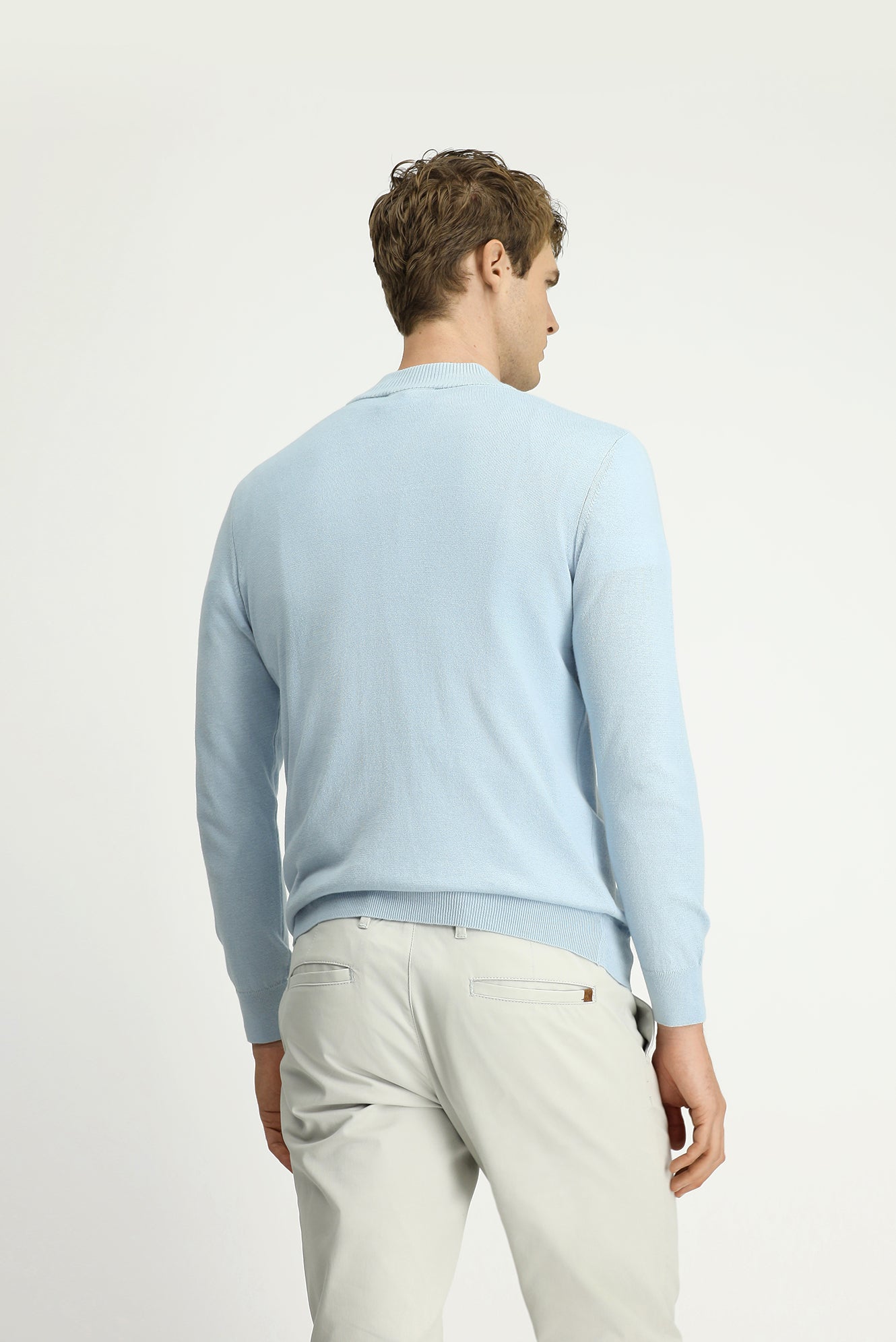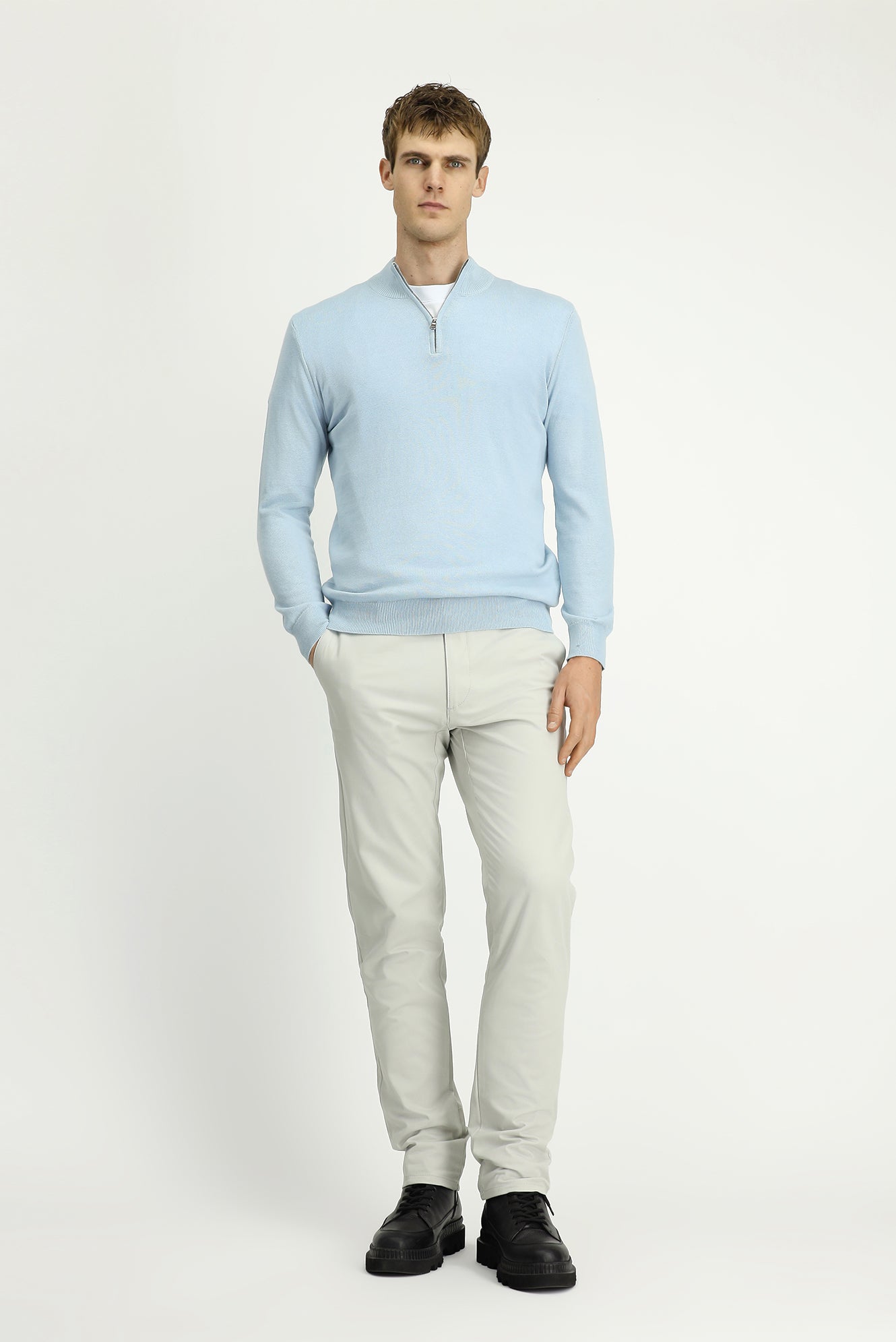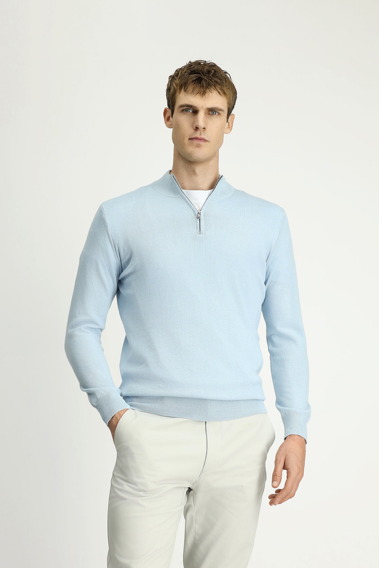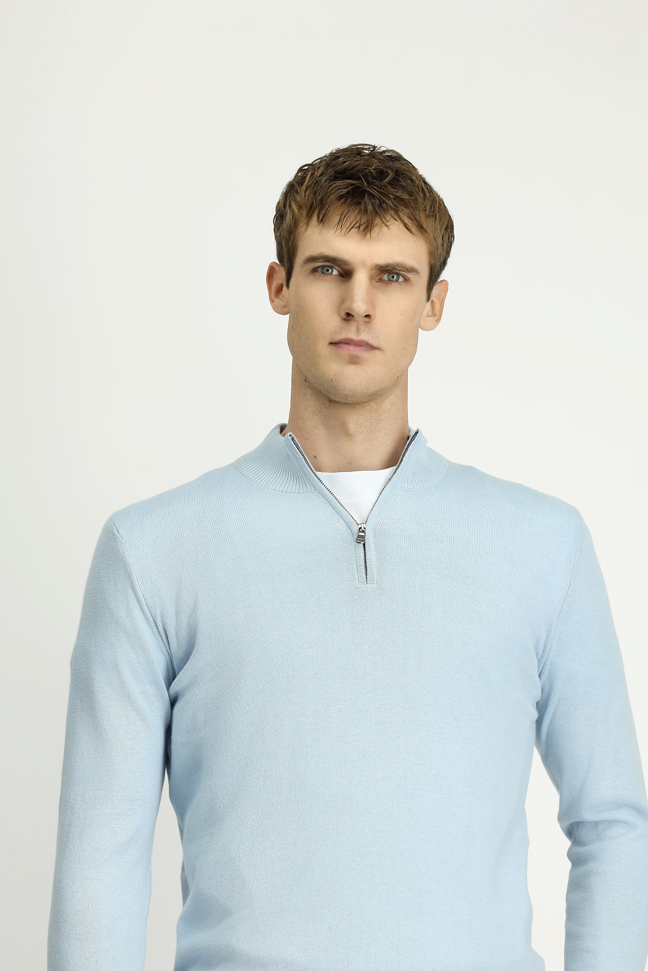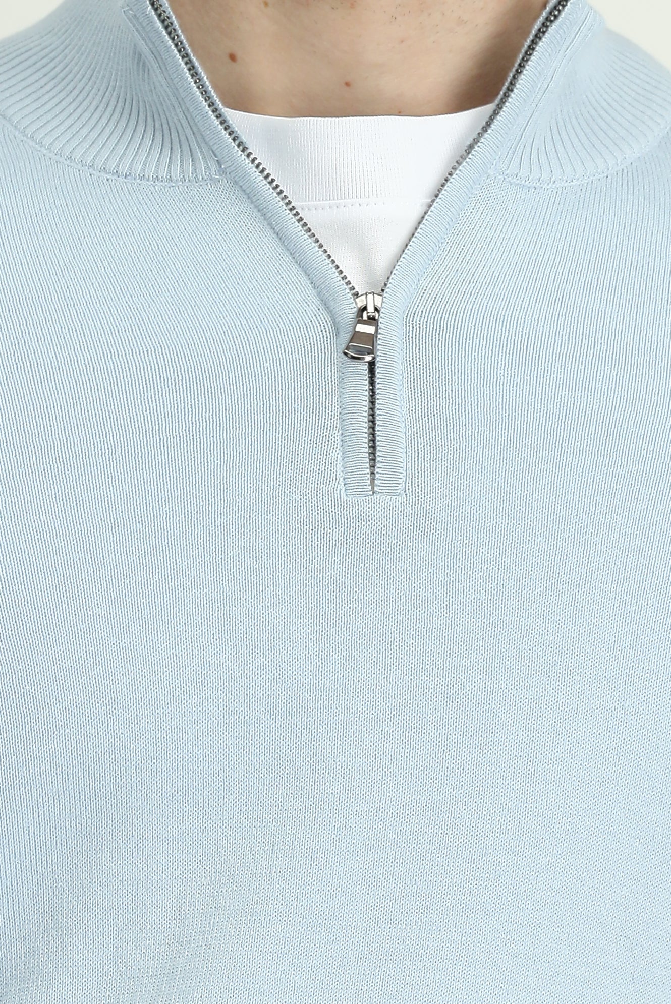 Açık Mavi Yarım Balıkçı Yaka Regular Fit Fermuarlı Kaşmirli Triko Kazak