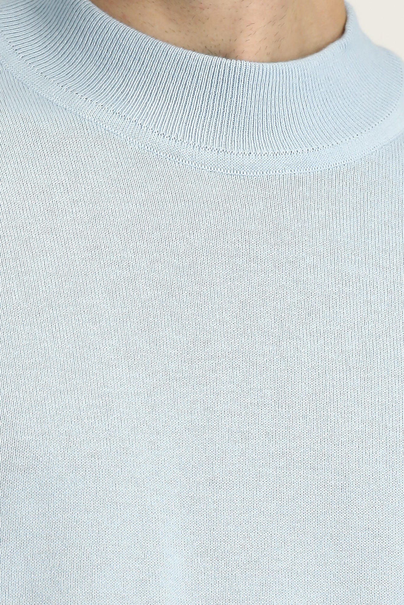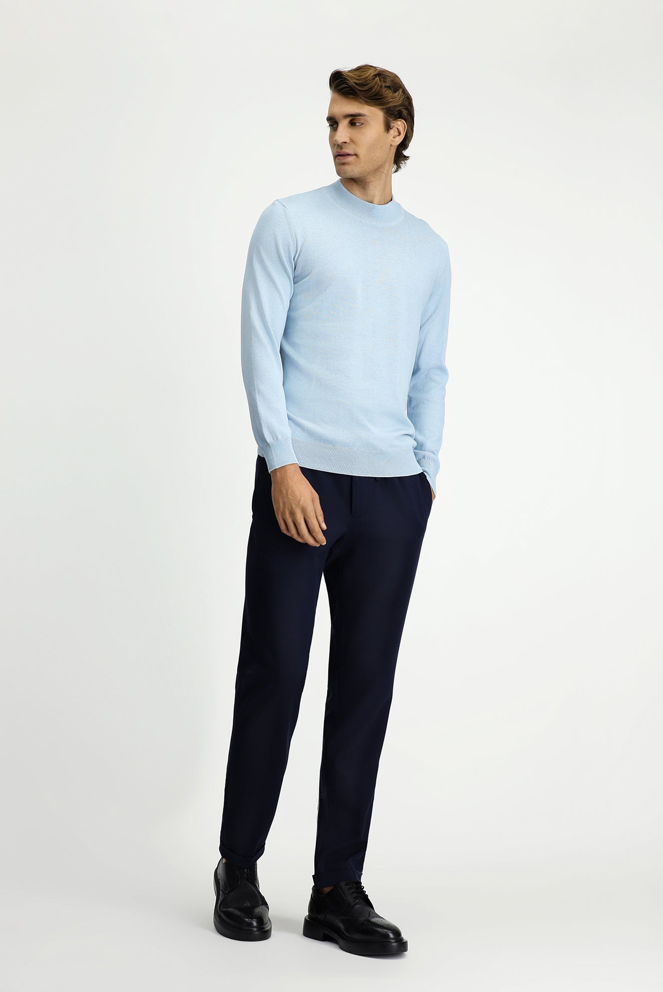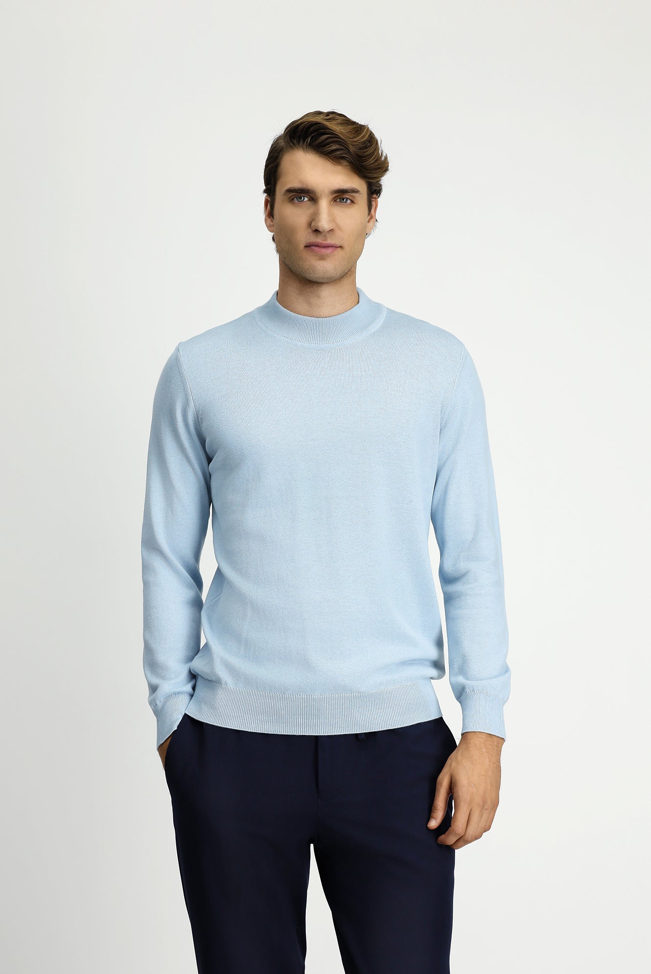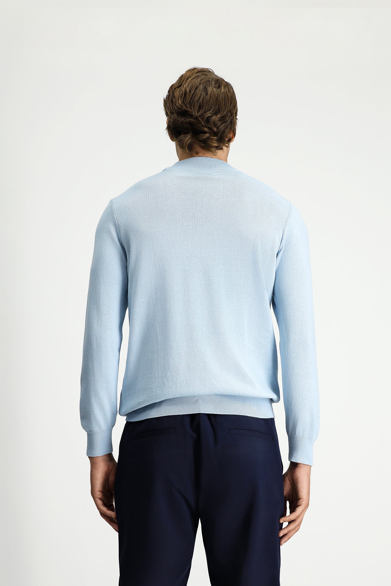 Açık Mavi Yarım Balıkçı Yaka Regular Fit Pamuklu Kaşmirli Triko Kazak