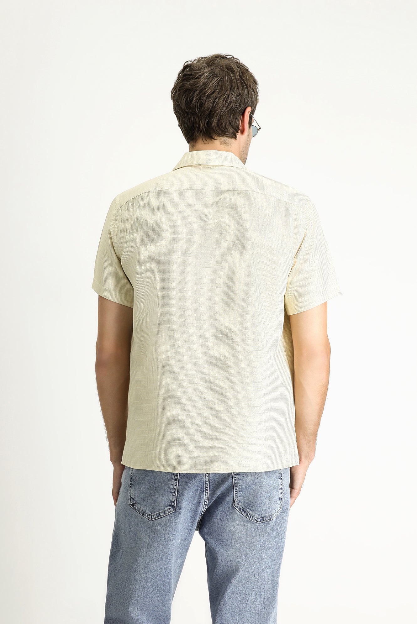 Açık Sarı Kısa Kol Regular Fit Desenli Spor Pamuklu Kolay Ütülenebilir Gömlek