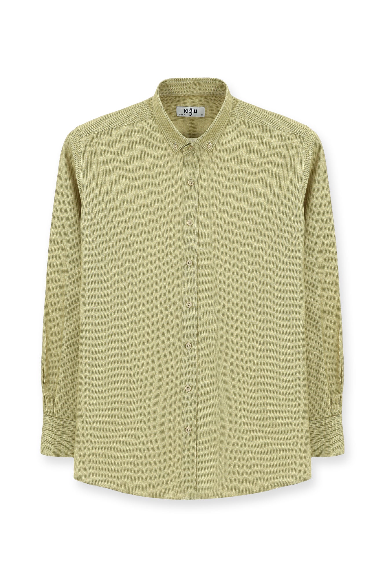 Açık Sarı Uzun Kol Regular Fit Desenli Spor Oduncu Pamuk Düğmeli Yaka Gömlek