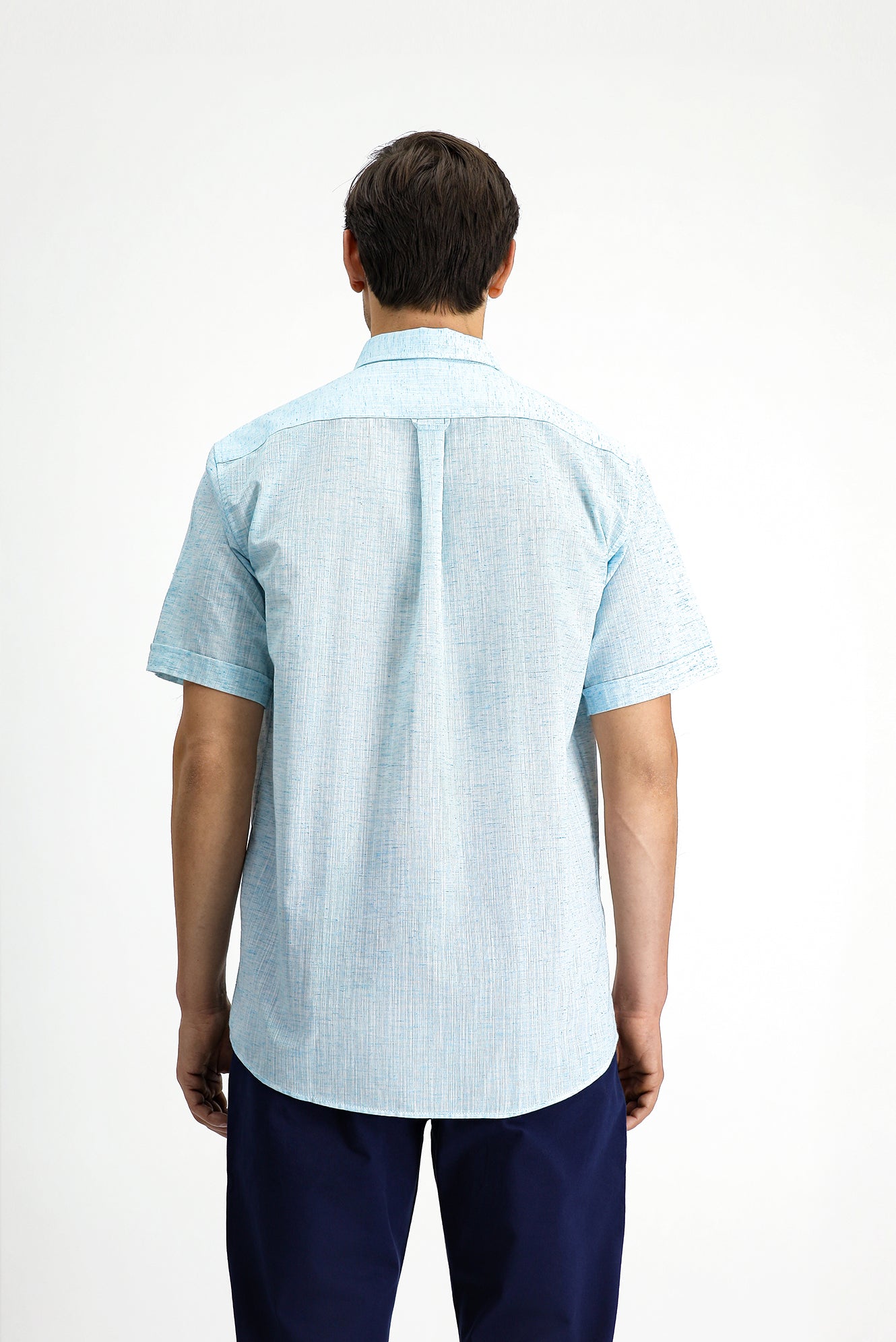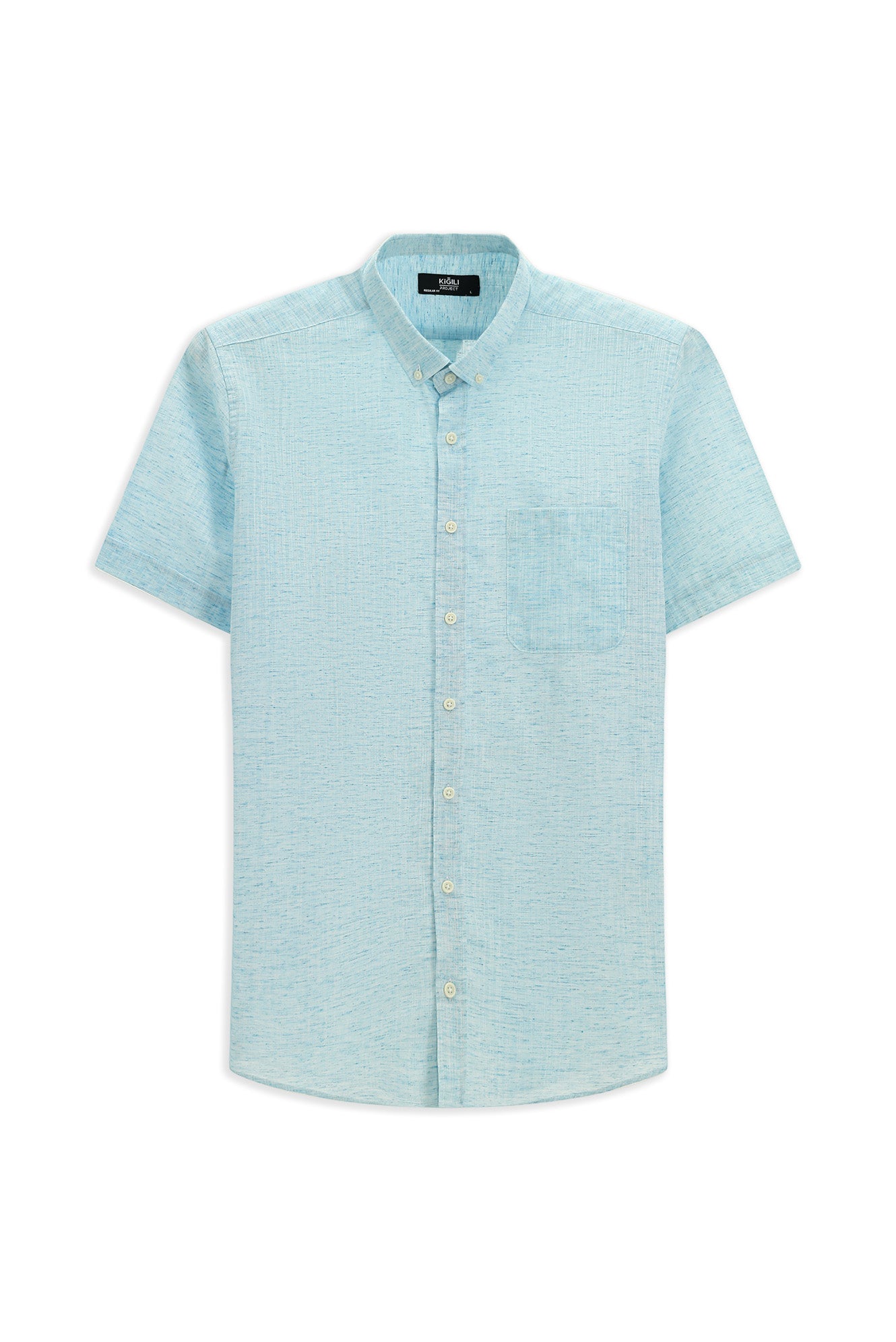 Açık Turkuaz Kısa Kol Regular Fit Düğmeli Yaka Desenli Pamuklu Gömlek
