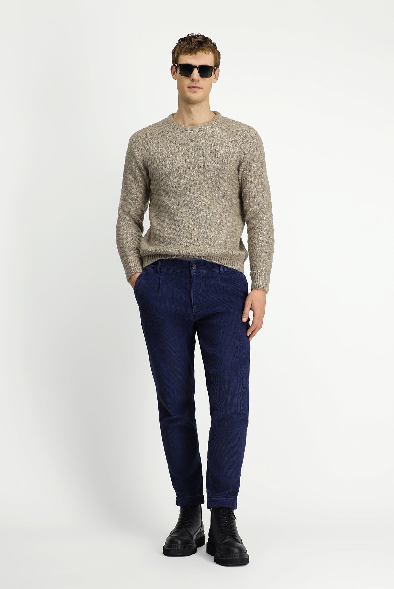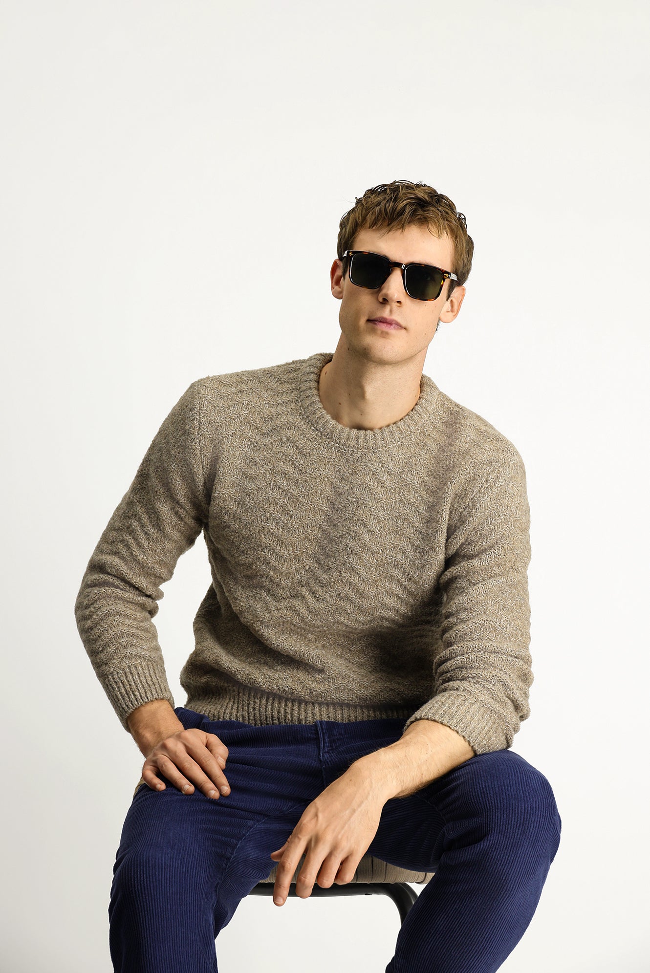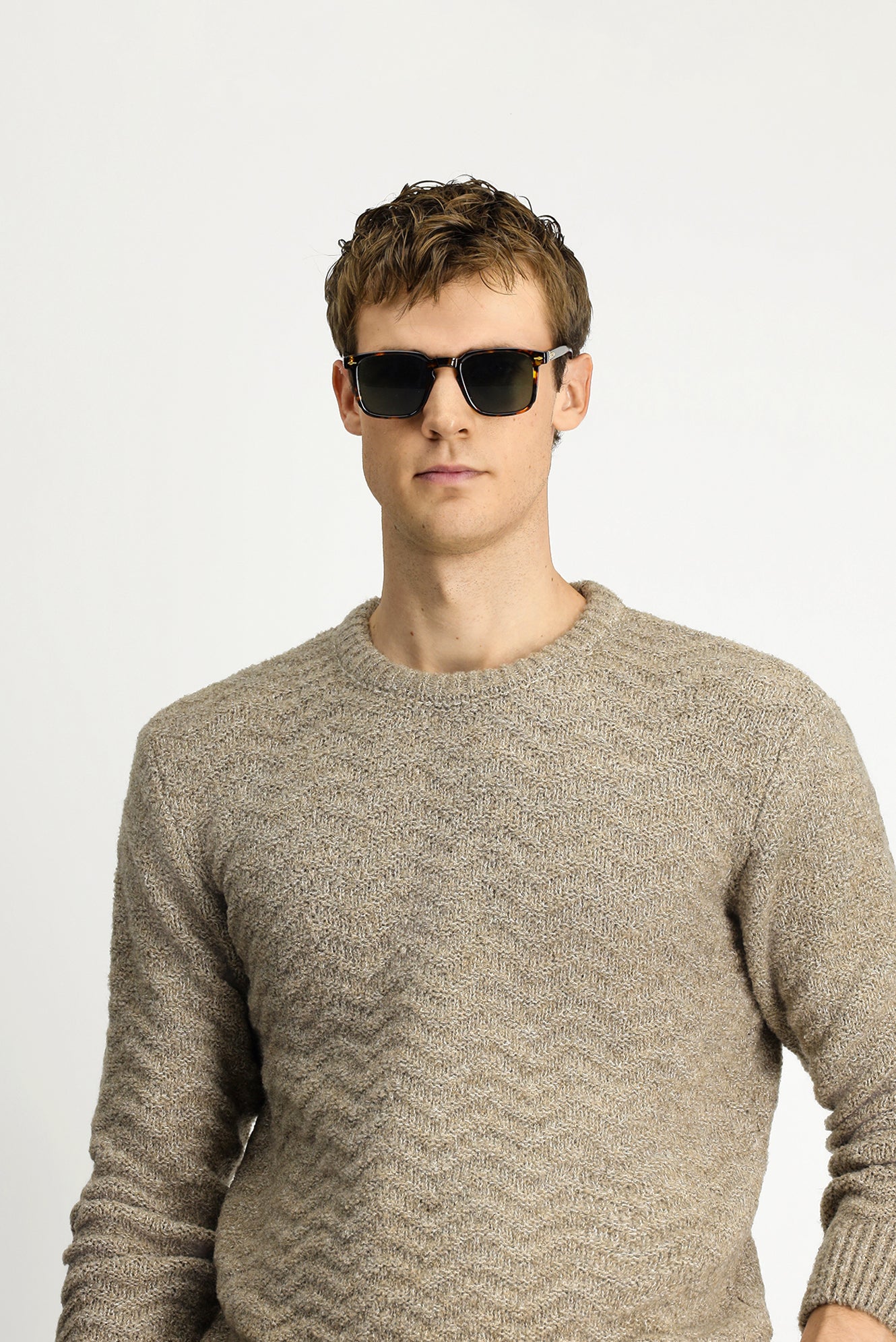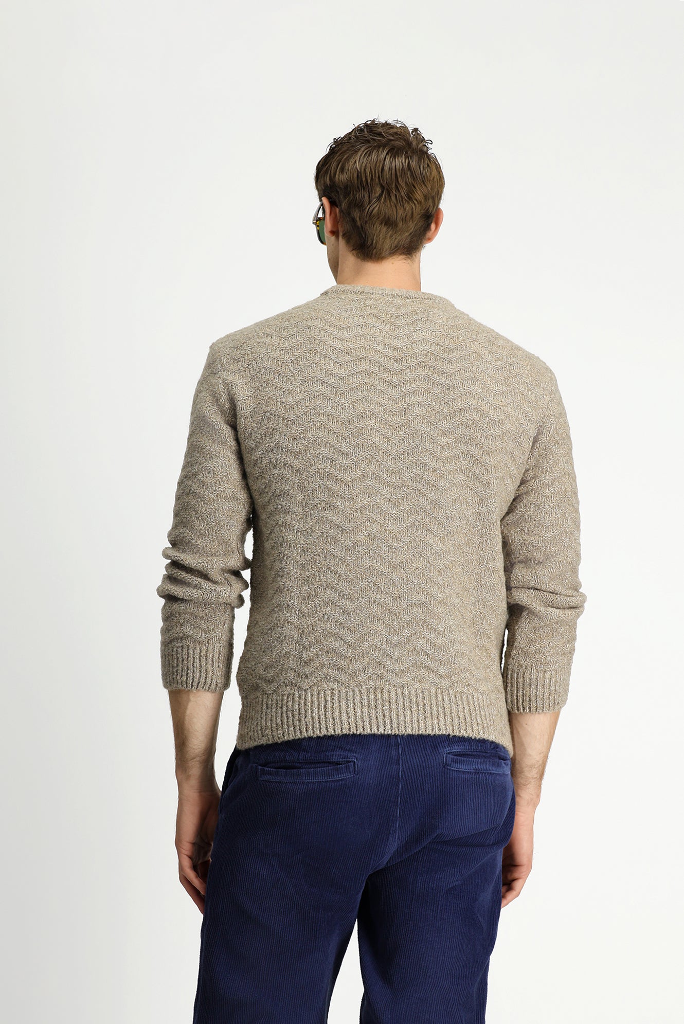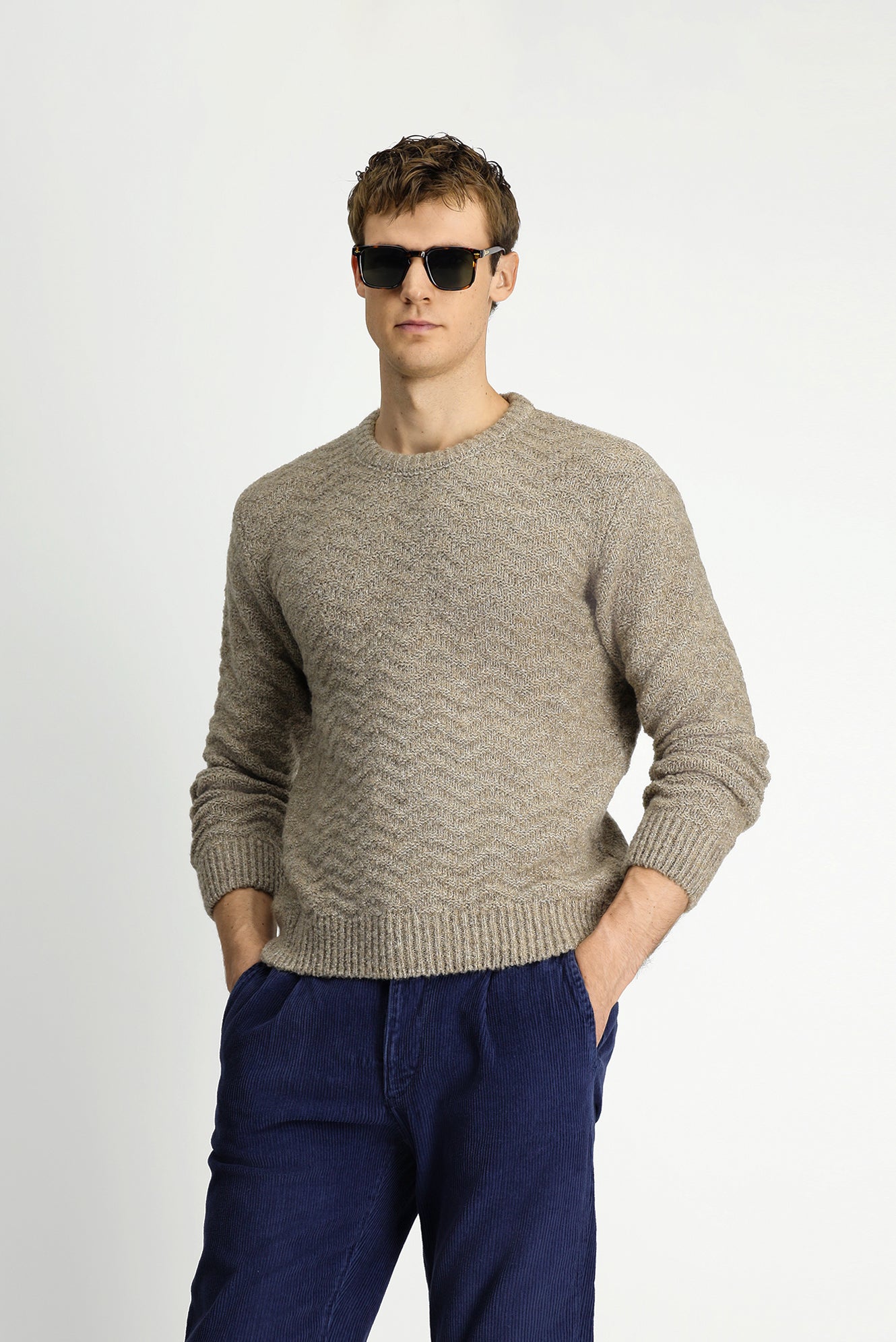 Açık Vizon Bisiklet Yaka Oversize Ekstra Rahat Kesim Desenli Yünlü Triko Kazak
