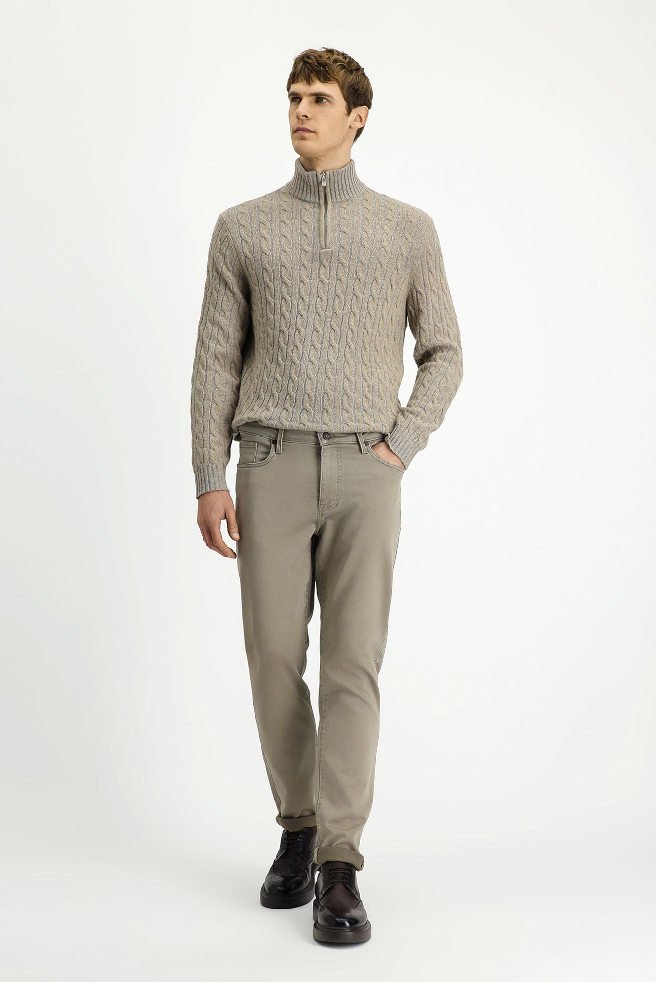 Açık Vizon Regular Fit Likralı Kanvas / Chino Pantolon