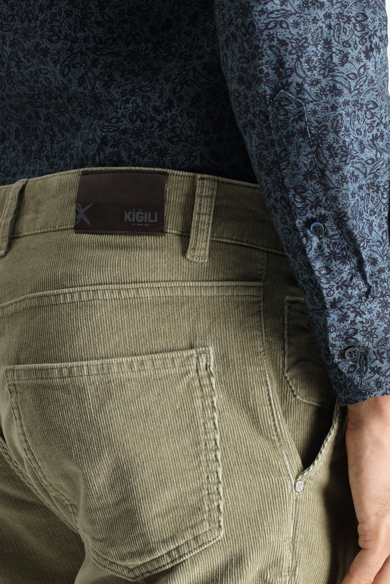 Açık Vizon Regular Fit Likralı Kadife Pantolon