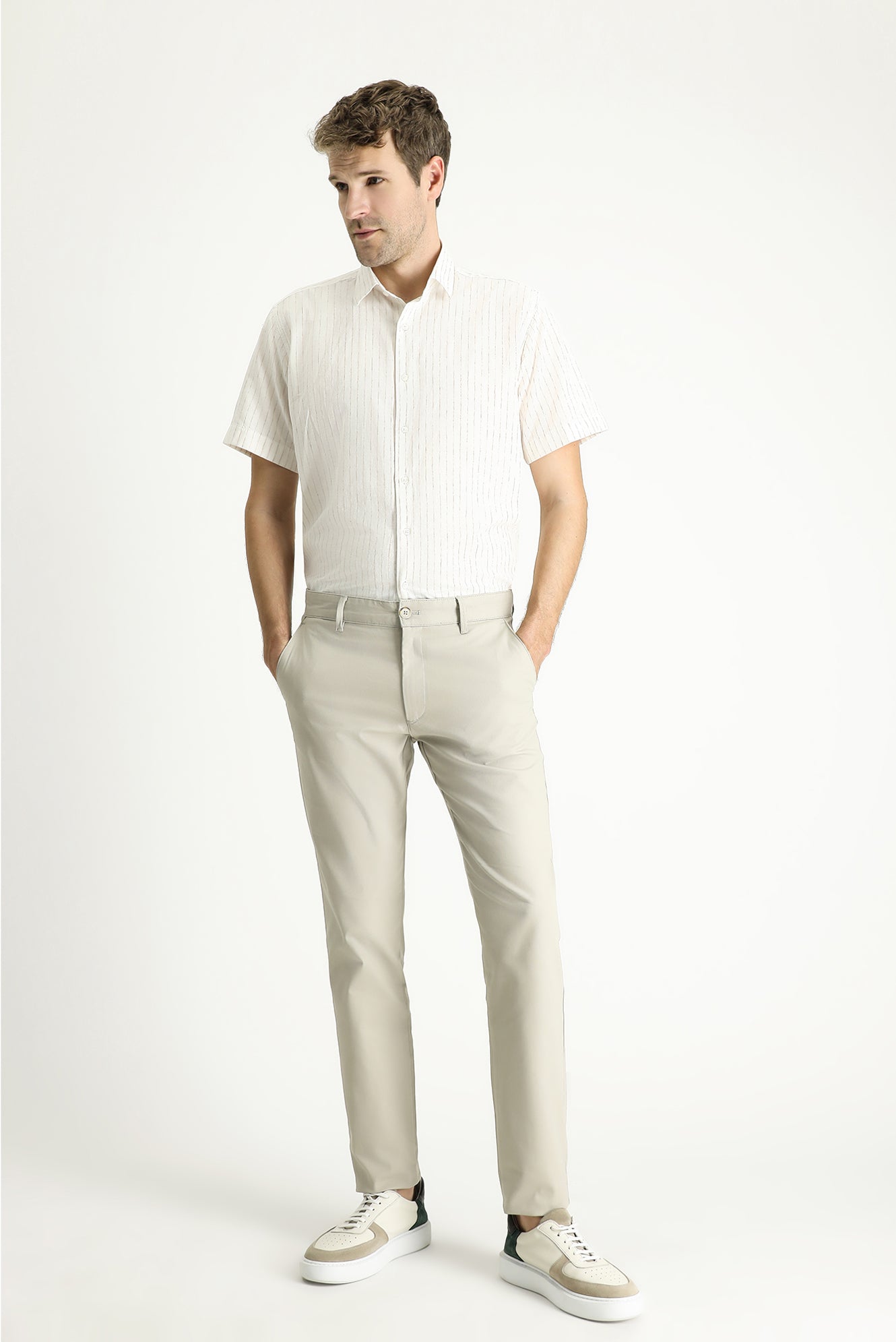 Açık Vizon 4 Drop Relaxed Fit Rahat Kesim Desenli Likralı Kanvas / Chino Pantolon