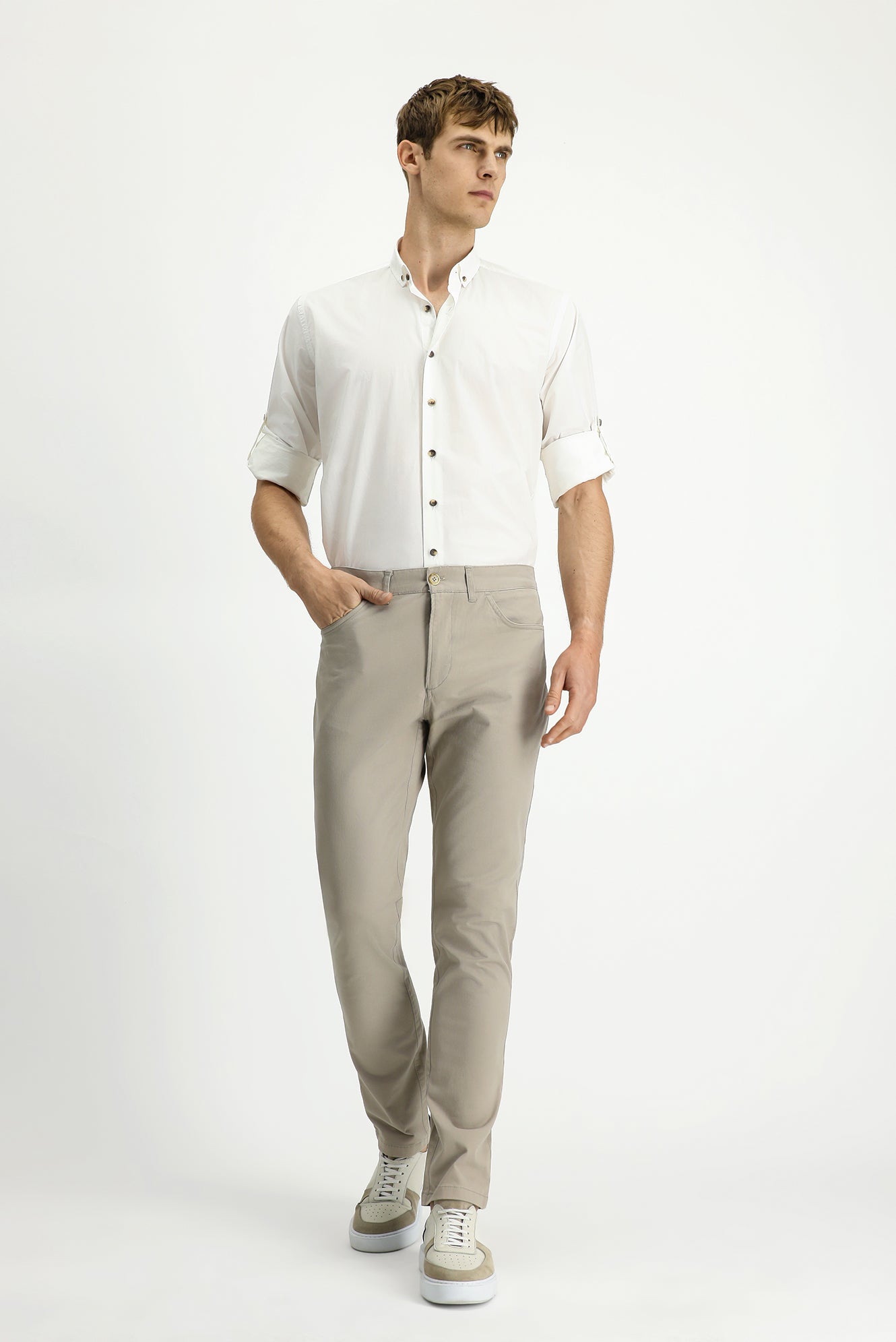 Açık Vizon Slim Fit Dar Kesim Likralı Kanvas / Chino Pantolon