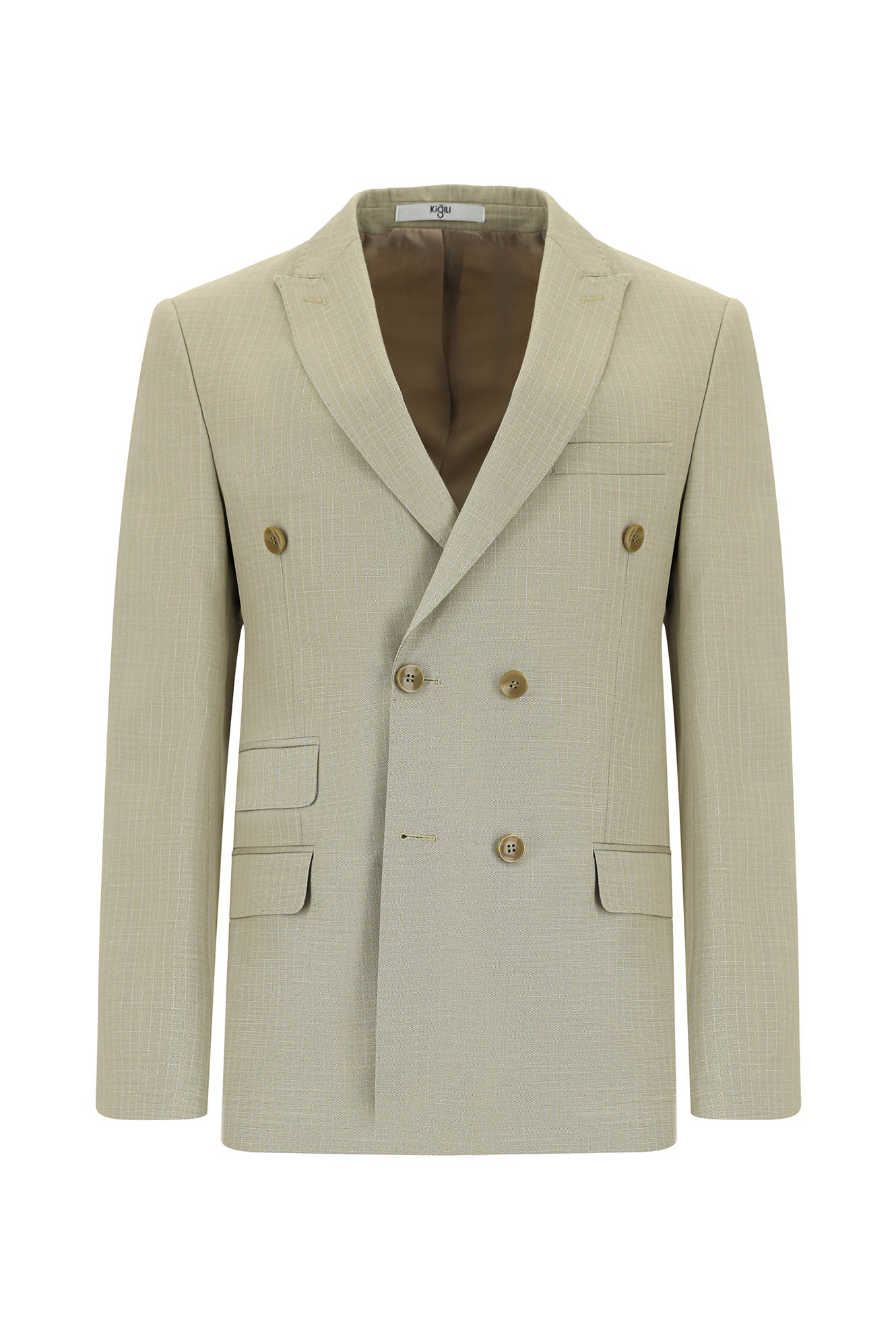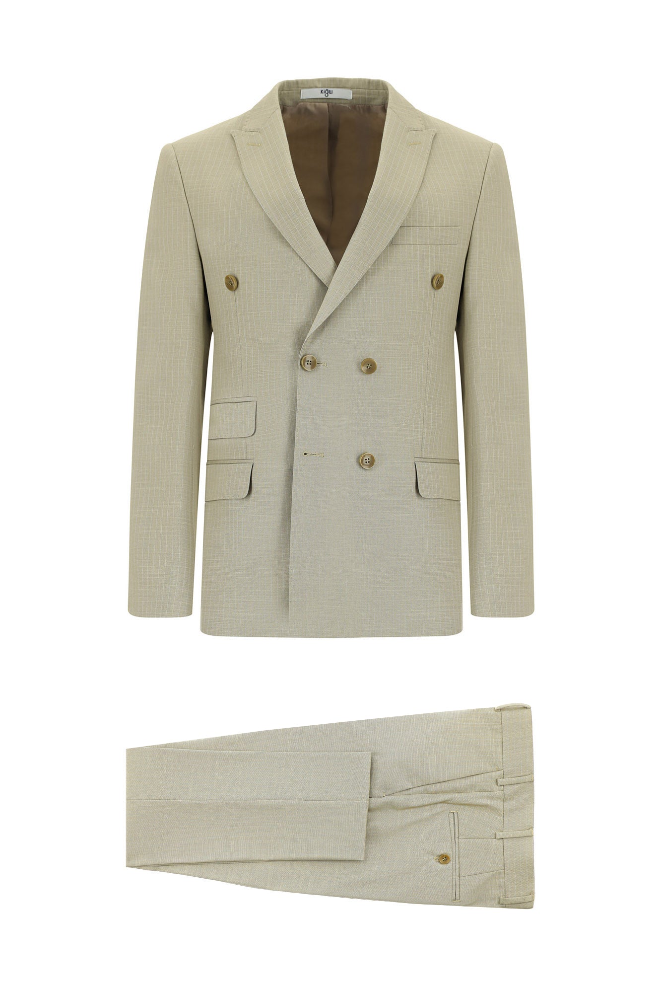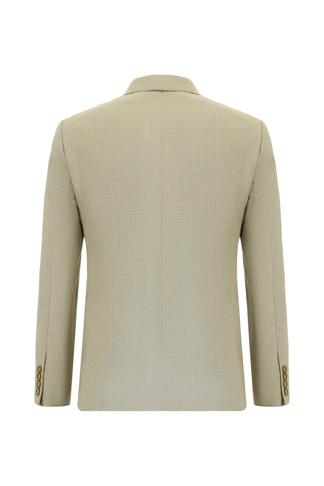 Açık Vizon 7 Drop Super Slim Fit Eksra Dar Kesim Çizgili Kruvaze Takım Elbise