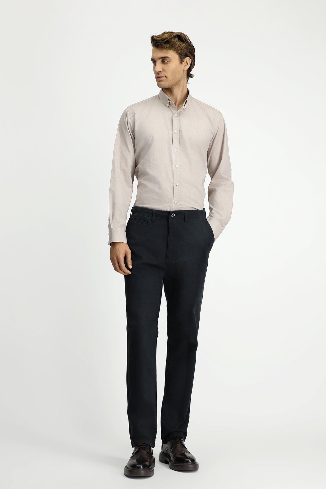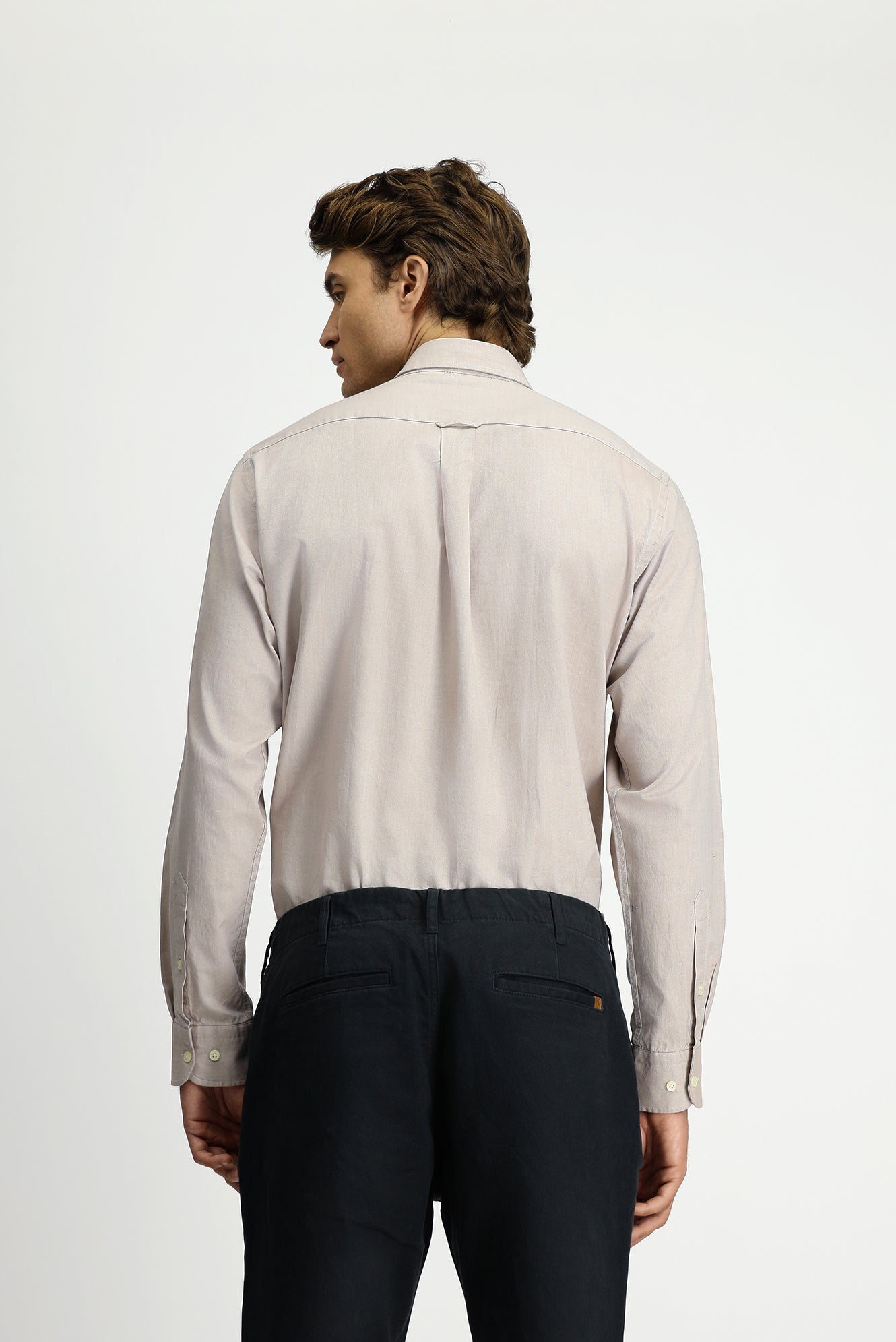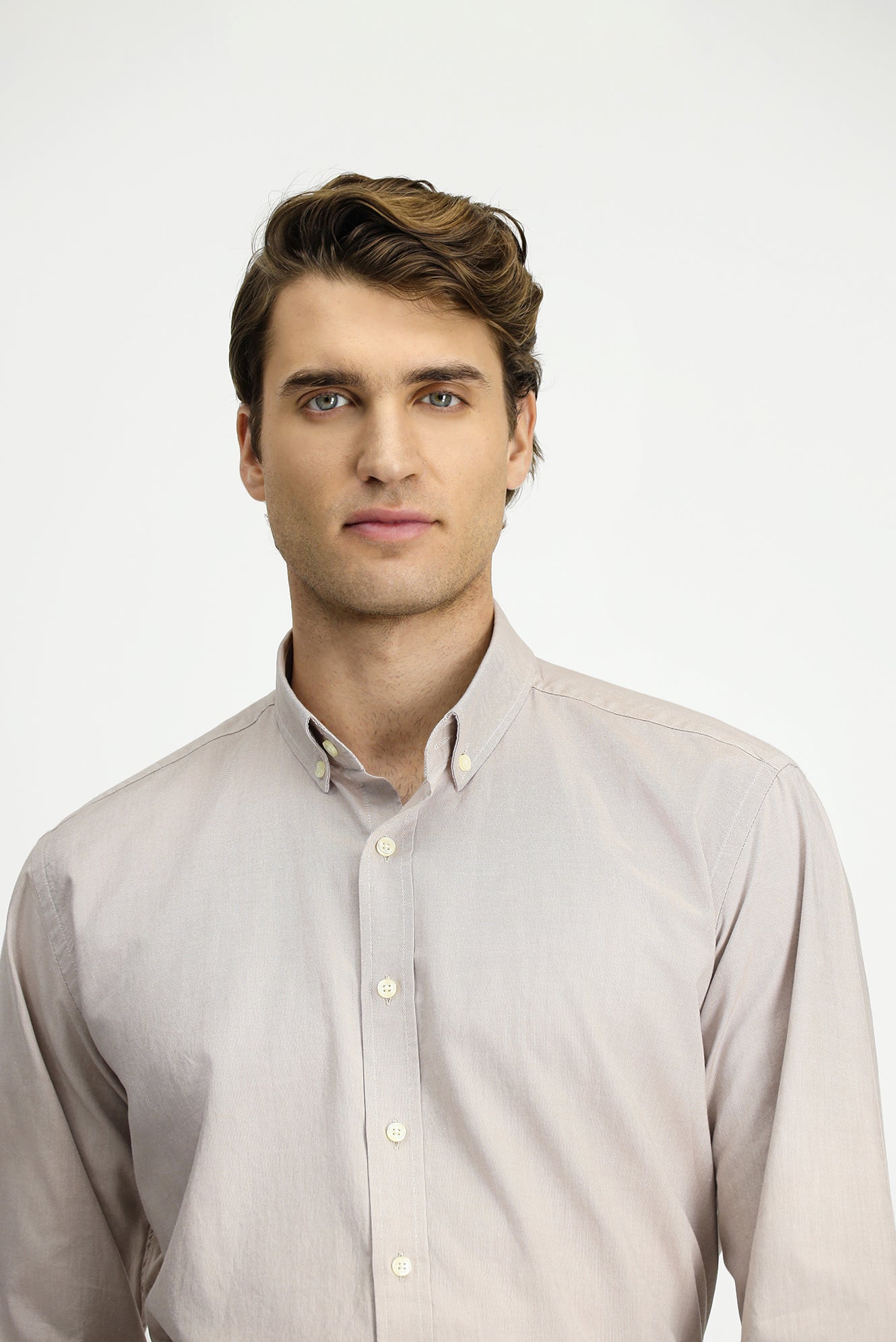 Açık Vizon Uzun Kol Regular Fit Düğmeli Yaka Oxford Pamuk Gömlek