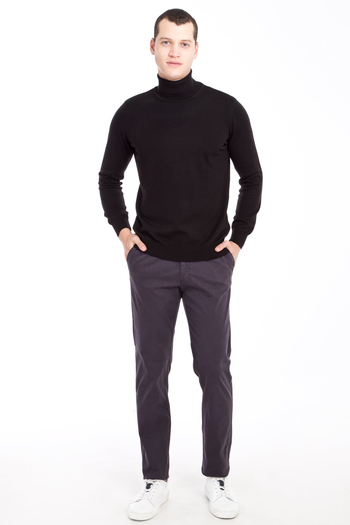 Antrasit Regular Fit Desenli Likralı Kanvas / Chino Pantolon