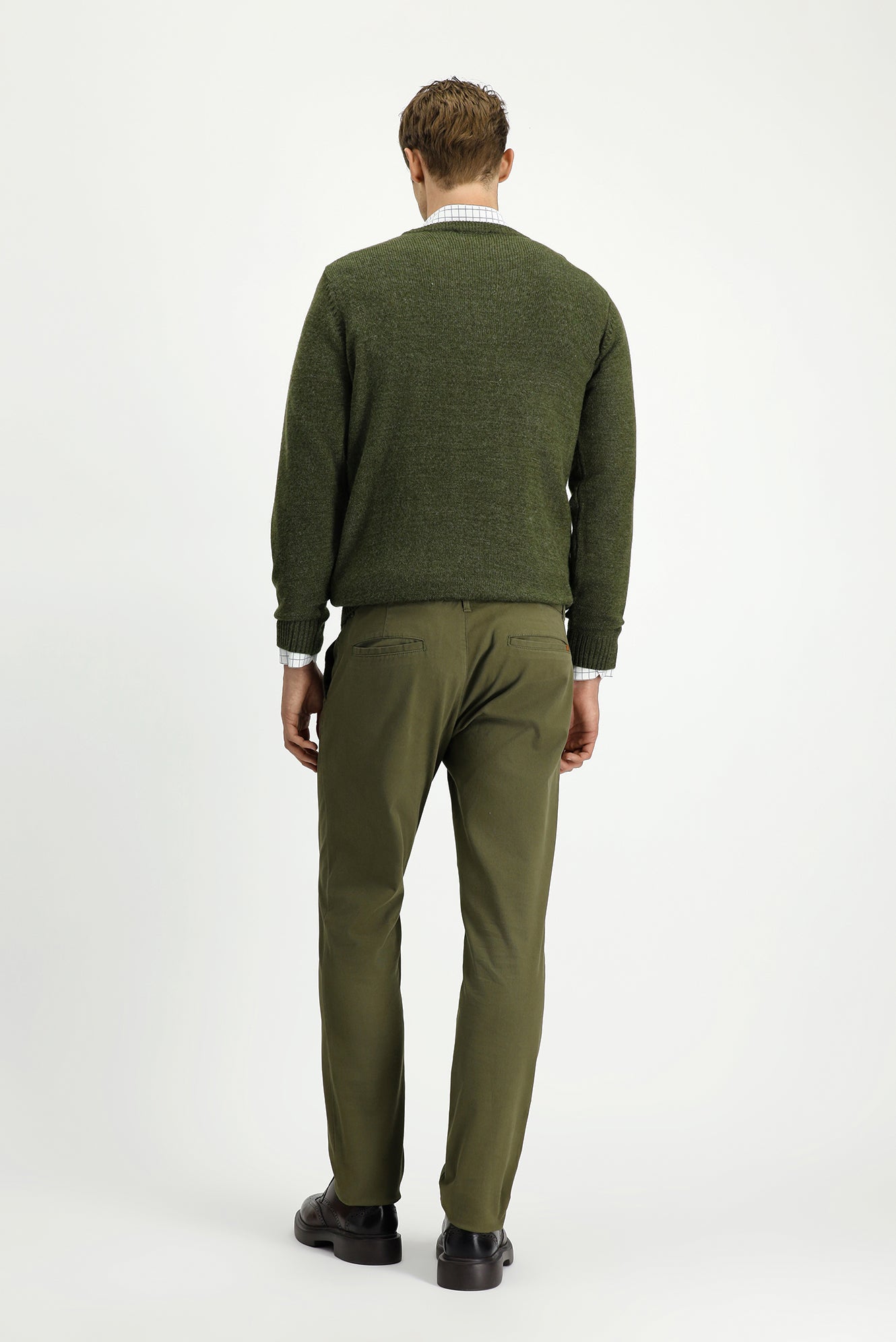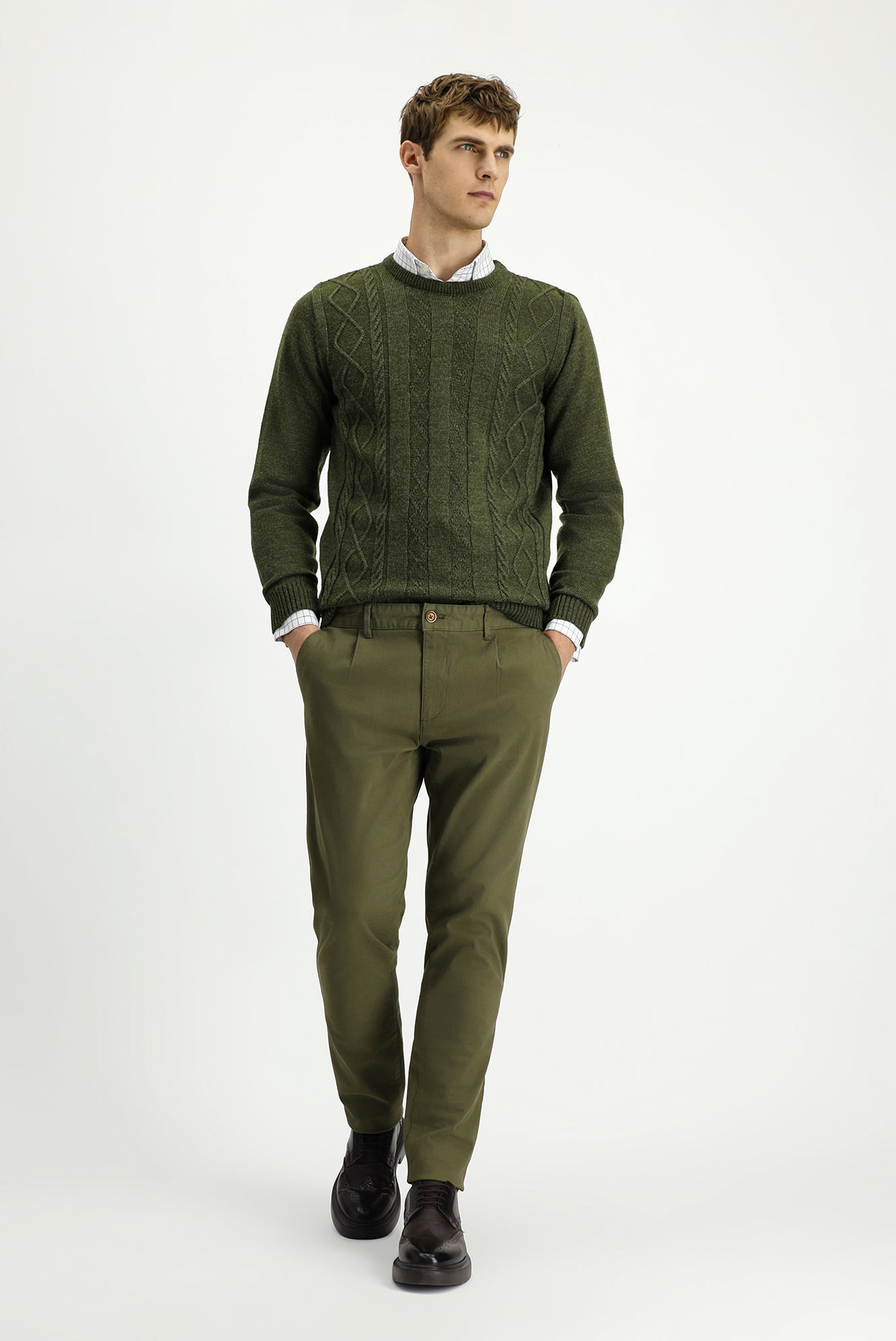 Asker Haki 6 Drop Regular Fit Standart Kesim Likralı Pileli Kanvas / Chino Pantolon