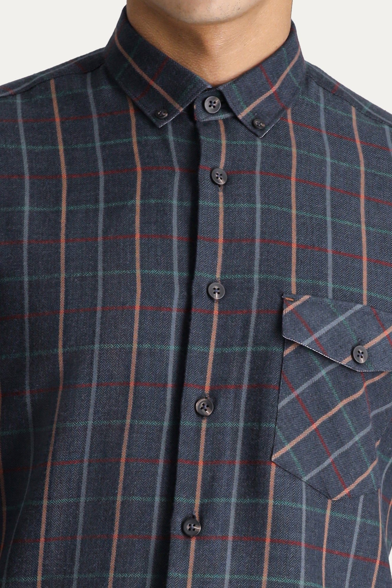 Asker Haki Uzun Kol Slim Fit Dar Kesim Ekose Oduncu Spor Pamuk Düğmeli Yaka Gömlek
