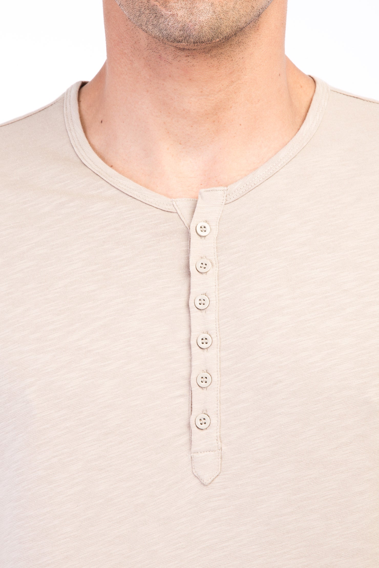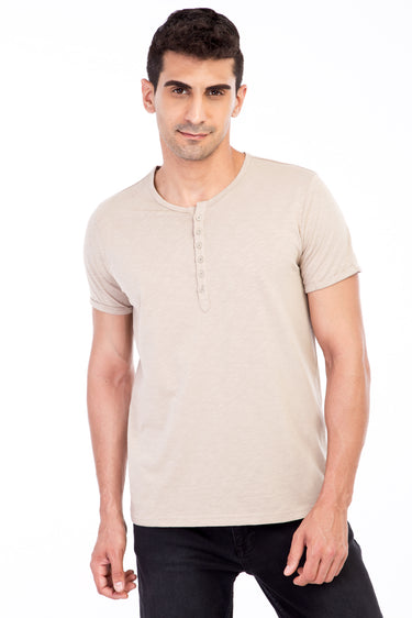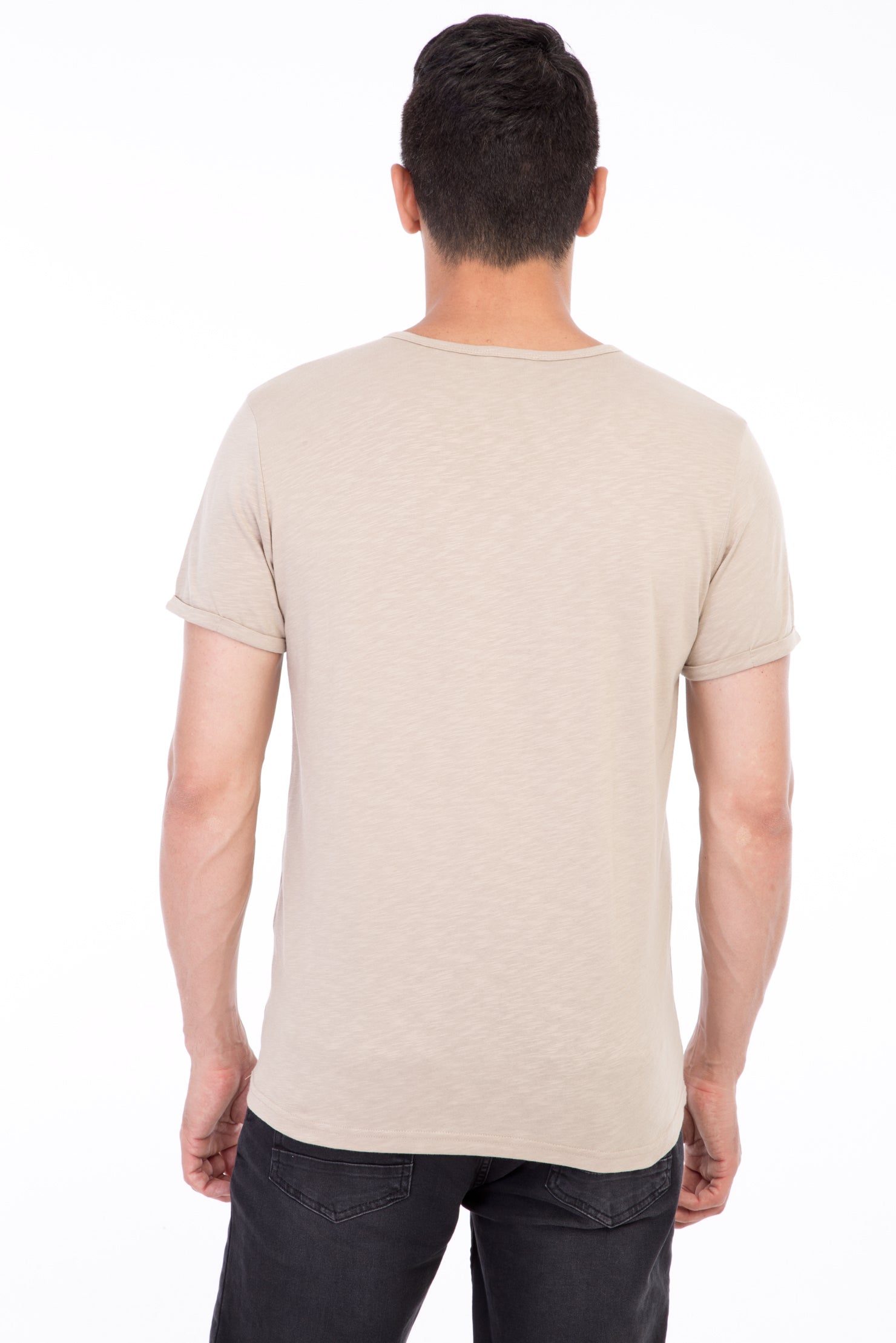 Bej Bisiklet Yaka Düğmeli Regular Fit Pamuk Tişört