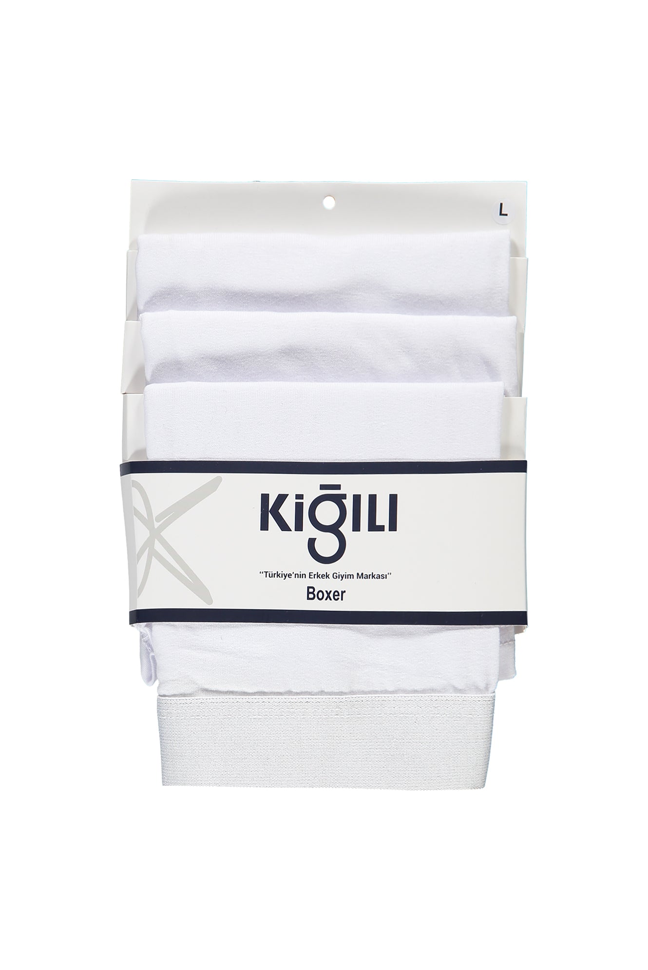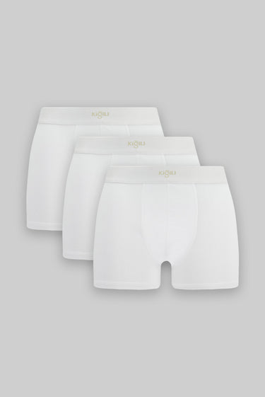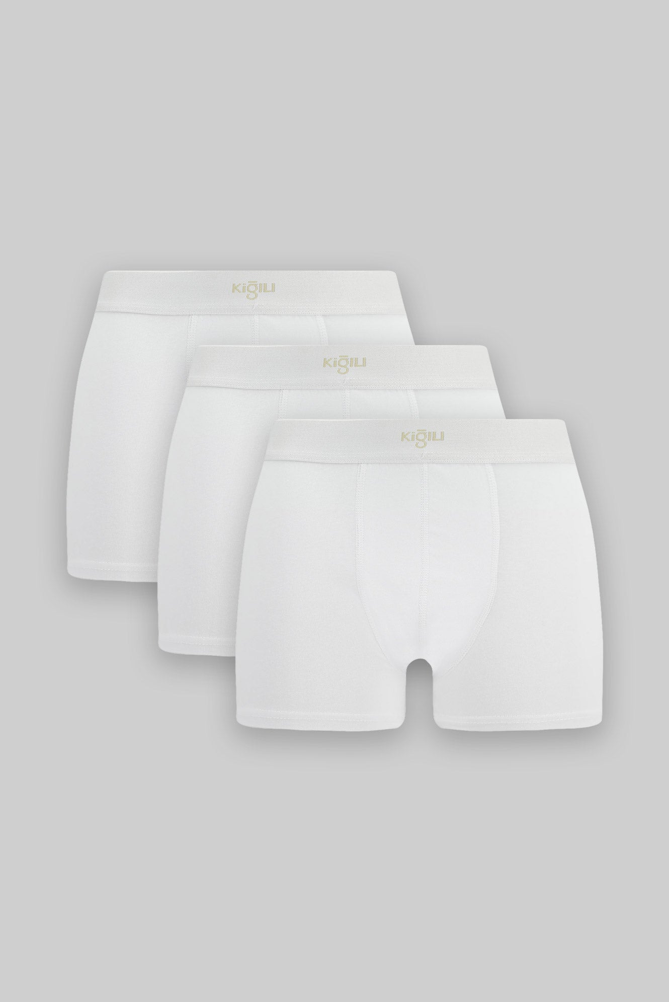 Beyaz 3'lü Pamuklu Likralı Rahat Esnek Boxer Seti