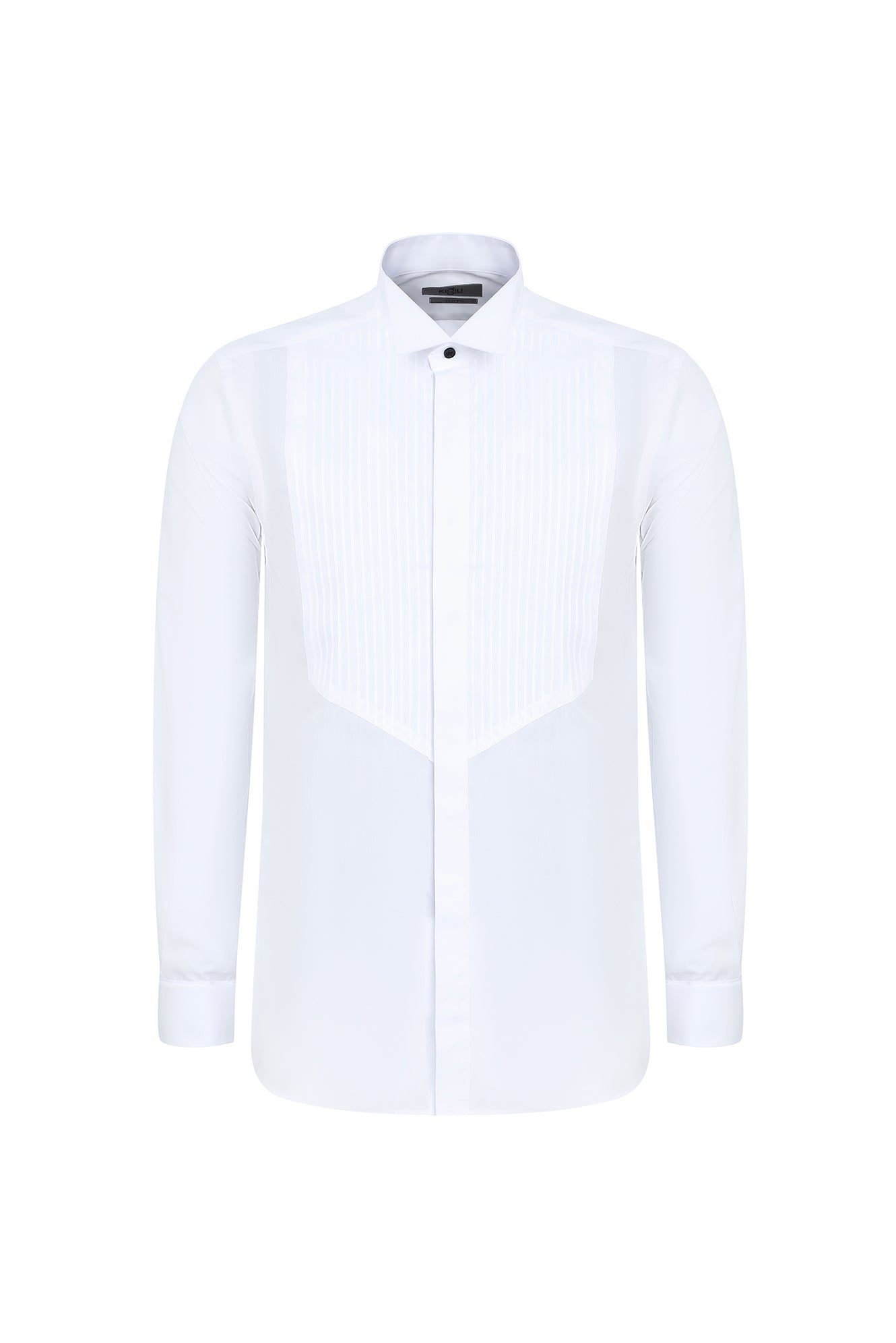 Beyaz Ata Yaka Slim Fit Dar Kesim Pamuk Gömlek