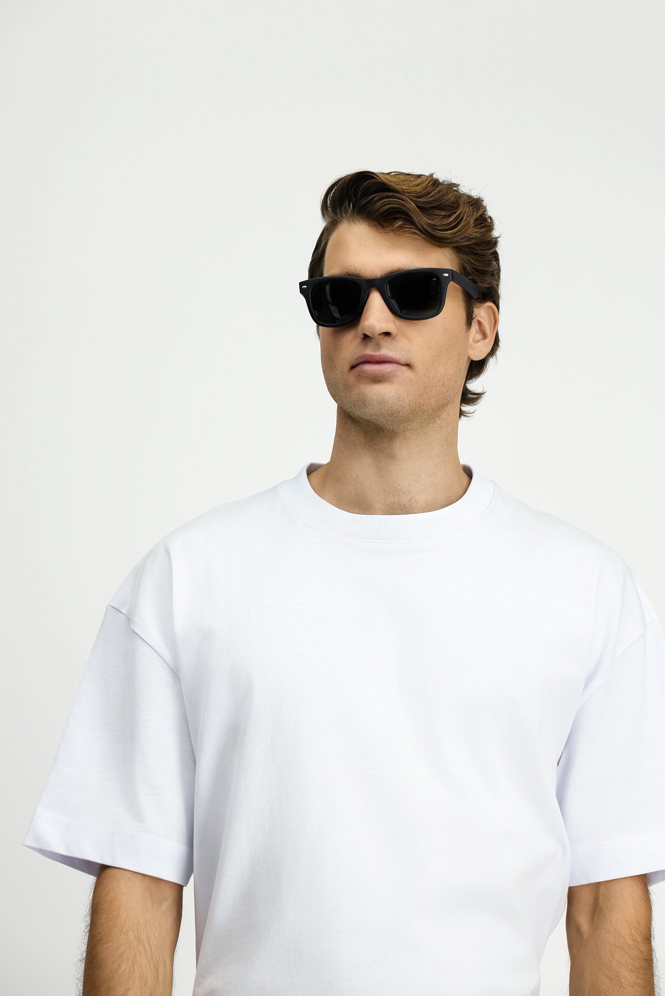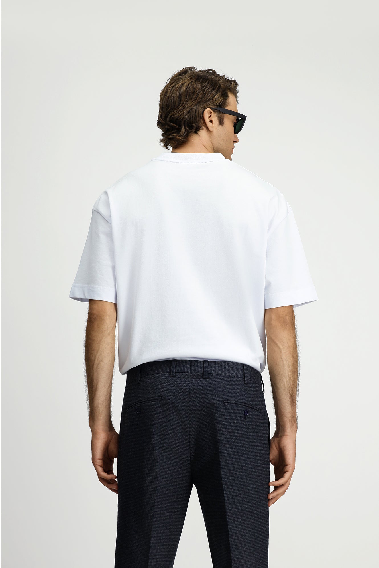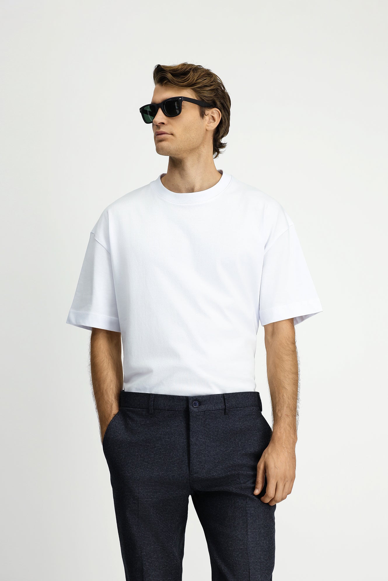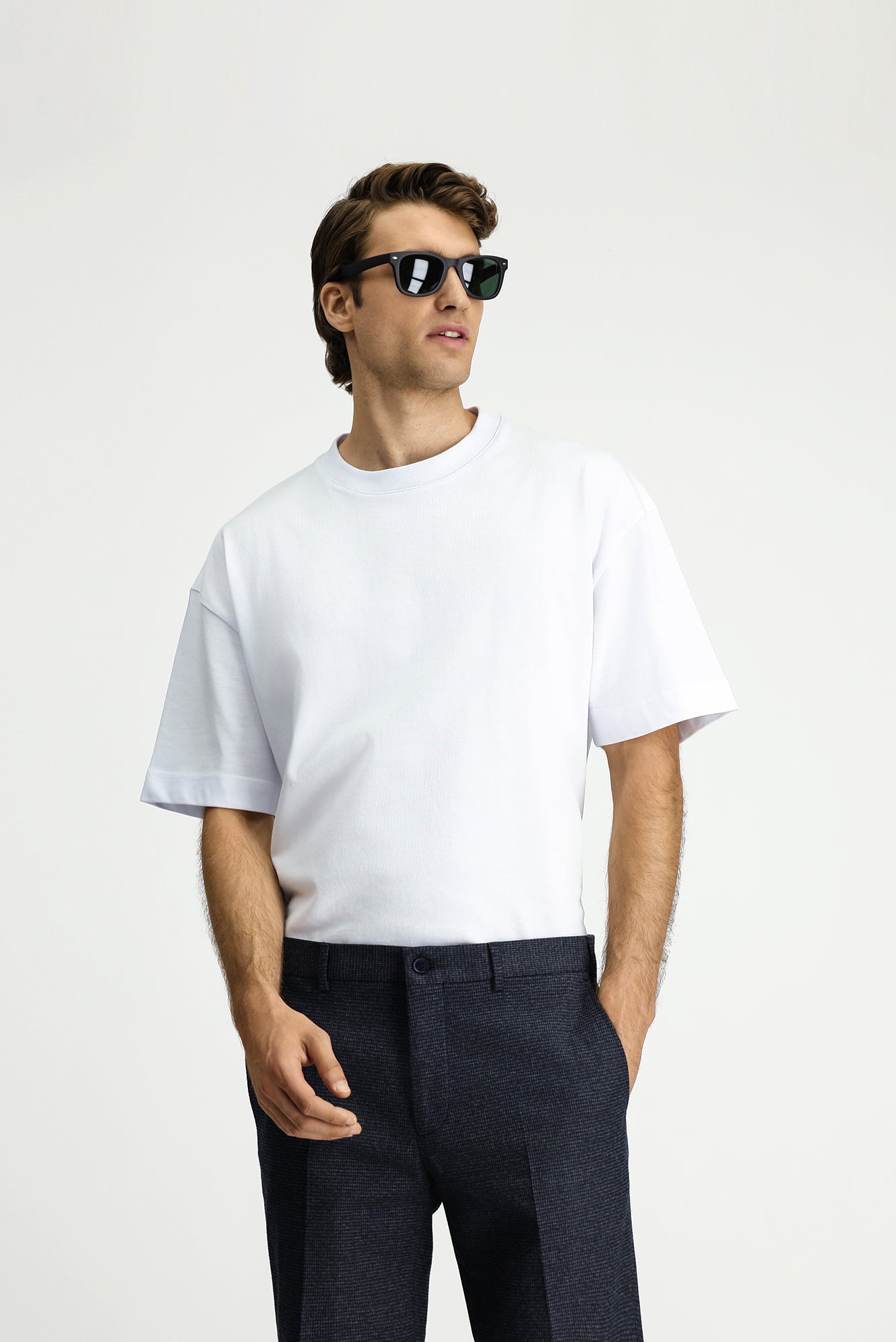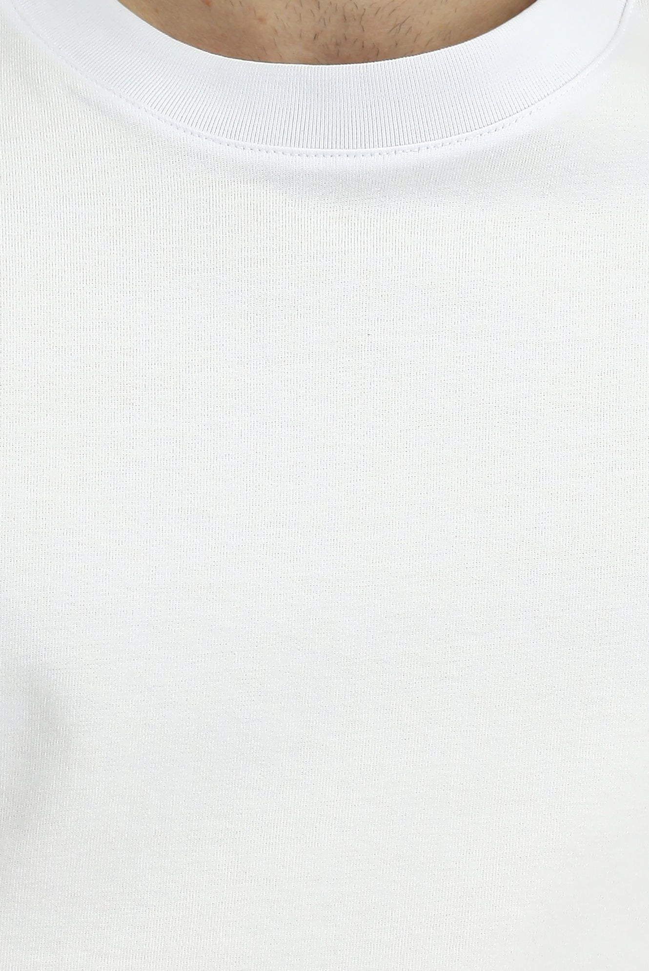 Beyaz Bisiklet Yaka Oversize Ekstra Rahat Kesim Pamuk Tişört