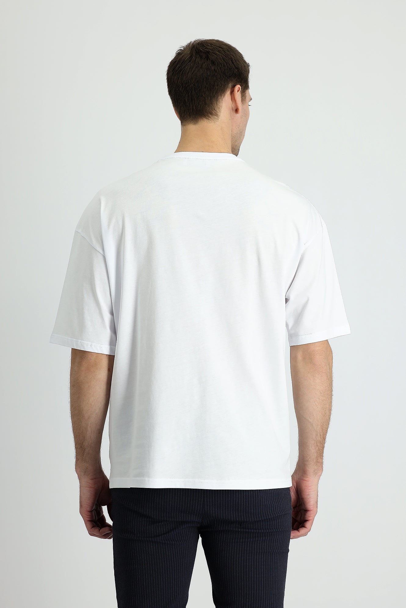 Beyaz Bisiklet Yaka Oversize Süprem Pamuk Tişört