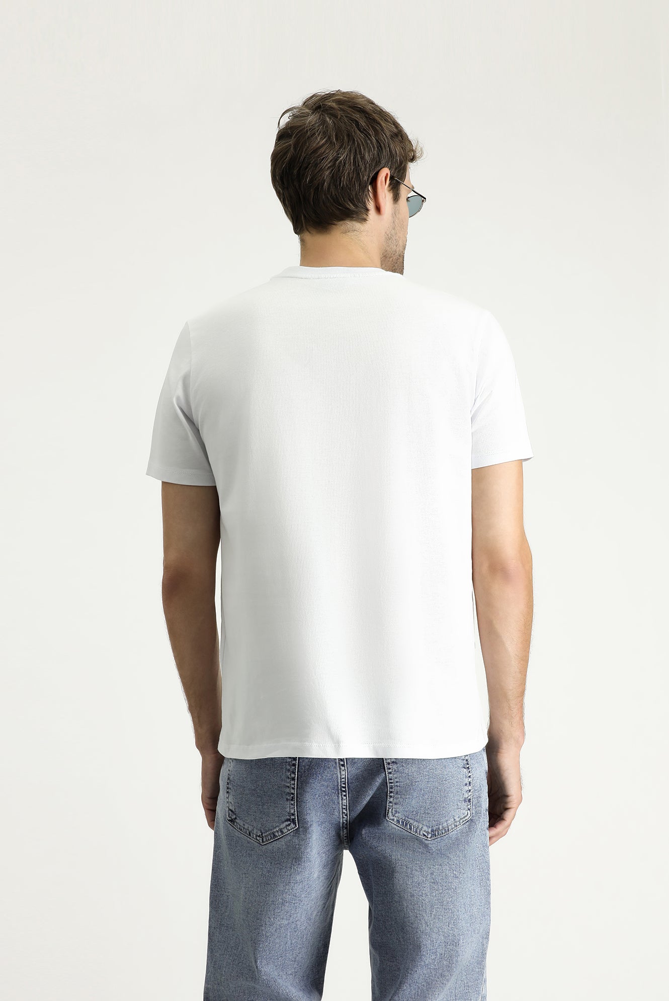 Beyaz Bisiklet Yaka Regular Fit Süprem Pamuk Tişört