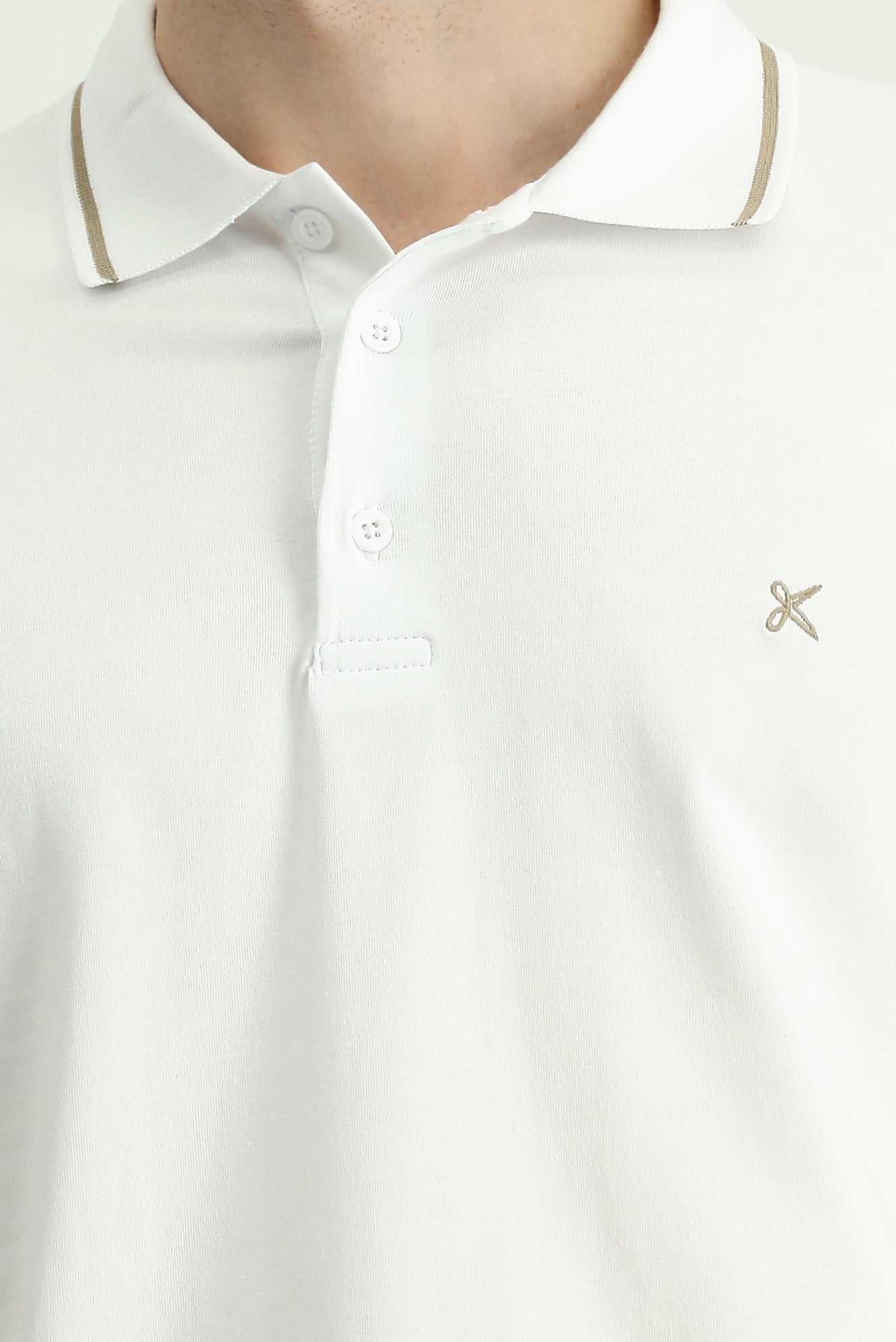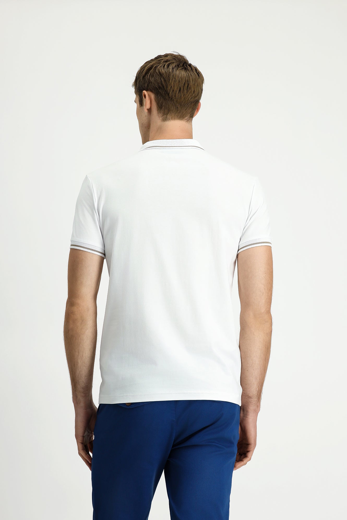 Beyaz Polo Yaka Slim Fit Yumuşak Dokulu Nakışlı Pamuklu Likralı Esnek Tişört