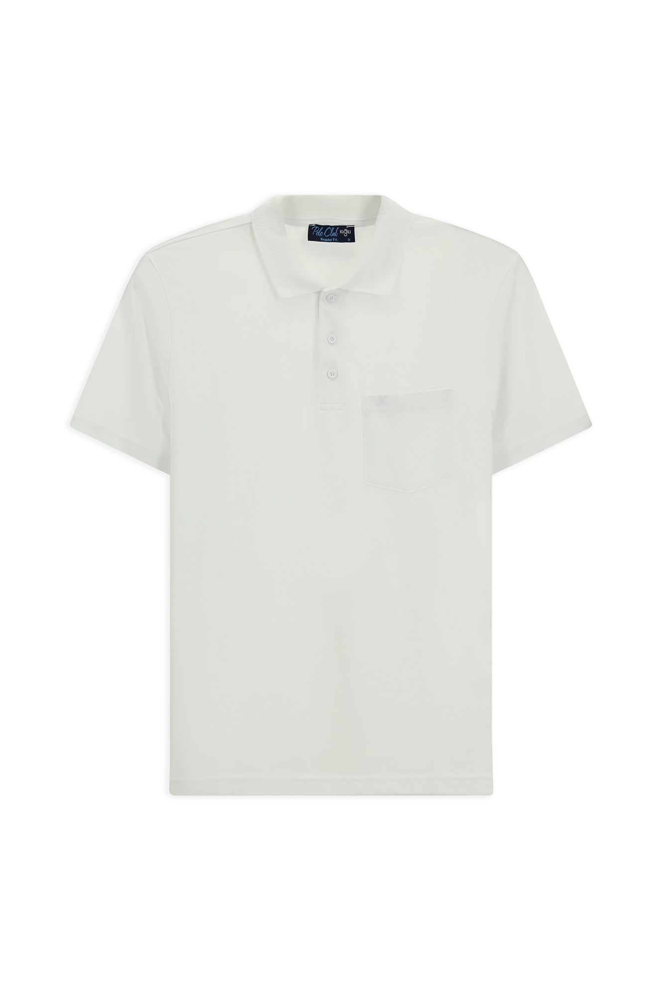 Beyaz Regular Fit Pamuklu Nakışlı Cepli Polo Yaka Tişört