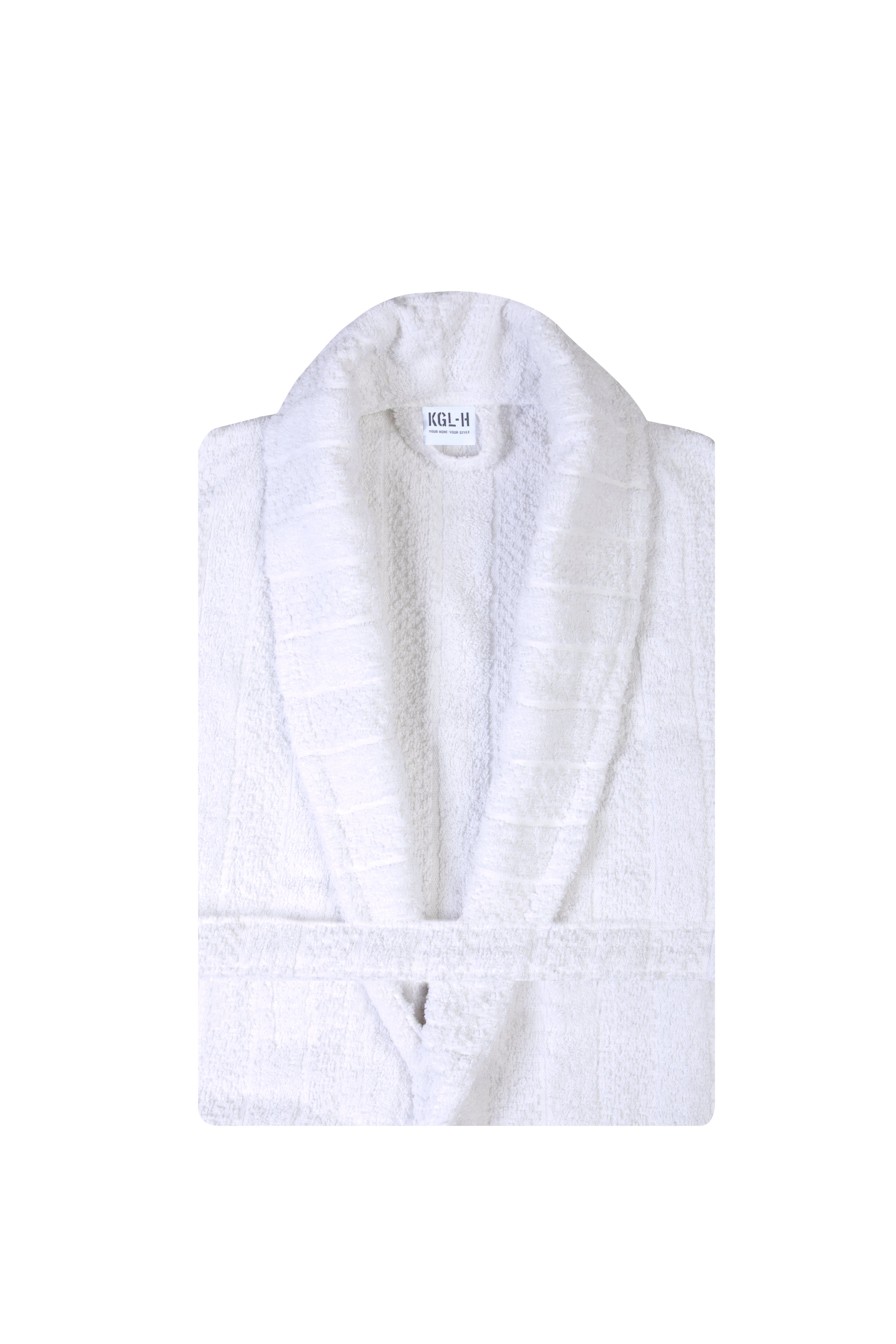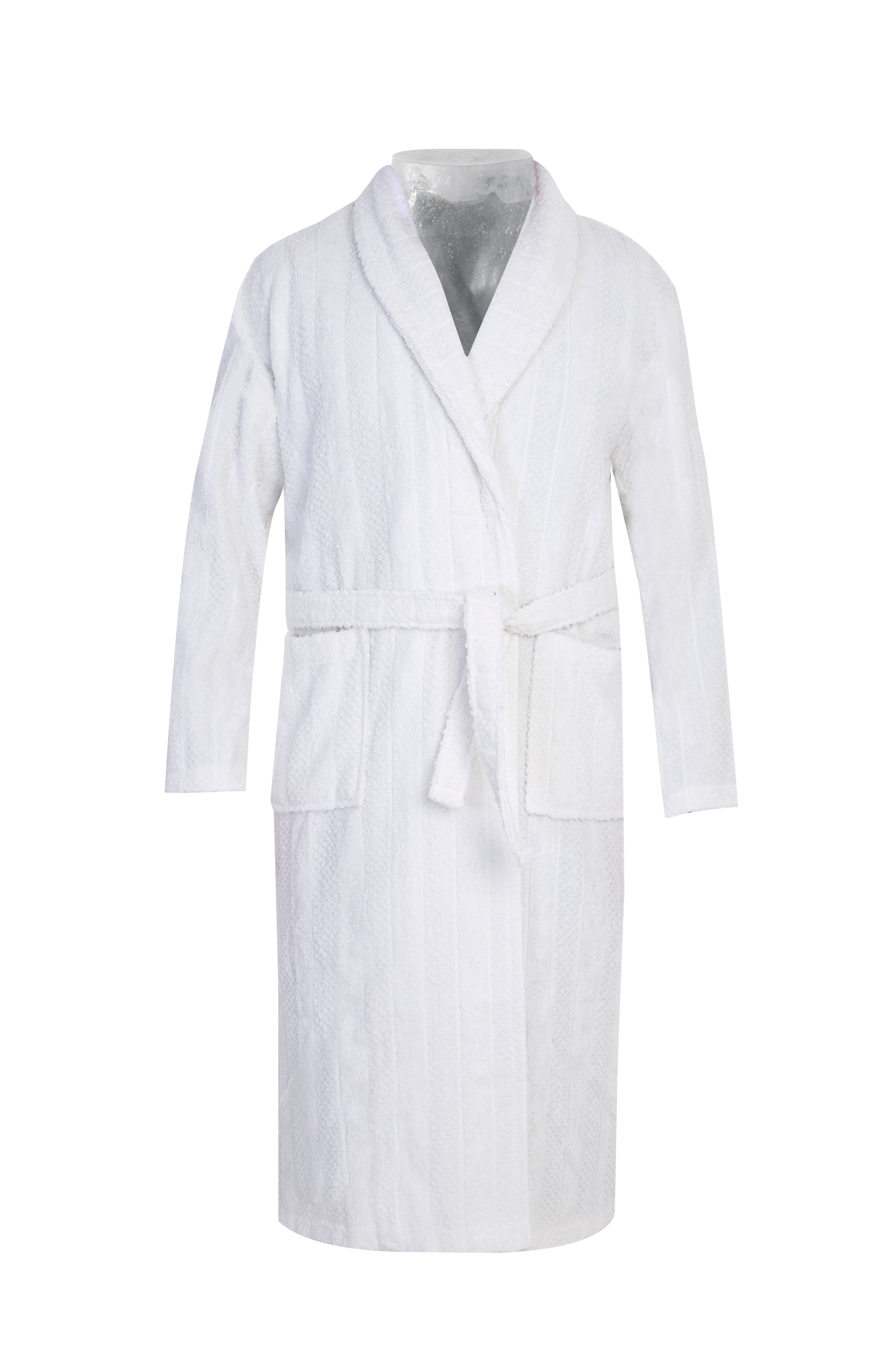 Beyaz Şal Yaka Jakarlı Pamuk Bornoz