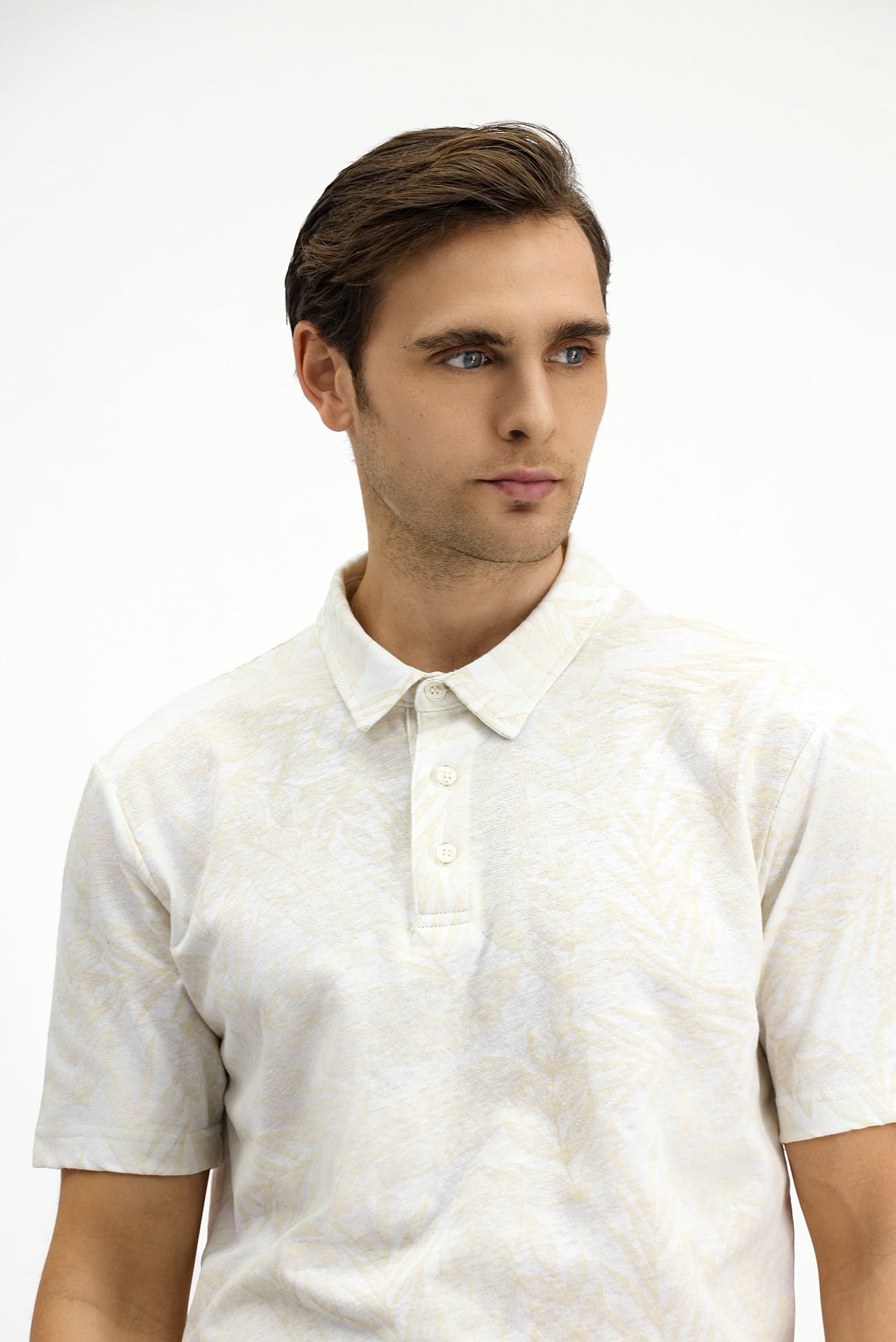 Beyaz Slim Fit Dar Kesim Baskılı Pamuk Polo Yaka Tişört