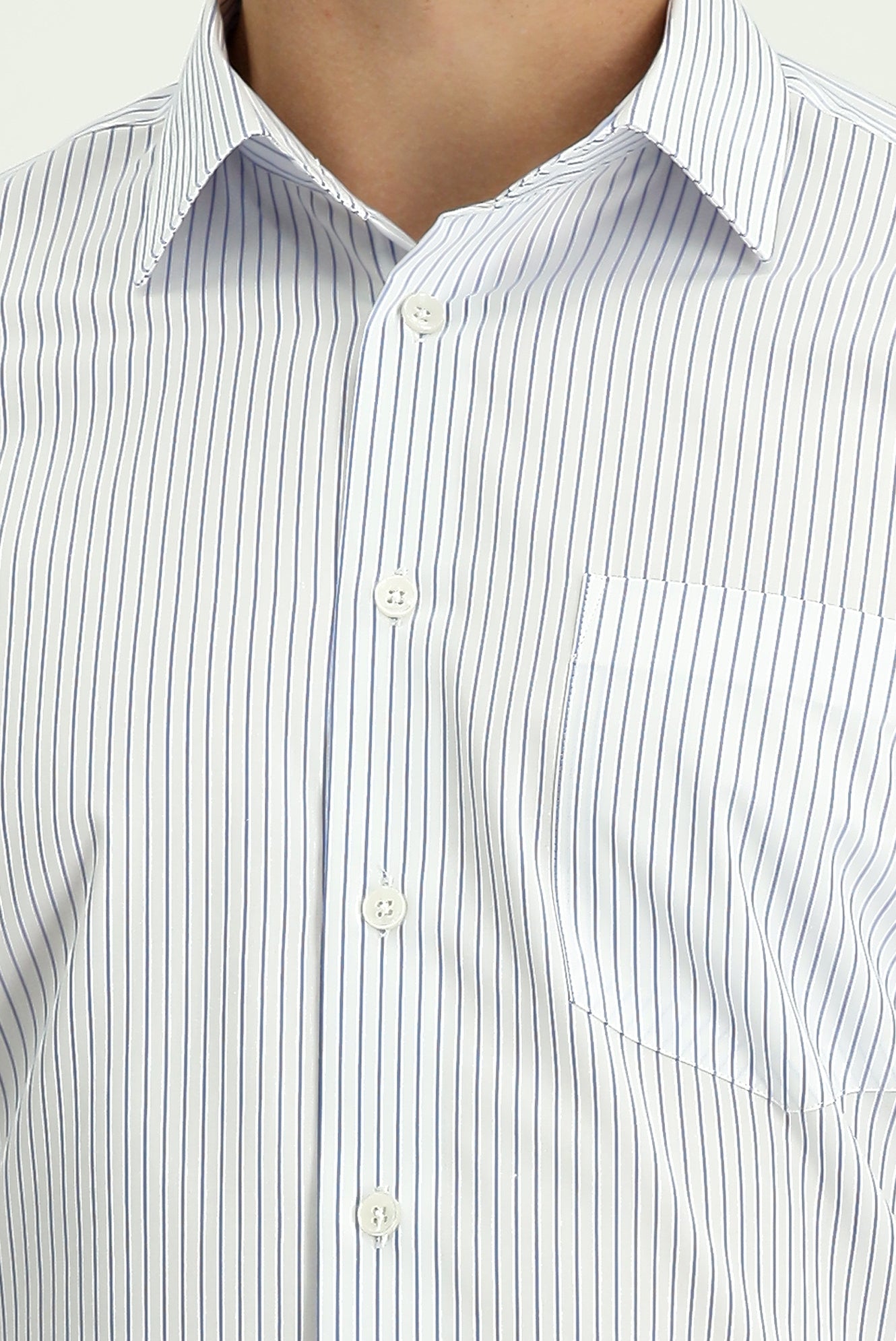 Beyaz Uzun Kol Klasik Çizgili Pamuklu Kolay Ütülenebilir Gömlek
