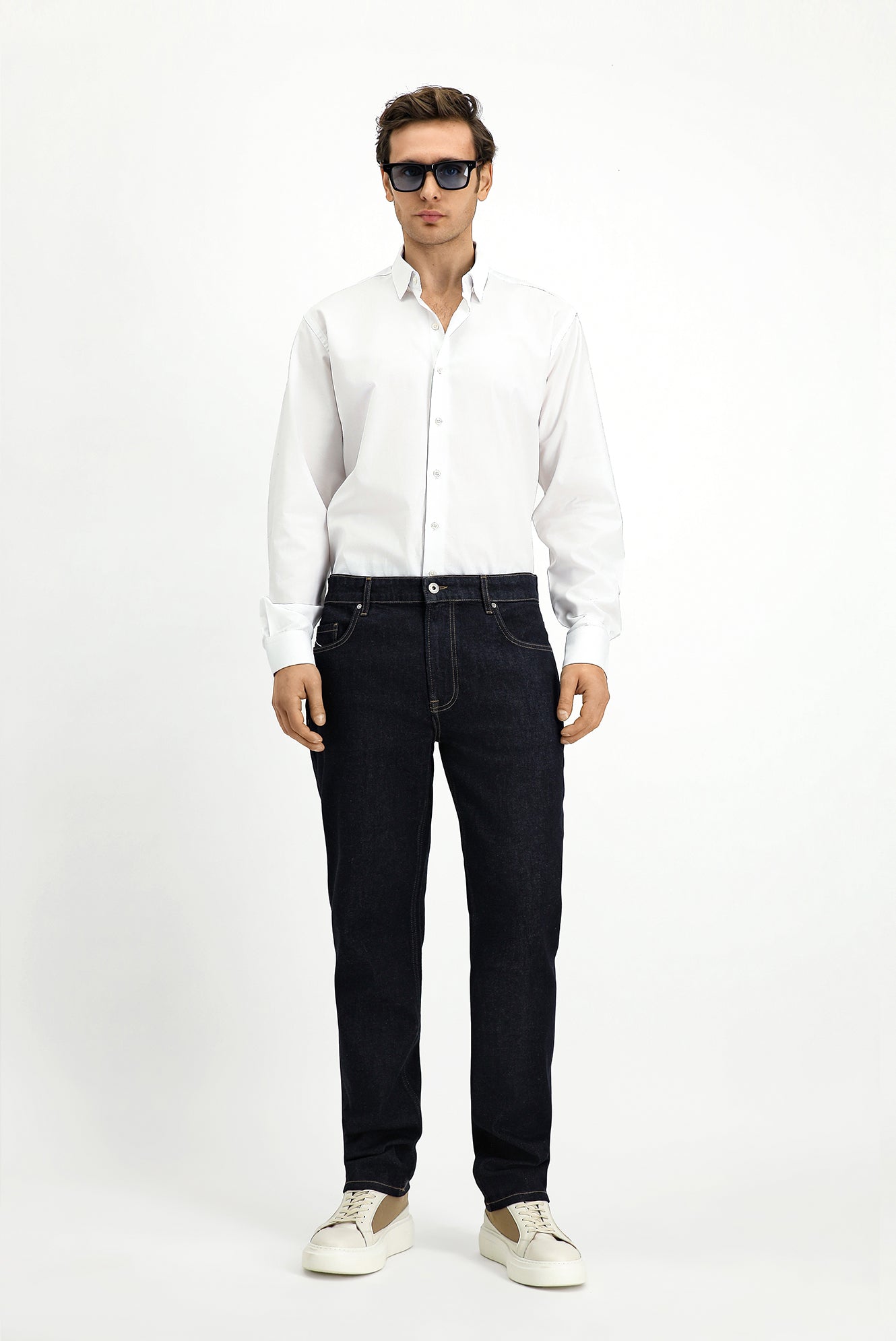 Beyaz Uzun Kol Klasik Desenli Pamuk Gömlek