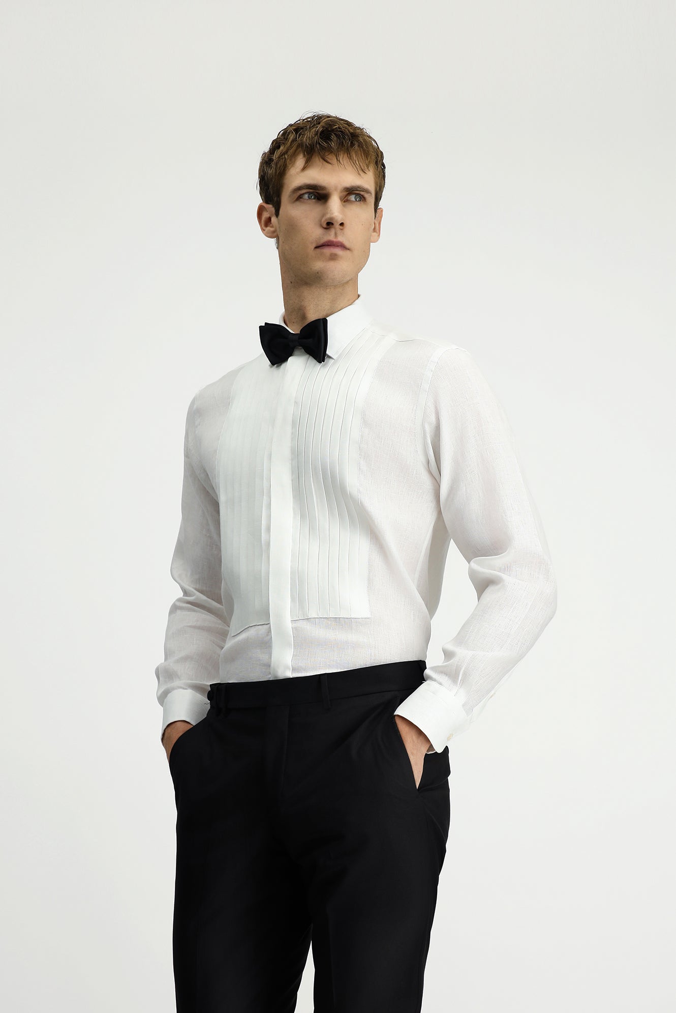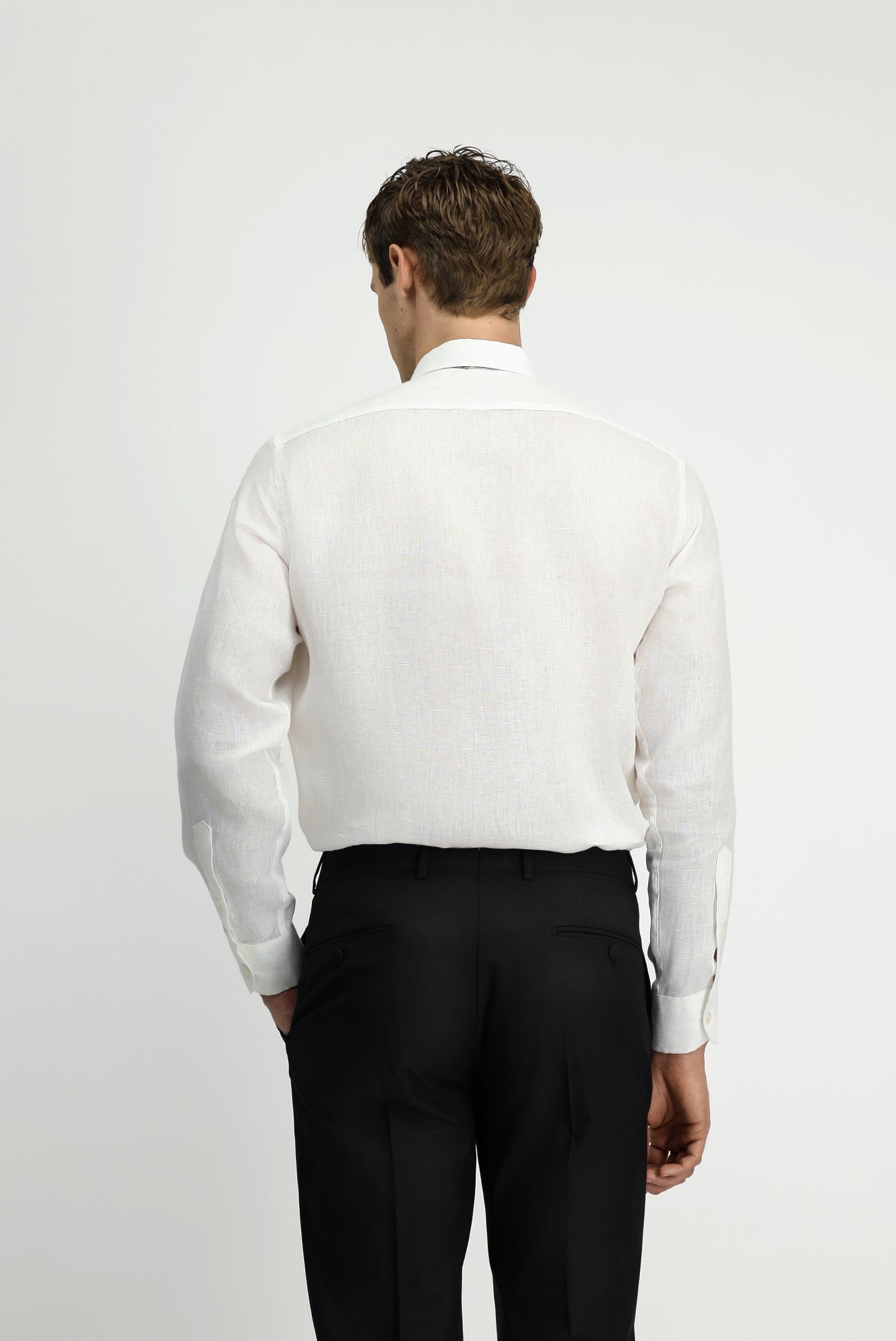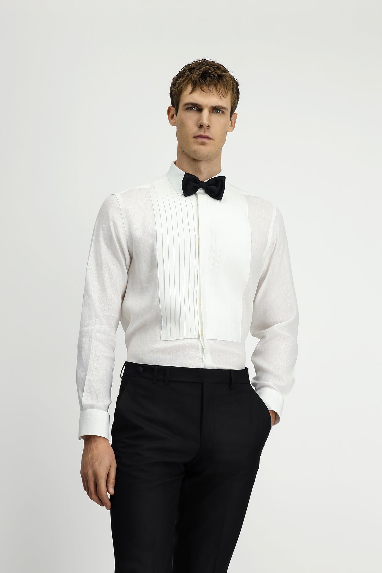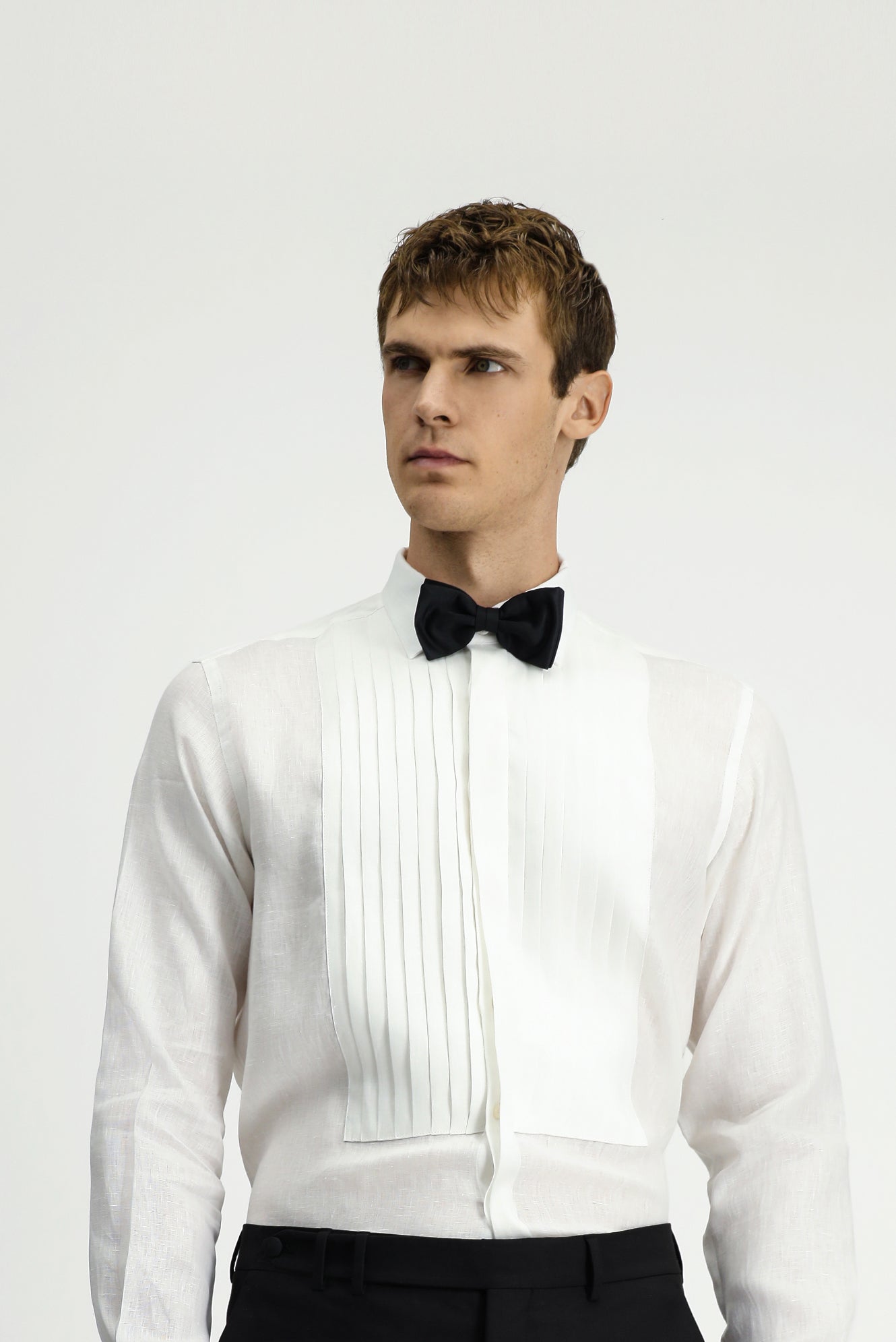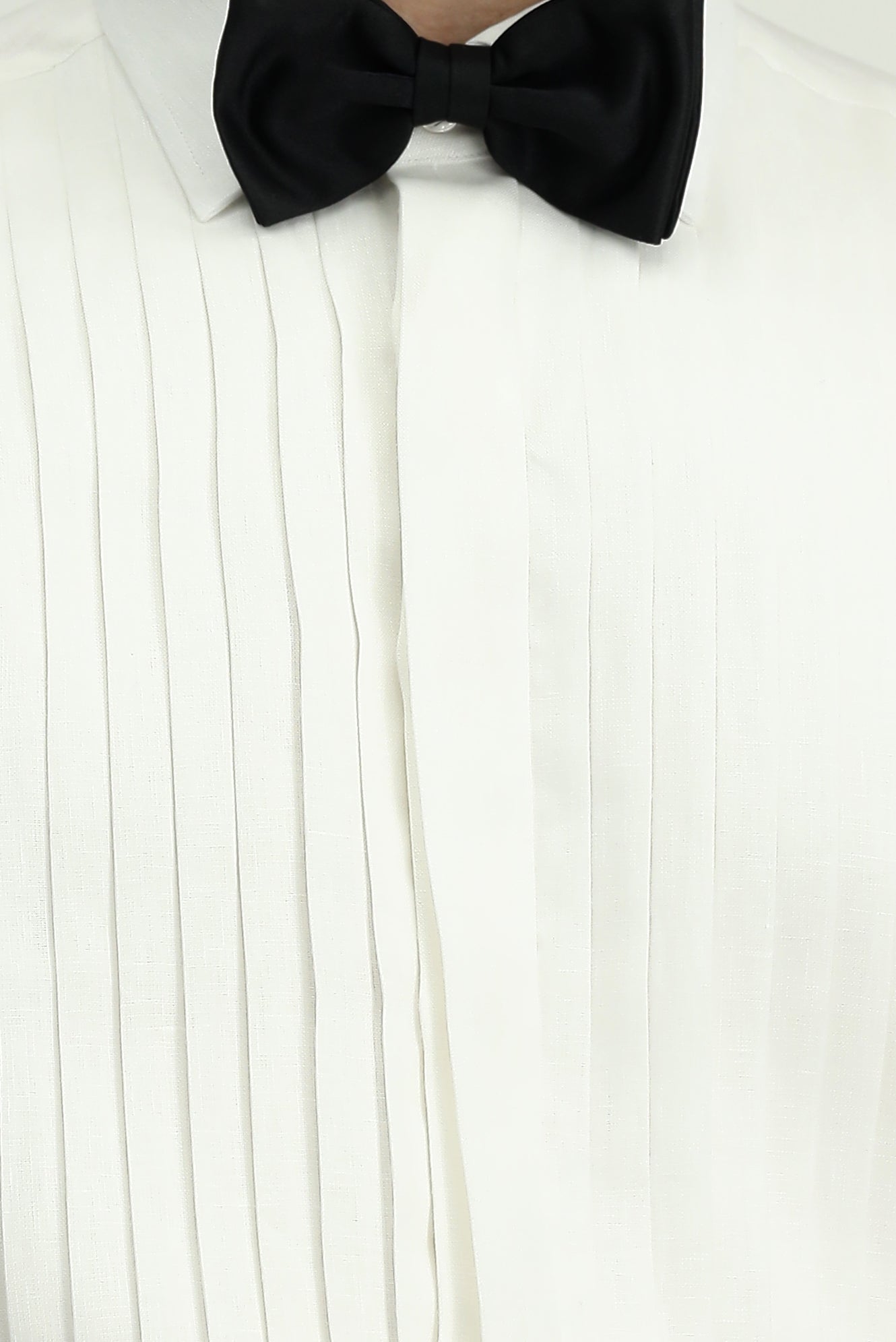 Beyaz Uzun Kol Klasik Piliseli Keten Gömlek
