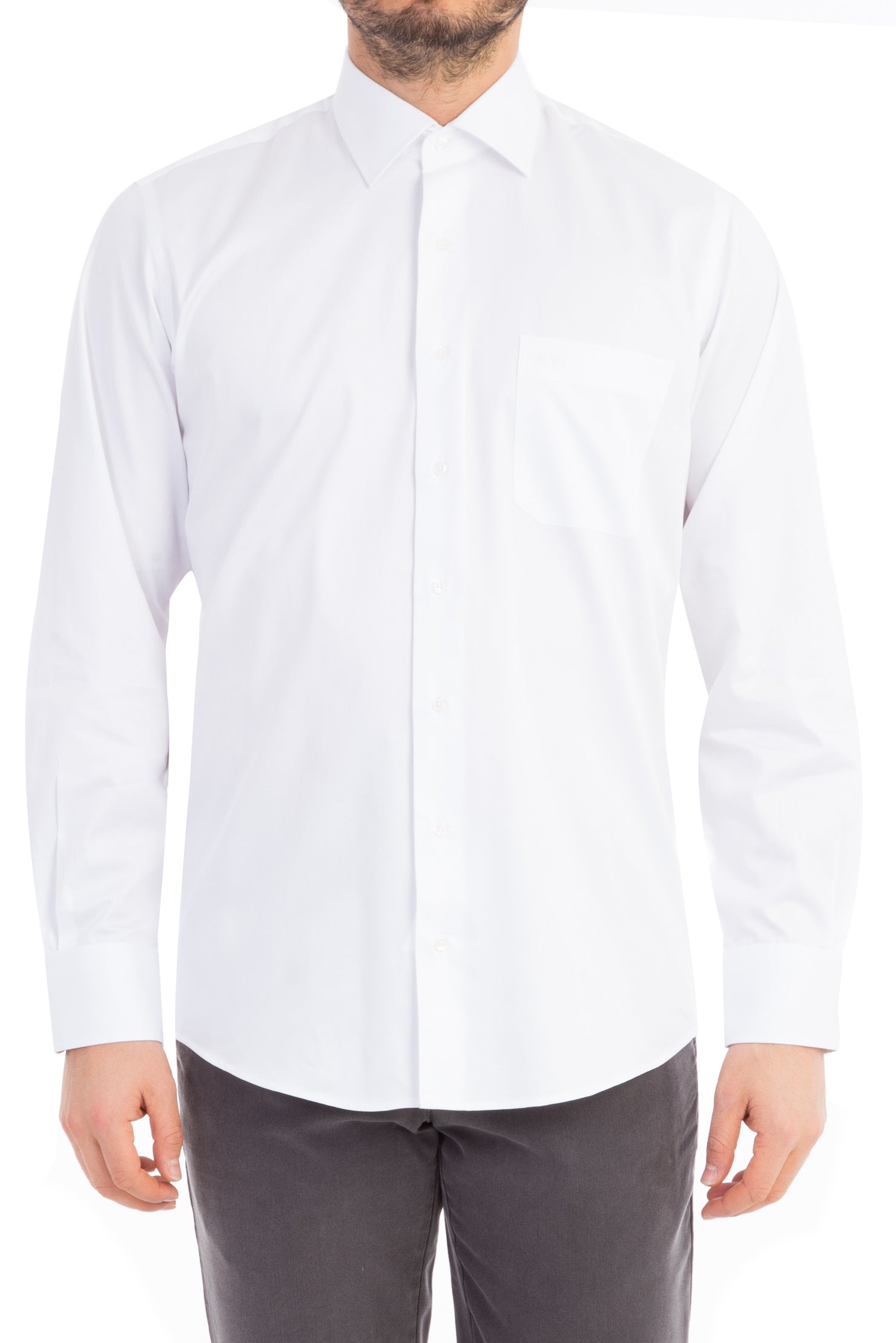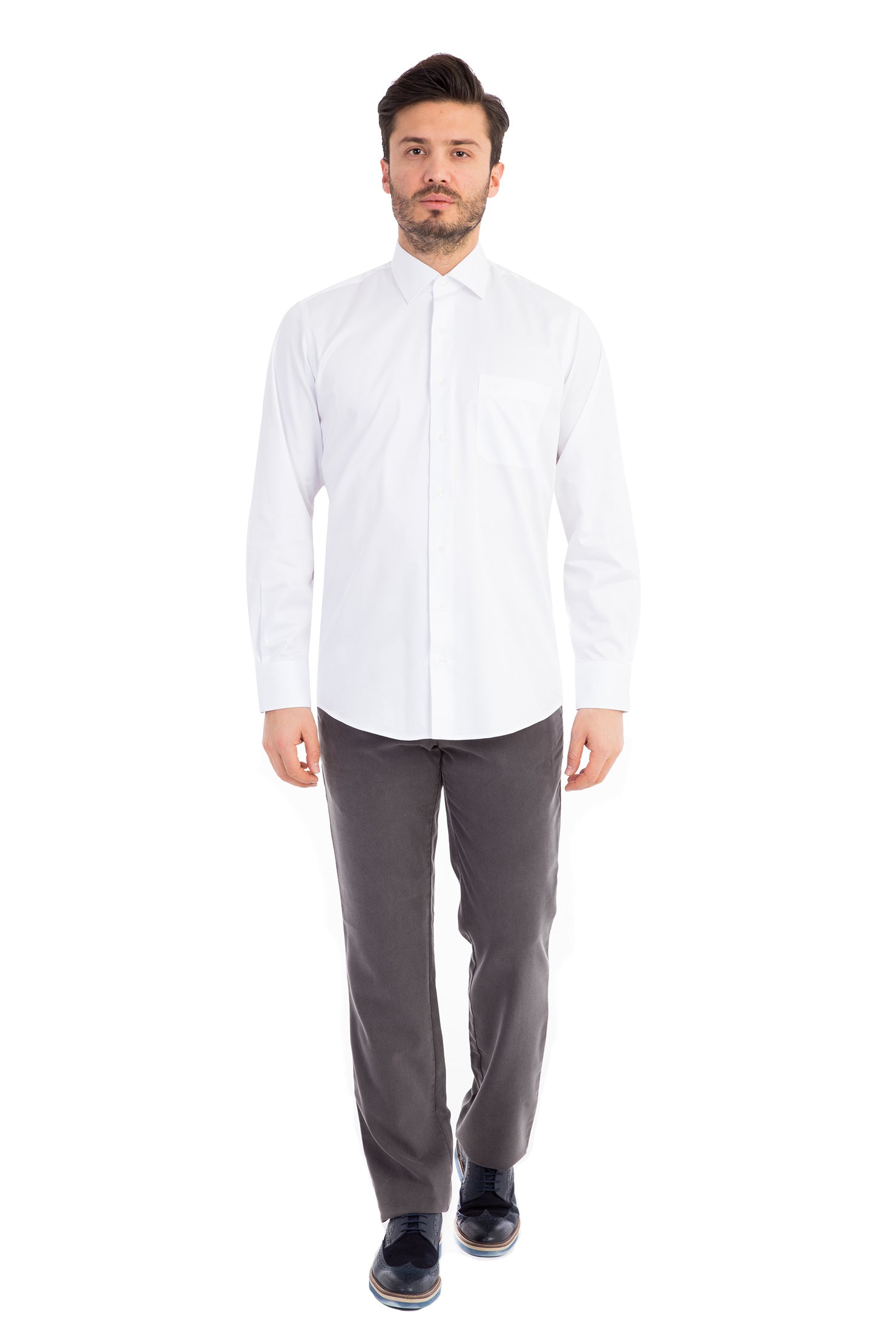 Beyaz Uzun Kol Klasik Saten Pamuk Gömlek