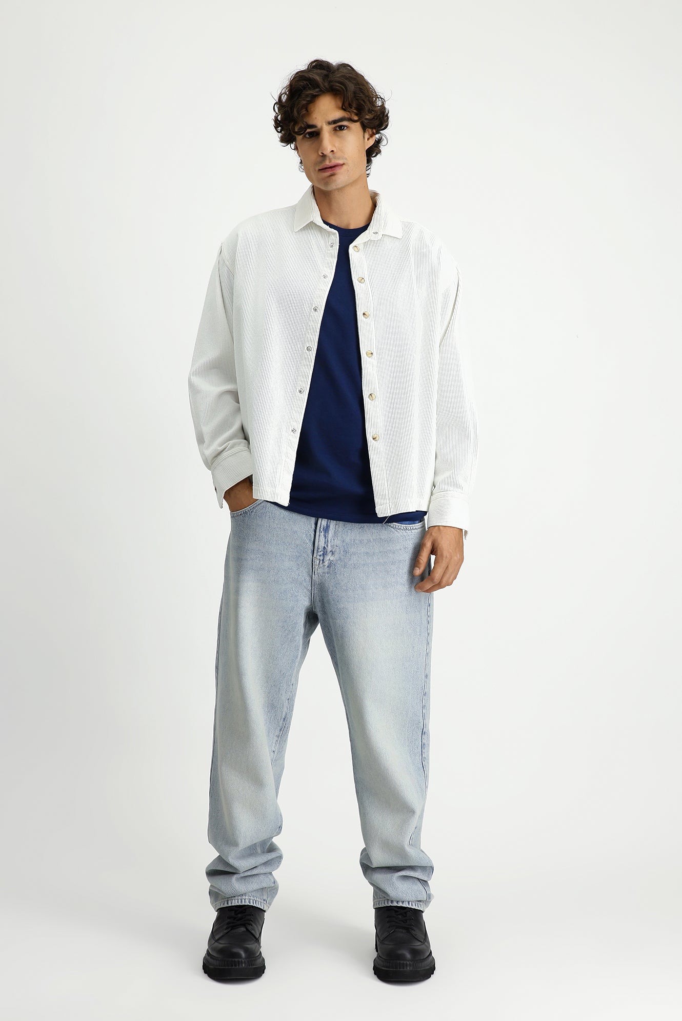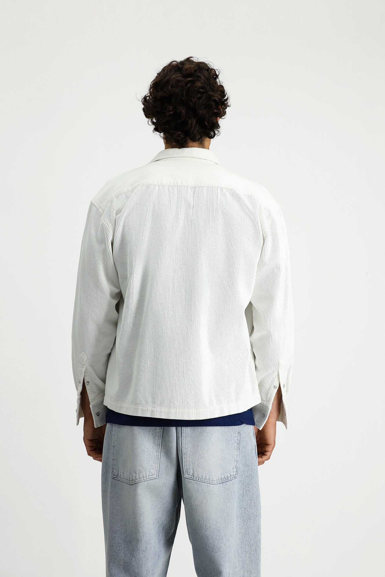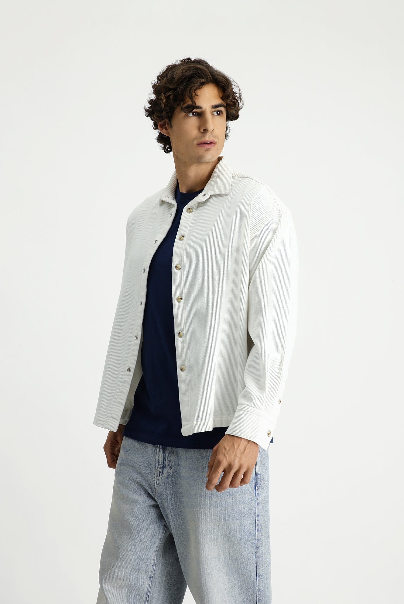 Beyaz Uzun Kol Oversize Ekstra Rahat Kesim Pamuk Spor Kadife Gömlek