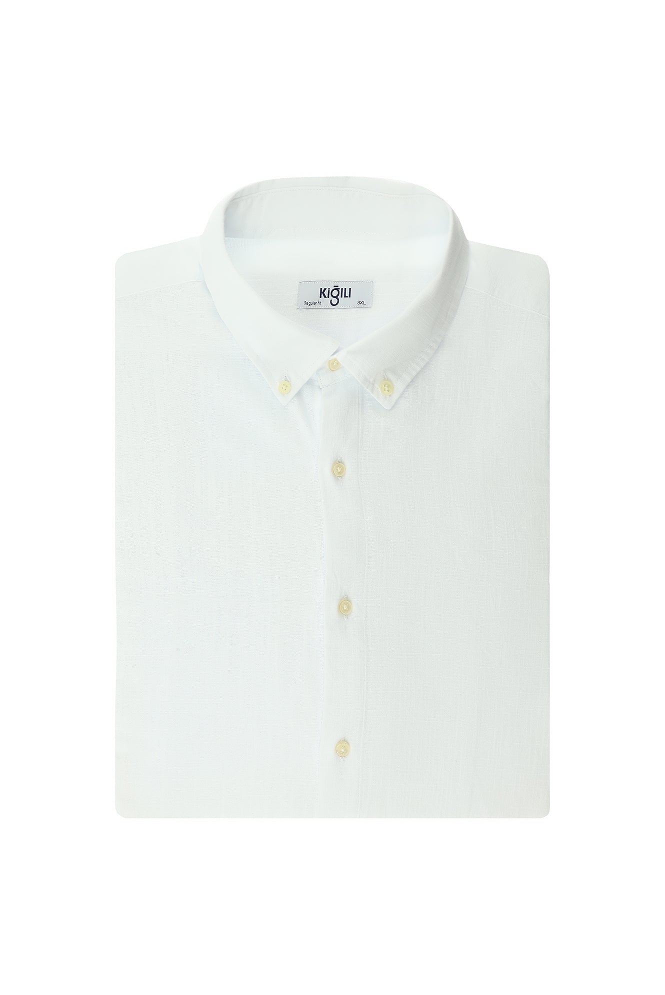 Beyaz Büyük Beden Uzun Kol Desenli Pamuk Düğmeli Yaka Gömlek