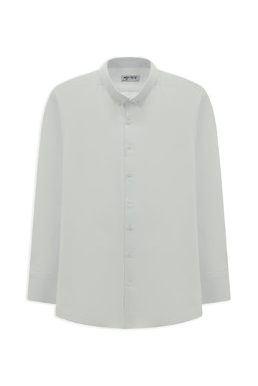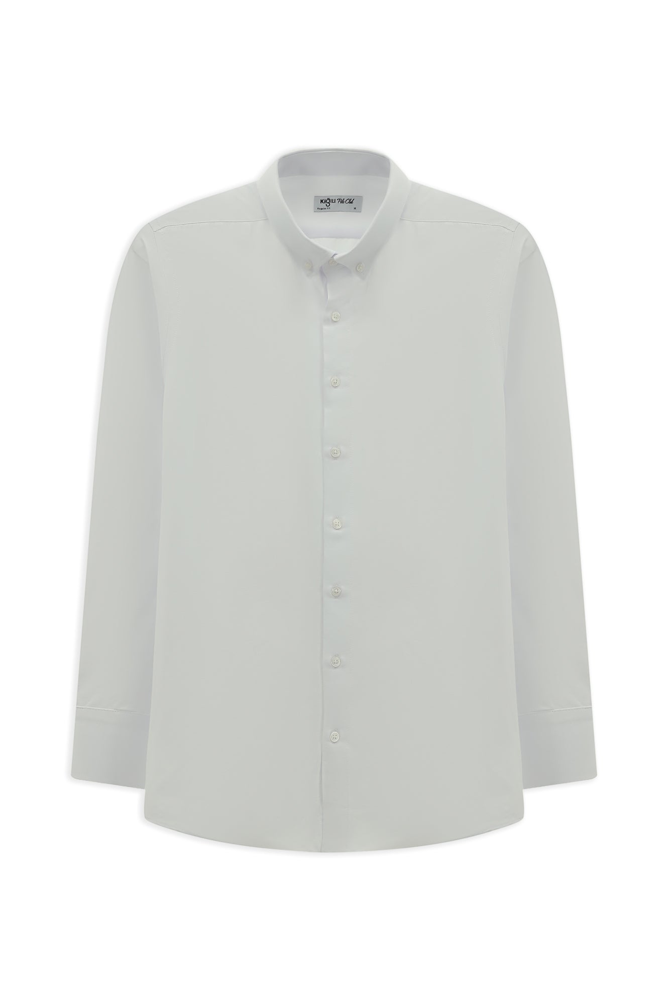 Beyaz Uzun Kol Regular Fit Düğmeli Yaka Pamuklu Kolay Ütülenebilir Gömlek