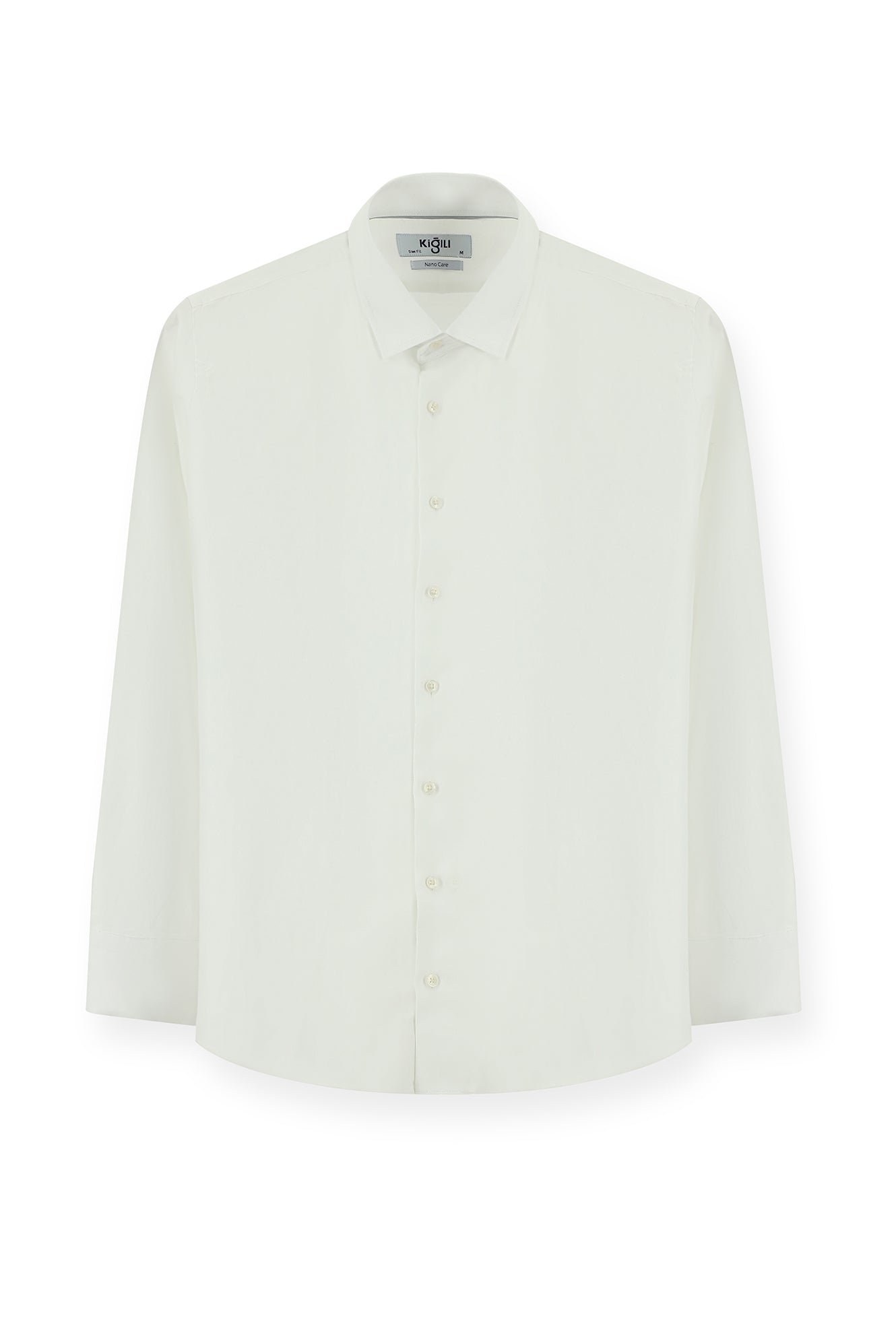 Beyaz Uzun Kol Slim Fit Dar Kesim Desenli Pamuk Klasik Gömlek