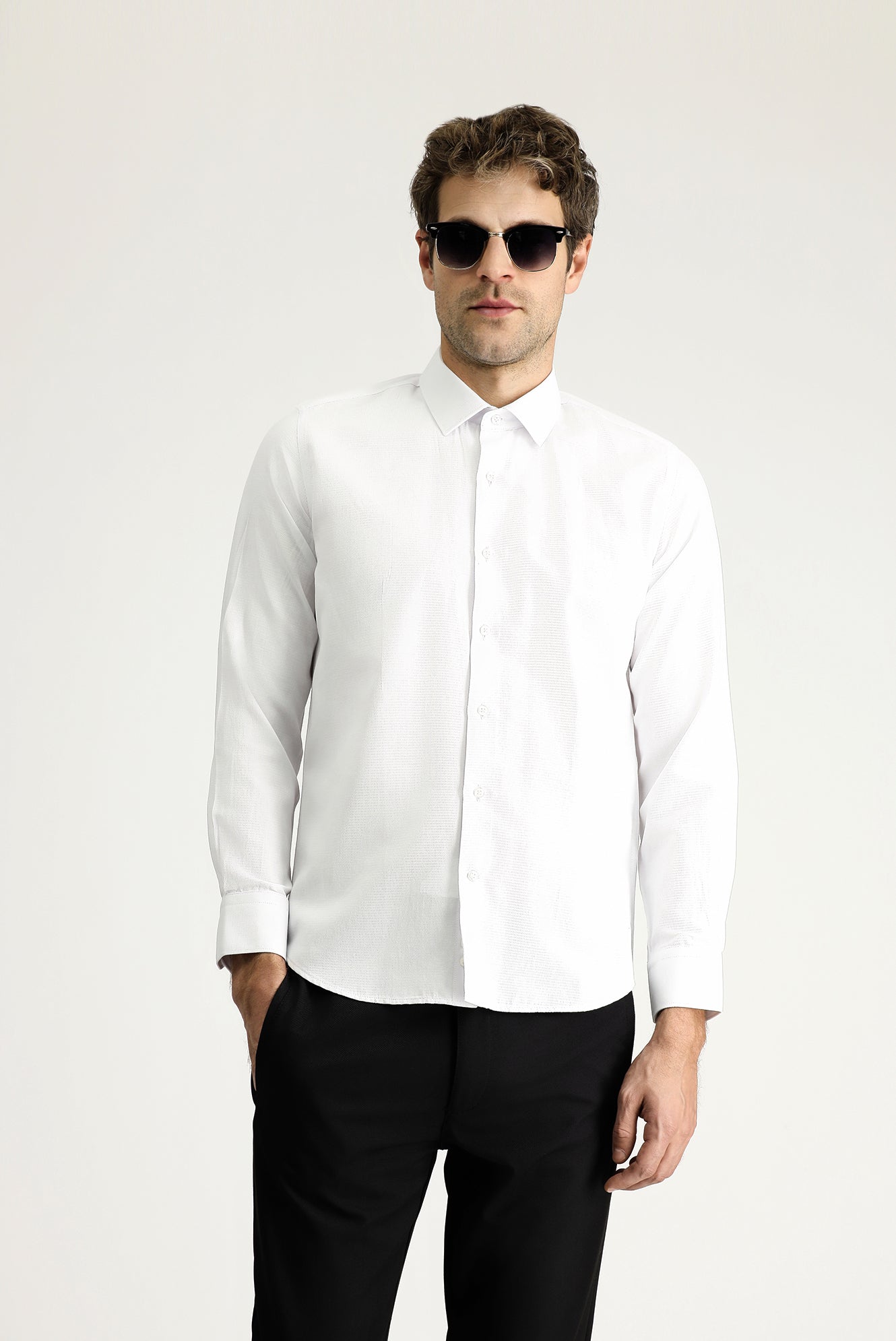 Beyaz Uzun Kol Slim Fit Dar Kesim Klasik Desenli Pamuklu Kolay Ütülenebilir Gömlek