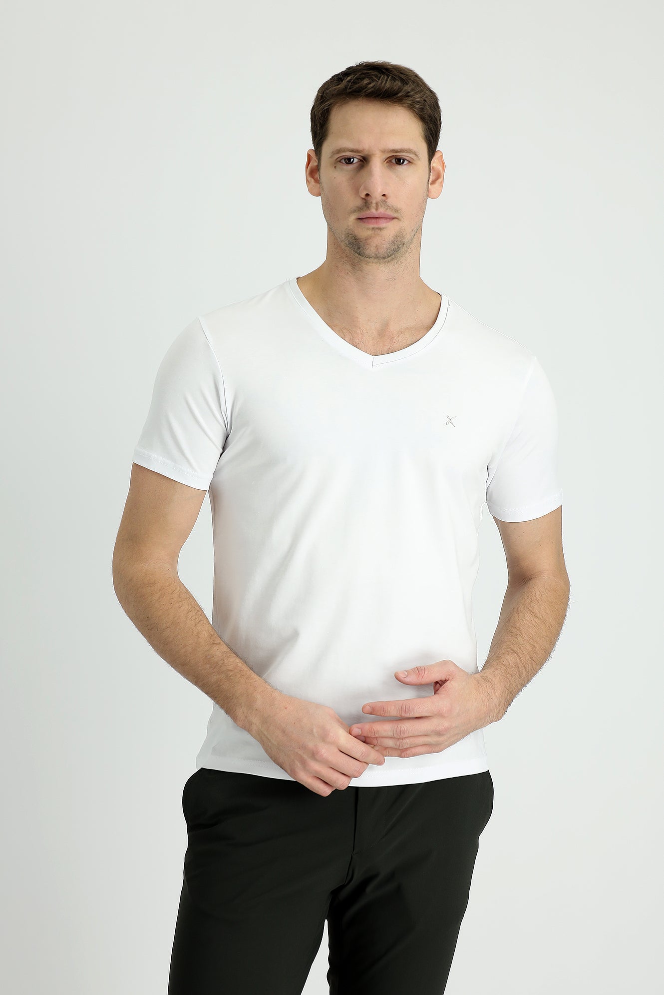 Beyaz V Yaka Slim Fit Dar Kesim Tişört