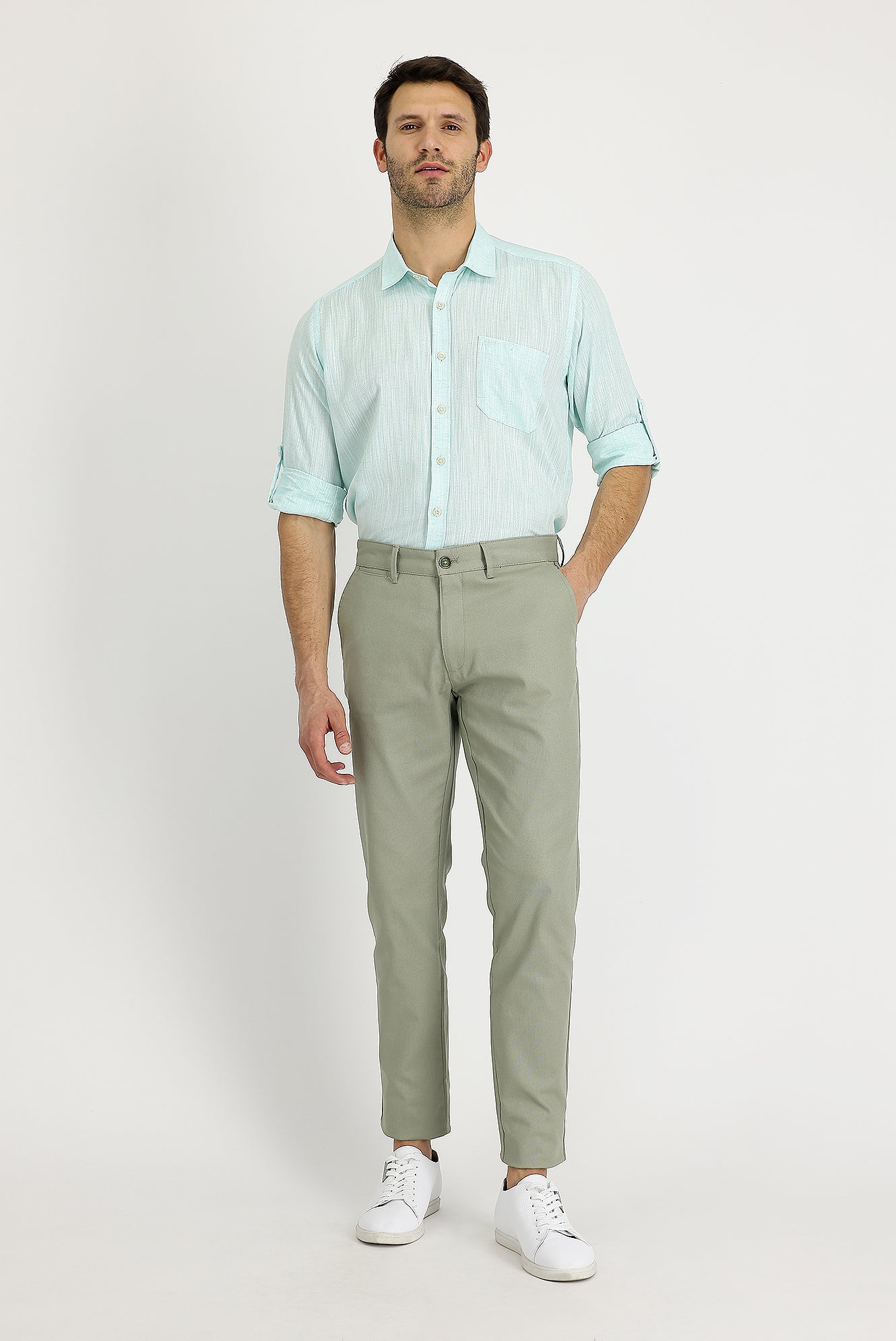 Çağla Yeşili 7 Drop Slim Fit Dar Kesim Likralı Kanvas / Chino Pantolon