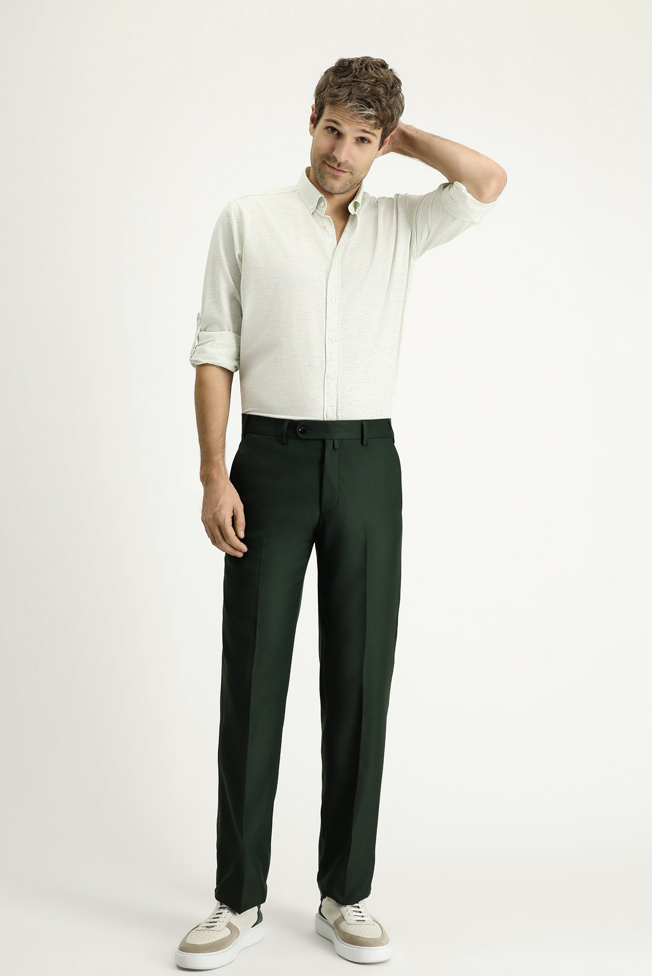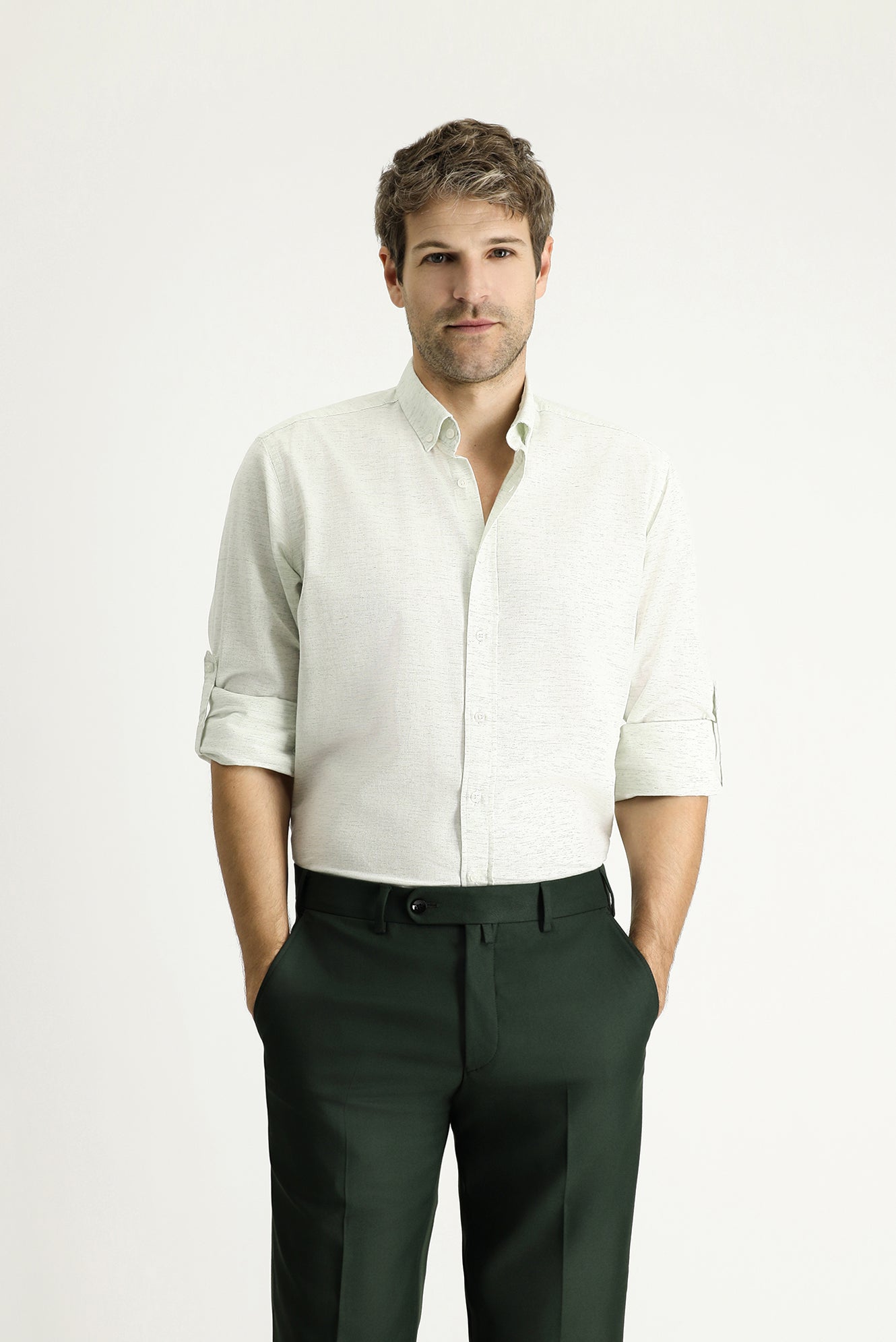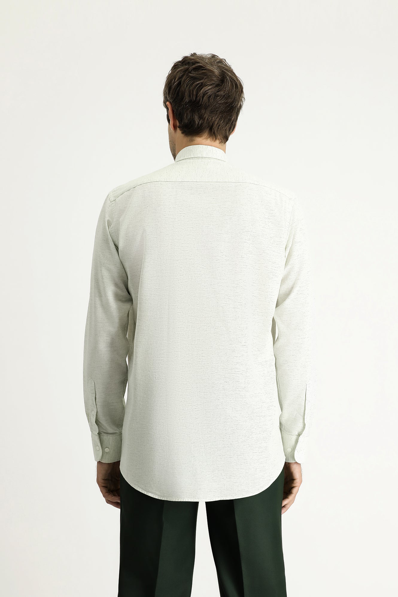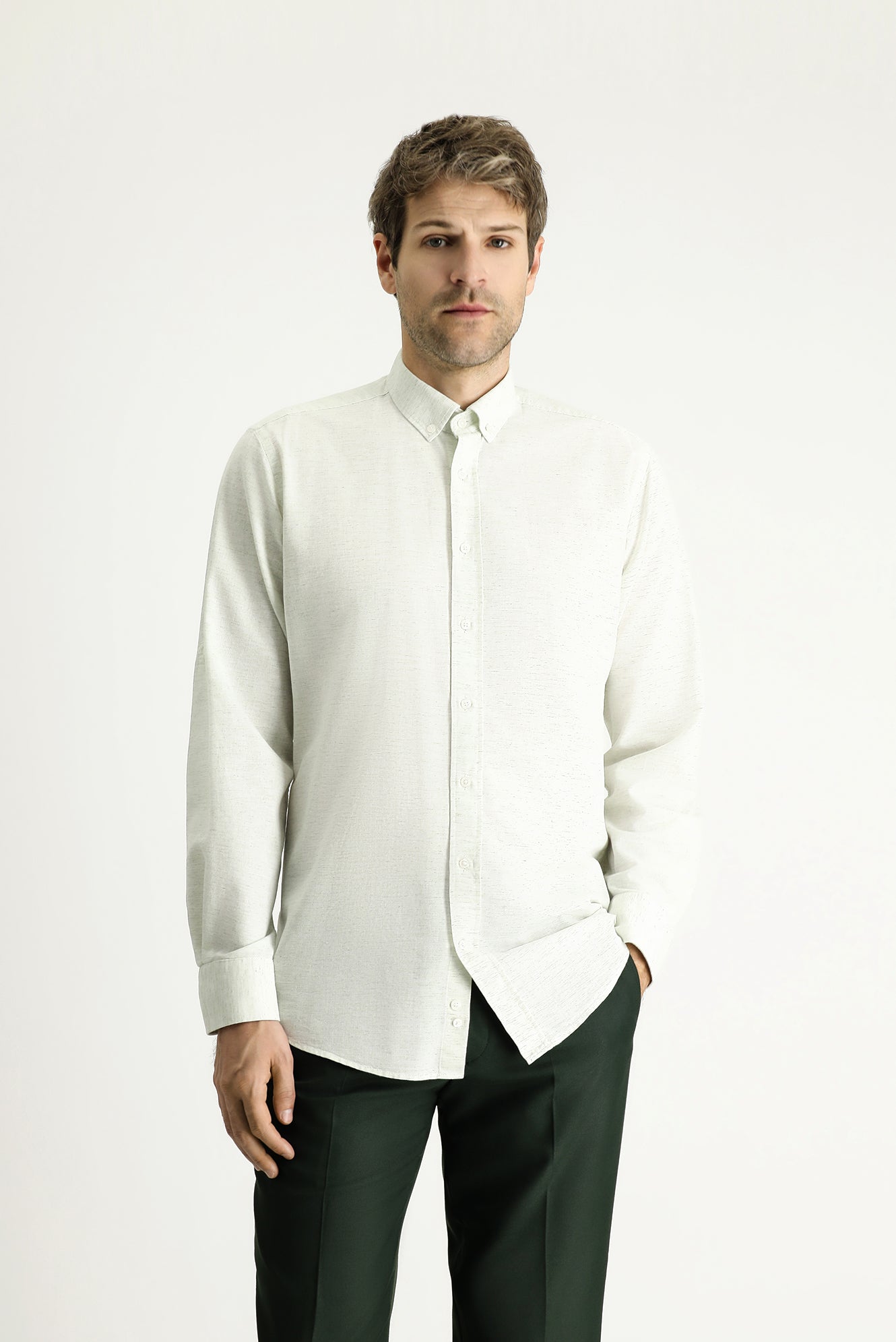 Çağla Yeşili Uzun Kol Regular Fit Desenli Spor Pamuklu Düğmeli Yaka Gömlek