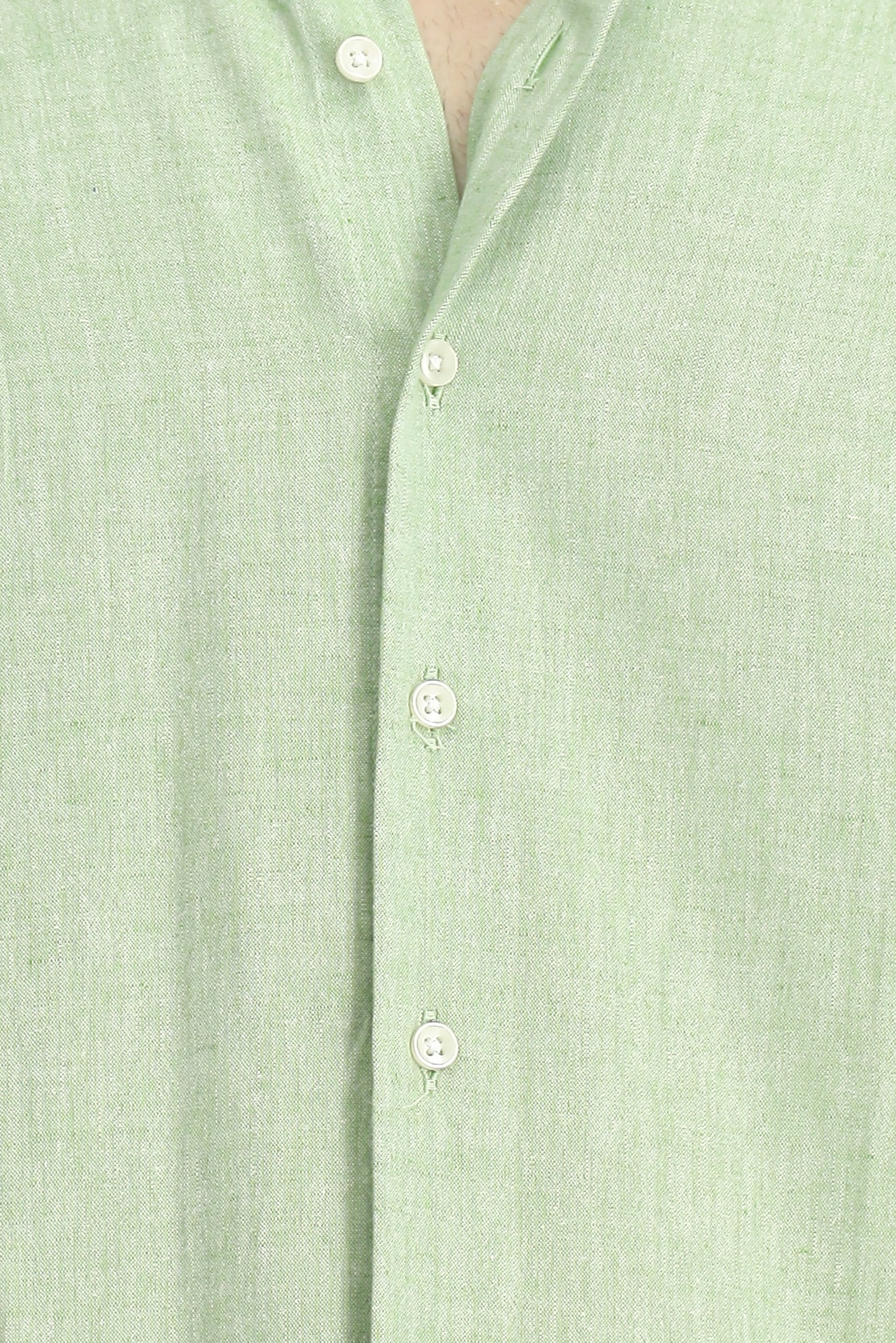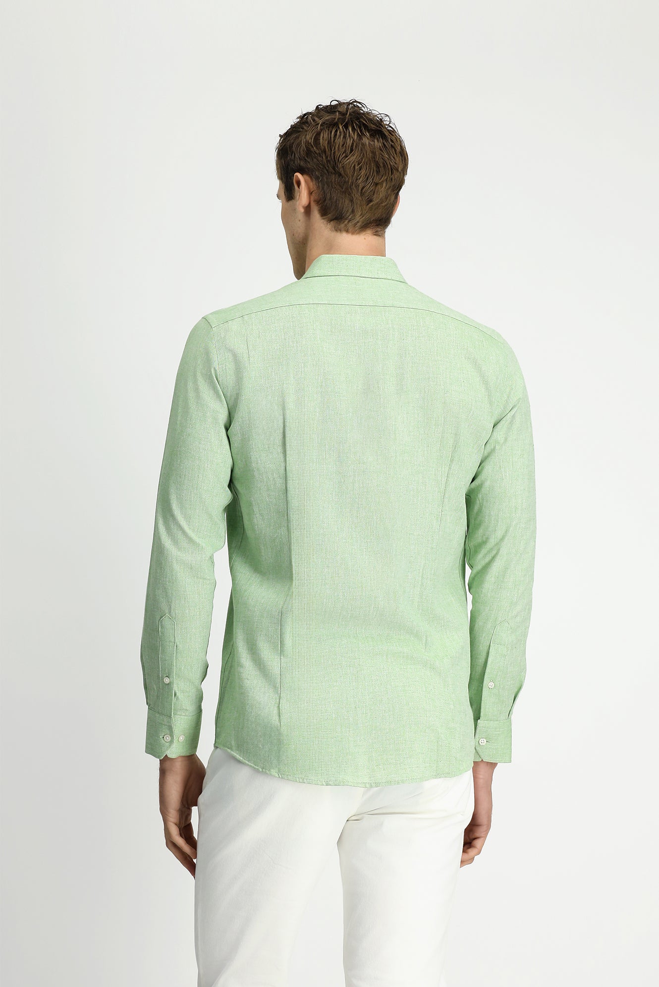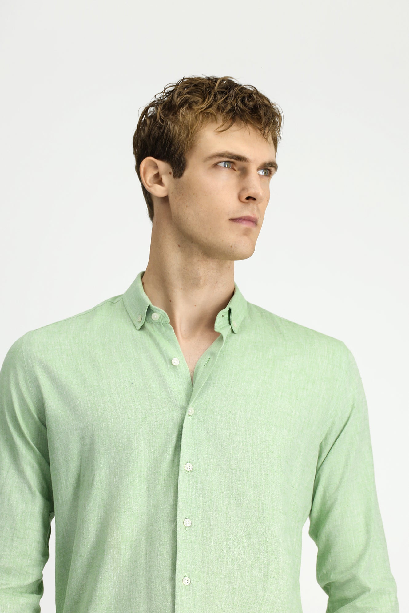 Çimen Yeşili Uzun Kol Slim Fit Dar Kesim Pamuklu Keten Düğmeli Yaka Gömlek