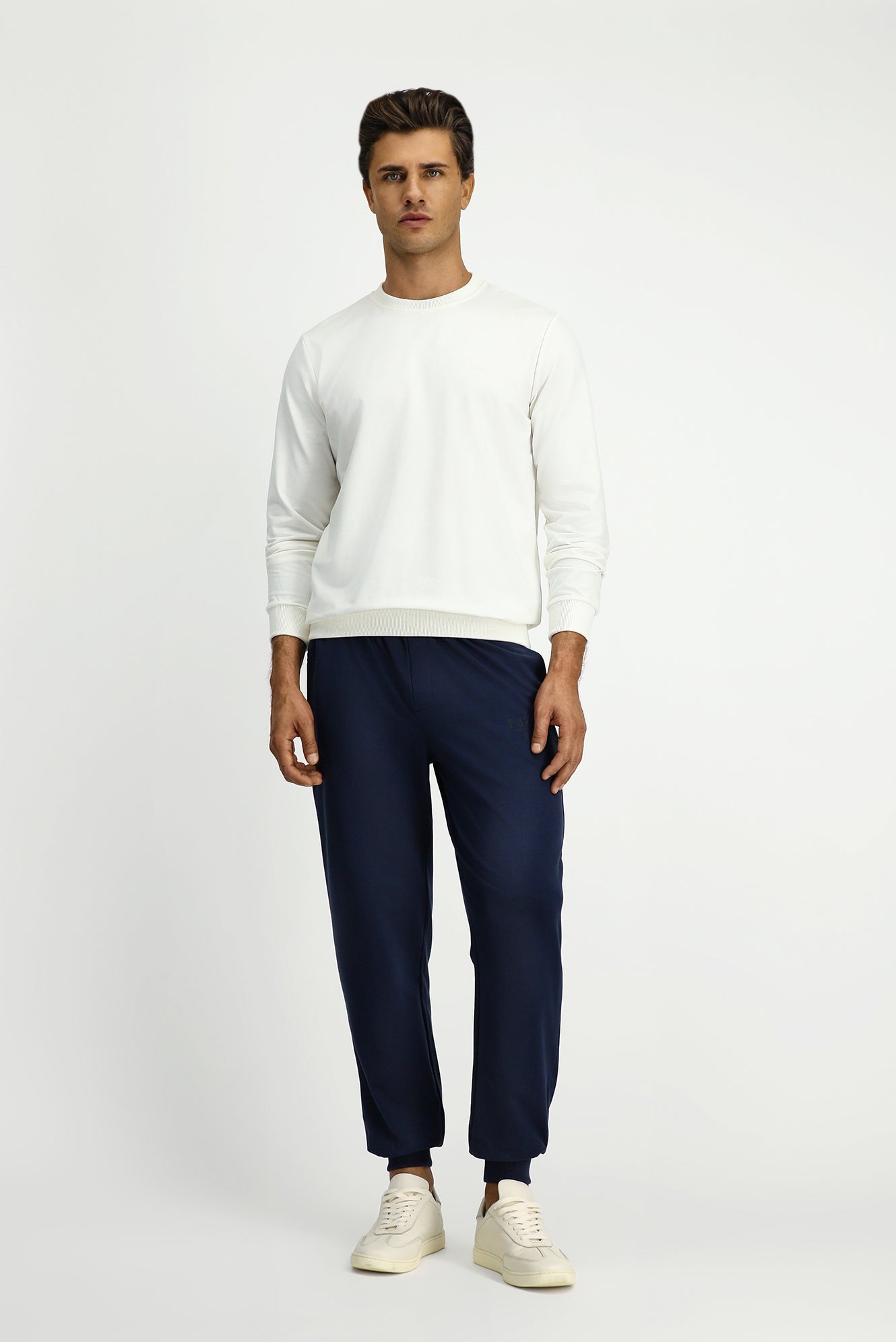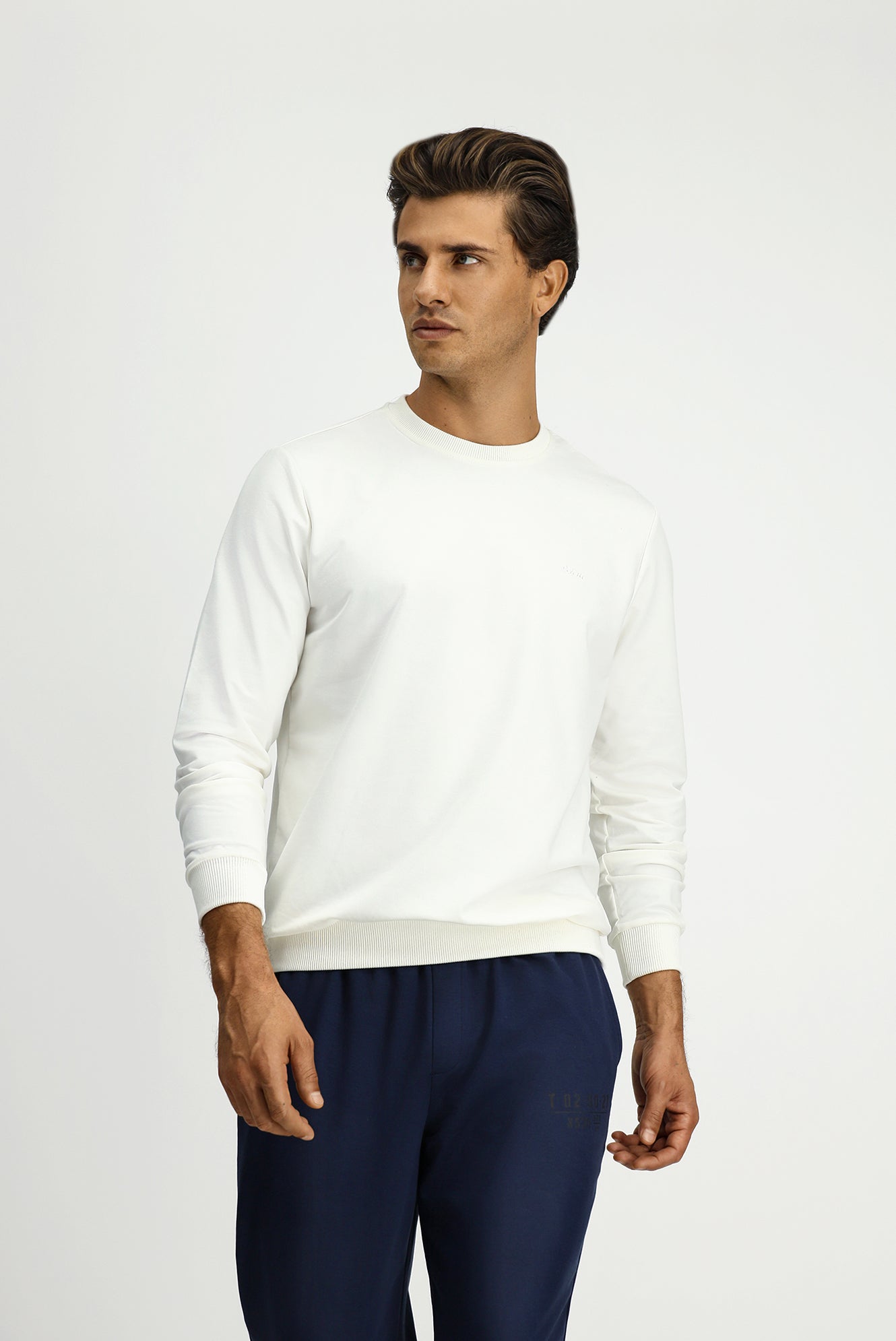 Ekru Bisiklet Yaka Regular Fit Nakışlı Pamuklu Sweatshirt