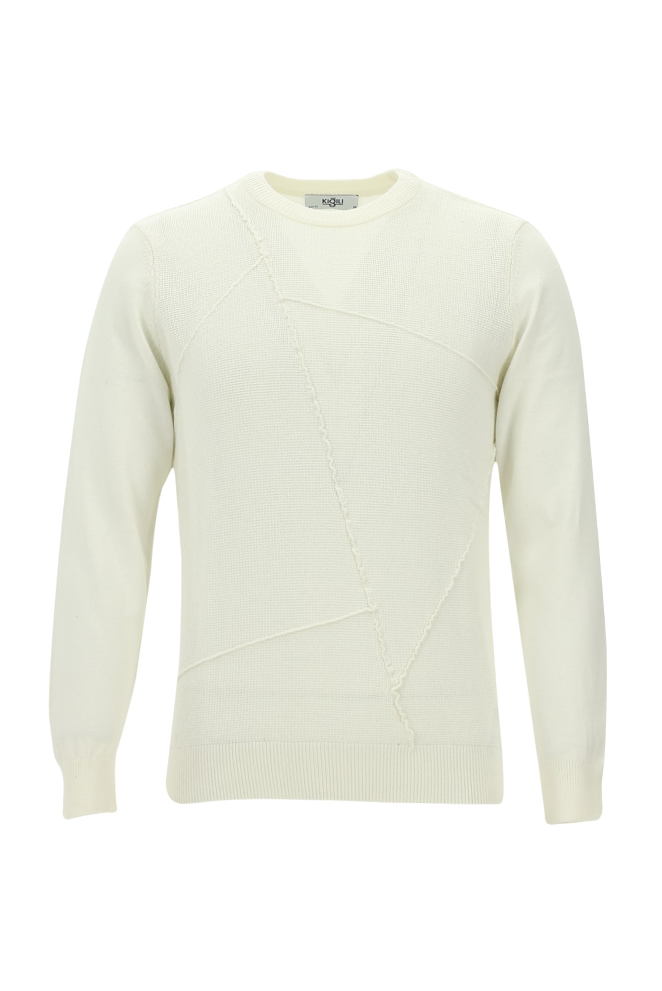 Ekru Bisiklet Yaka Desenli Triko Kazak